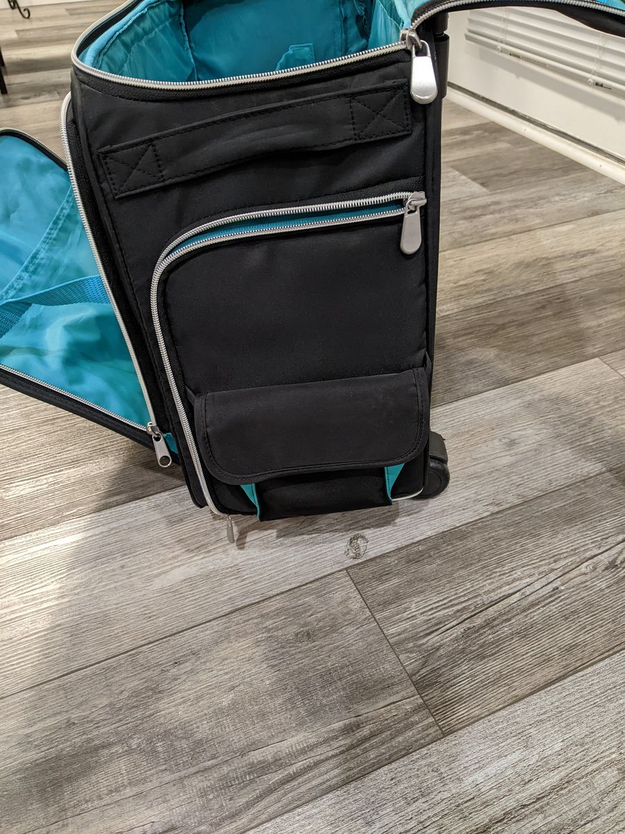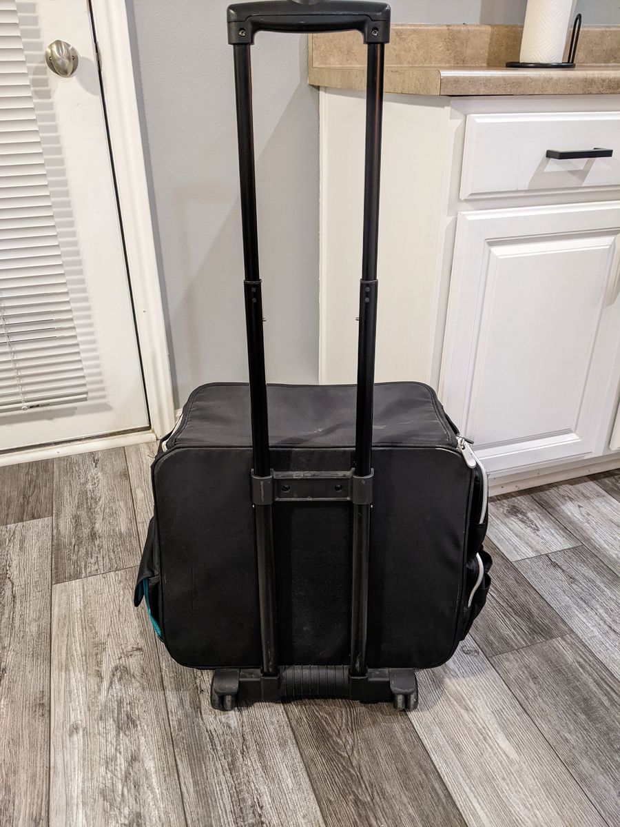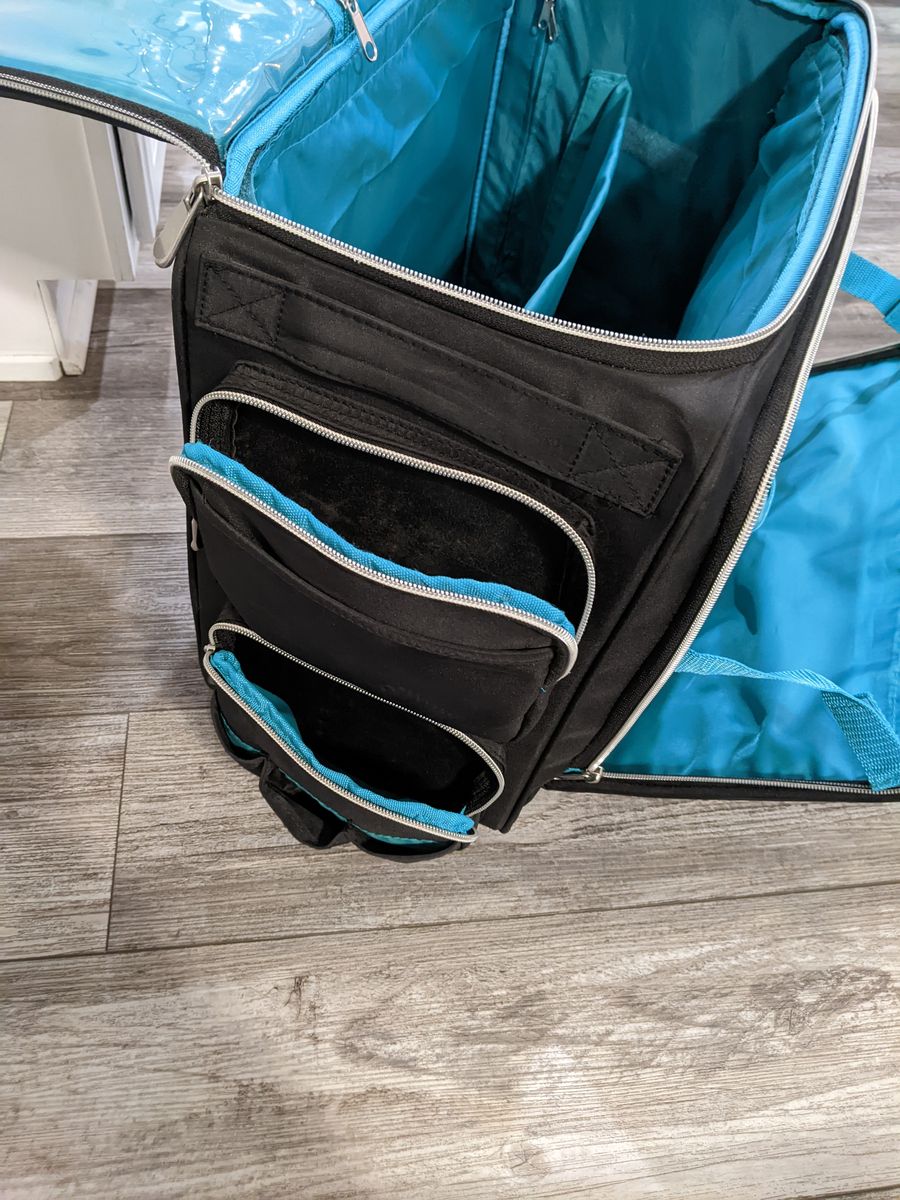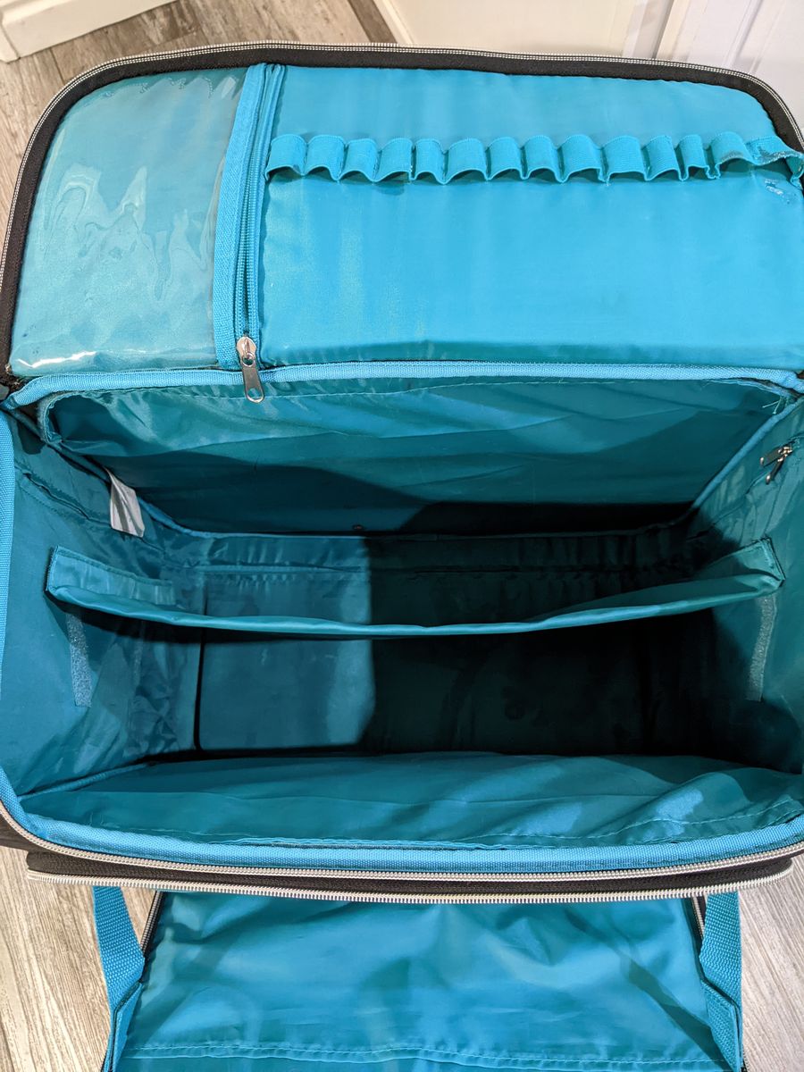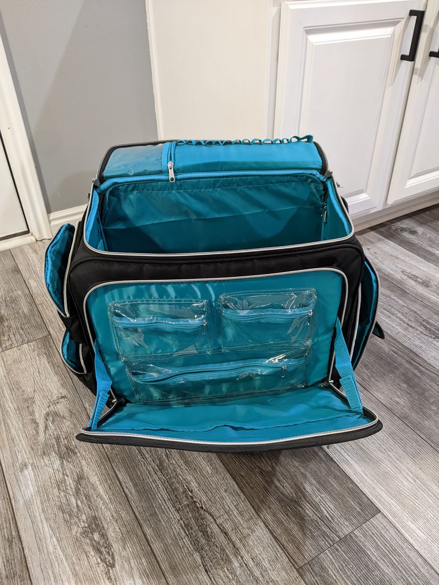 A multi-use travel bag that can be used for various things. My fiance used it when she was going to school to become a nail technician. The bag is in great condition, other than a few stains. I did clean the bag to remove all dust.