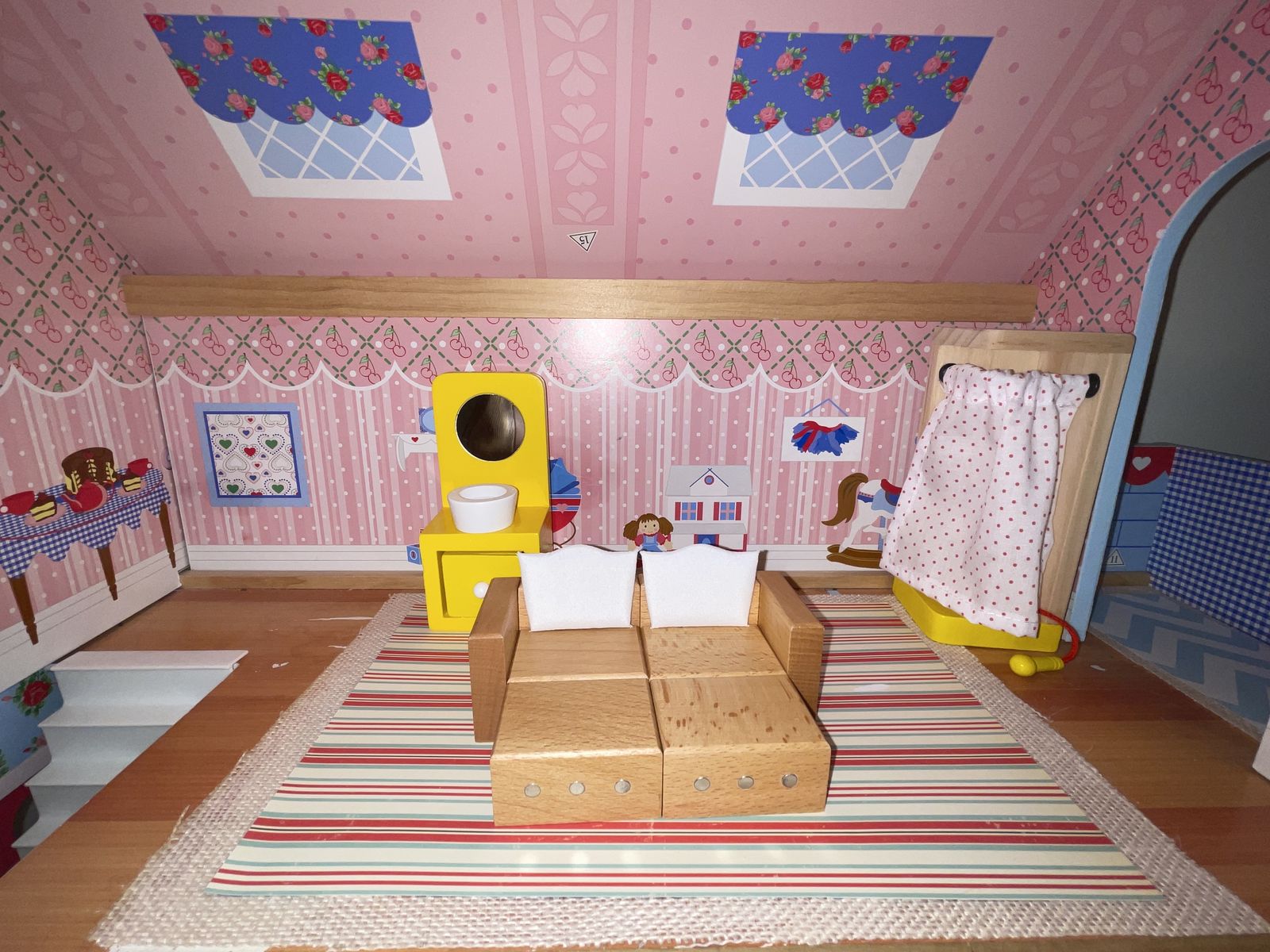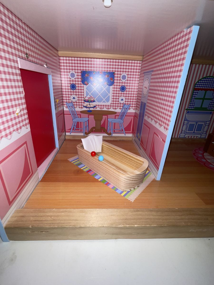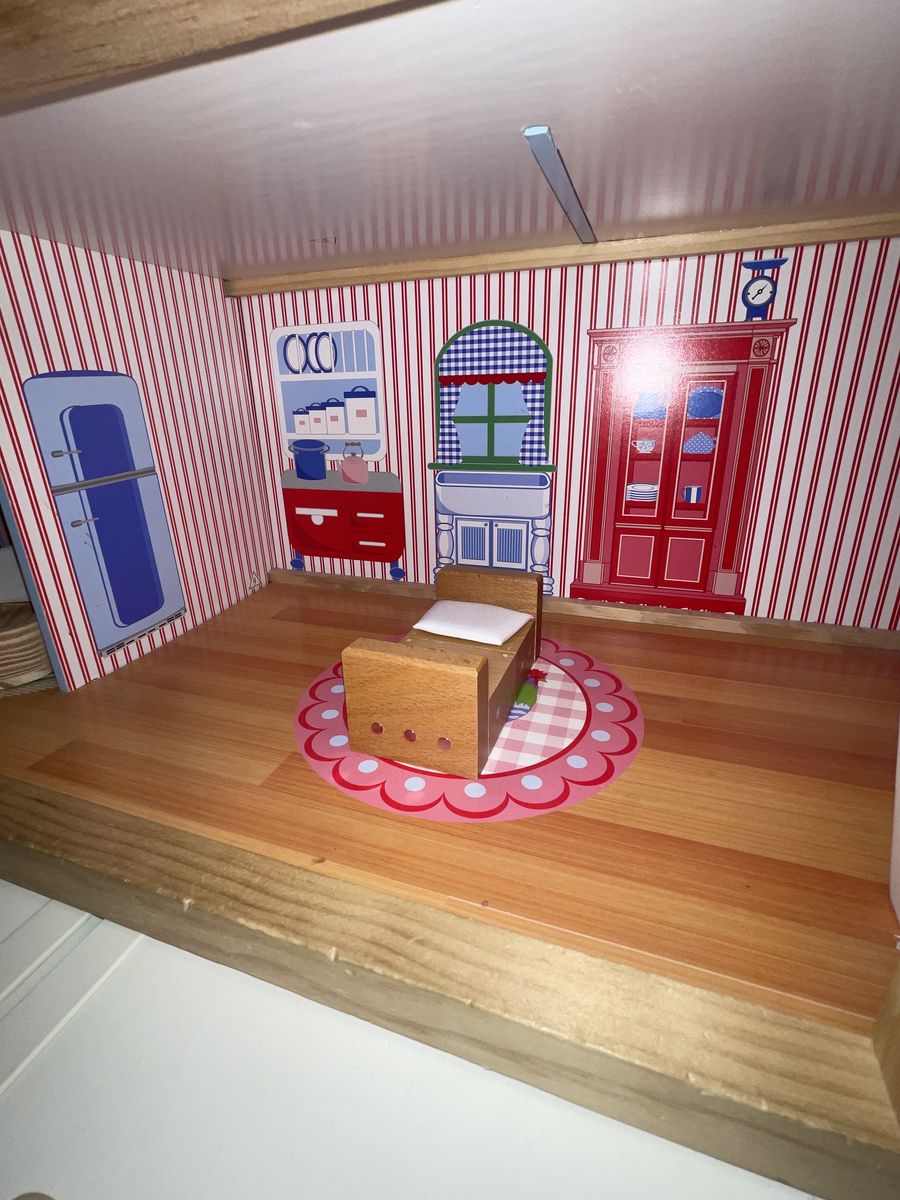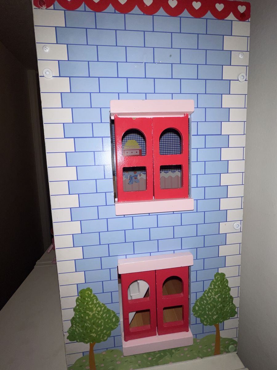 PayPalThis is a cute KidKraft dollhouse. It comes with some furniture and a family. The dollhouse has some wear and tear (there is a picture of part of the roof that needed to be covered.) But this is a cute set!