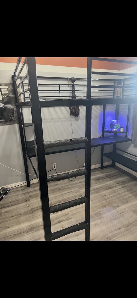 ApplePayblack full size bunk bed frame with desk and ladder. in great condition. my son loved it but grew out of it and no longer need it. asking 120 OBO