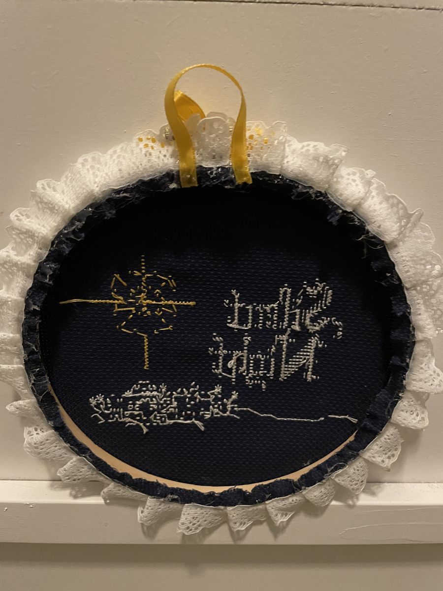 VenmoCrosstitch Christmas silent night star navy background city of Bethlehem below