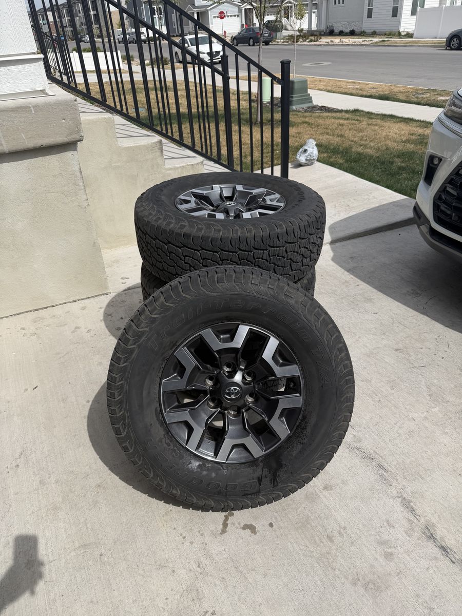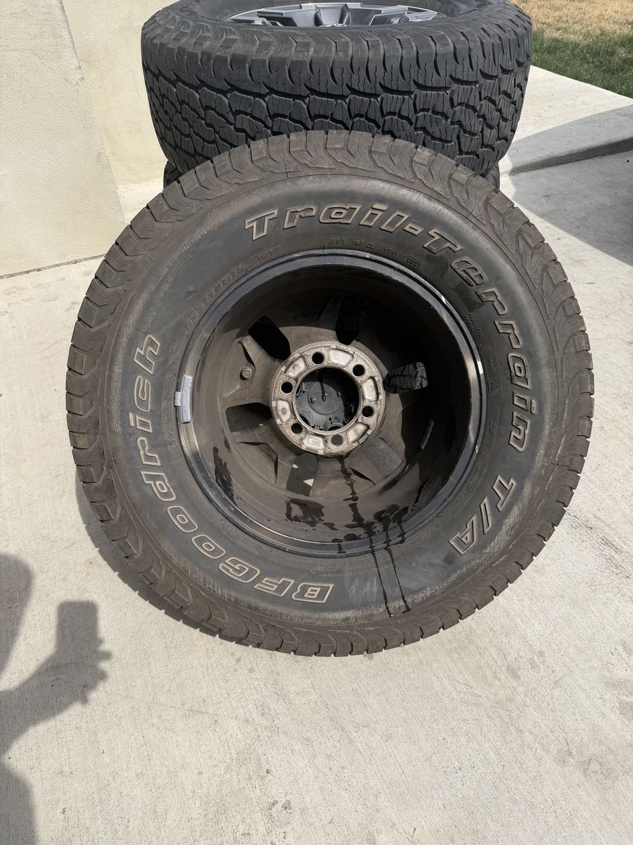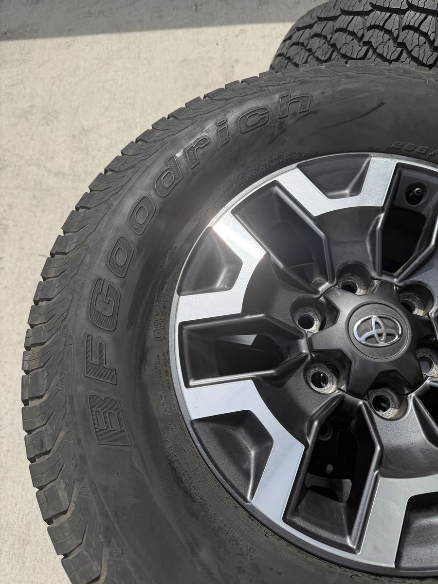 VenmoSet of 4-Toyota Tacoma Rims and Tires 265/70R16 Bfgoodrich Trail Terrain like new in excellent condition asking,asking $1000 Tires are like new Rims are in excellent condition no scratches or curb rash I can sell the rims or tires separately Bolt pattern 6-5.5 or 6-139.7 Text anytime 385-402-2292