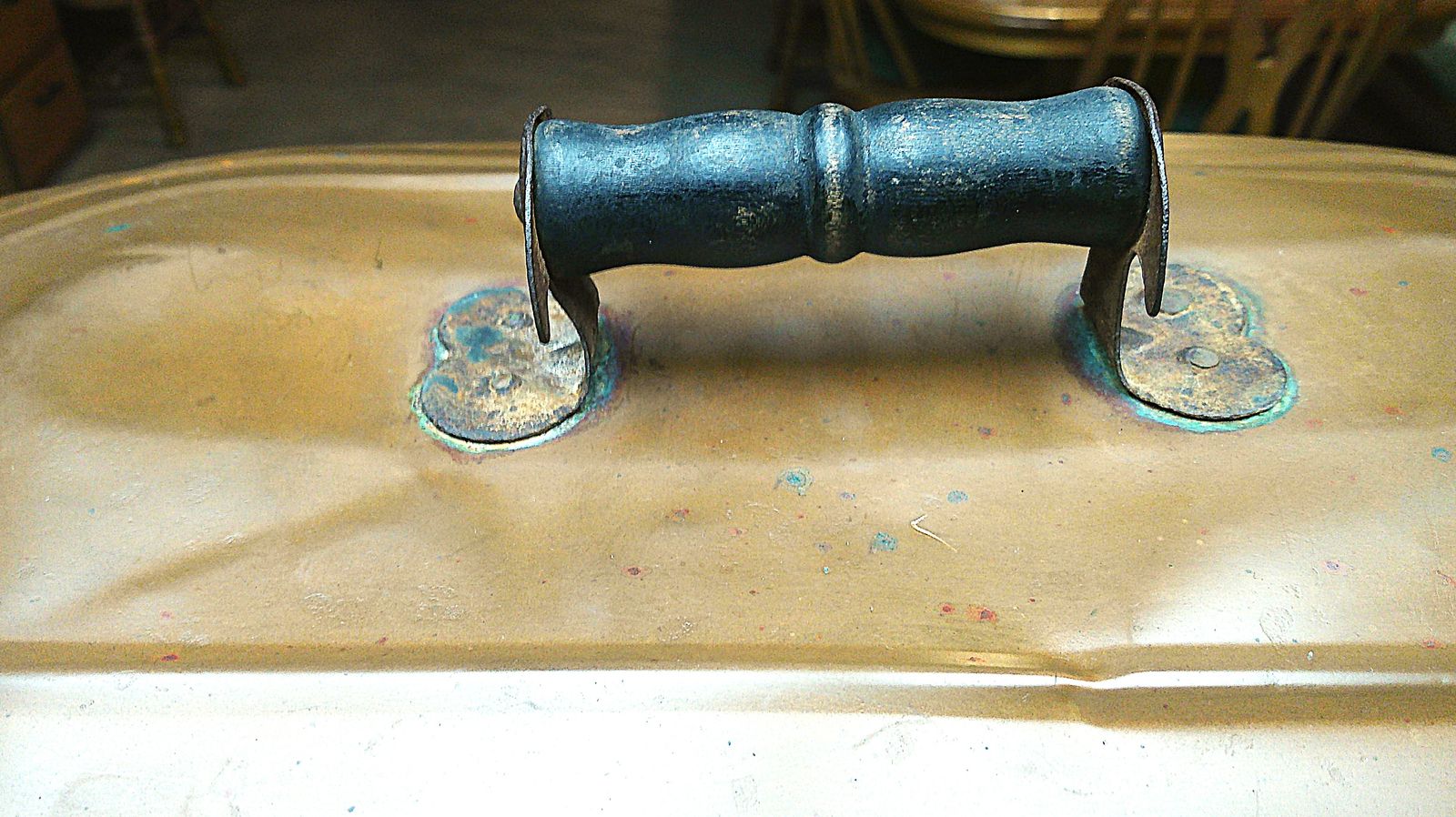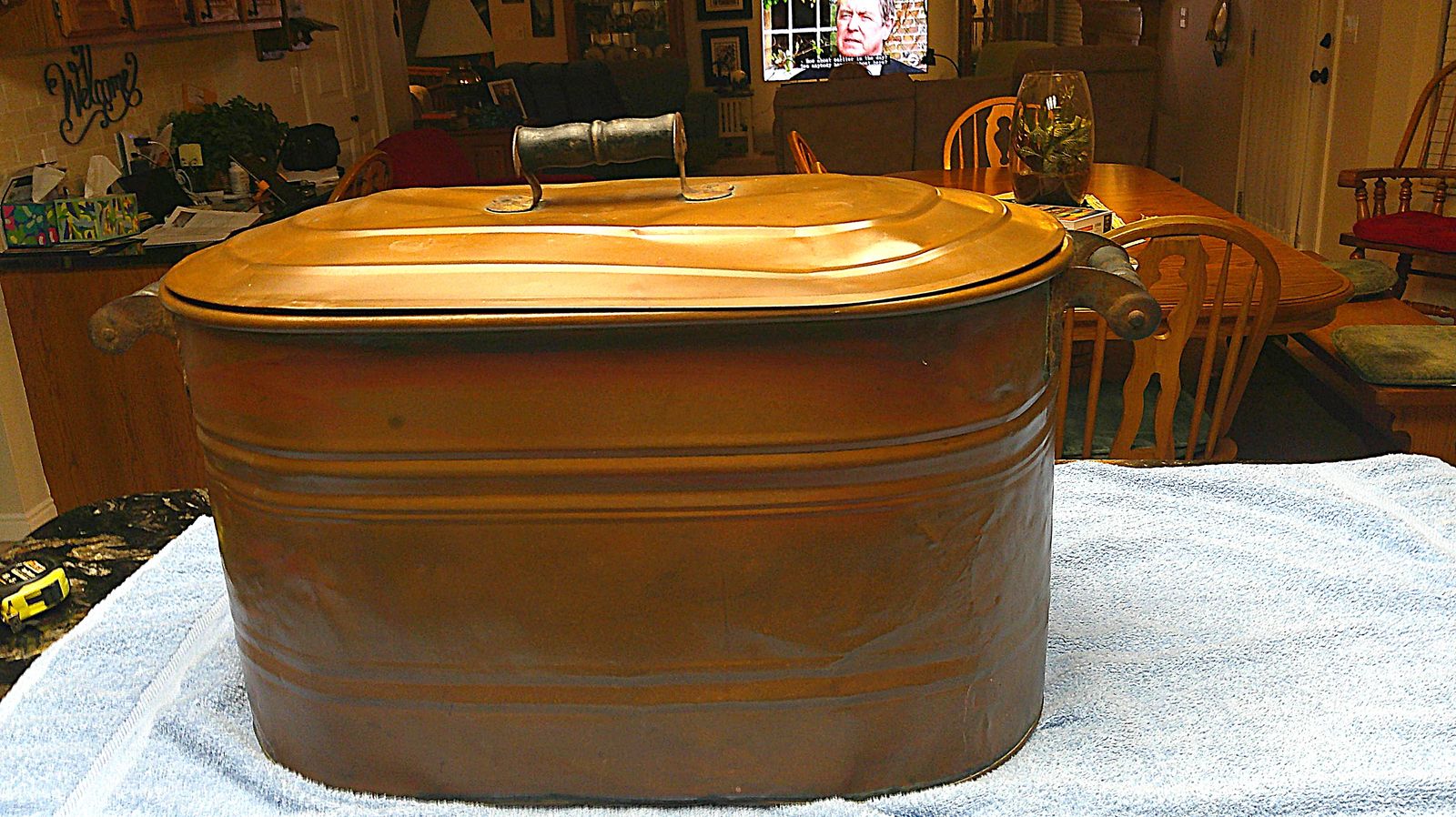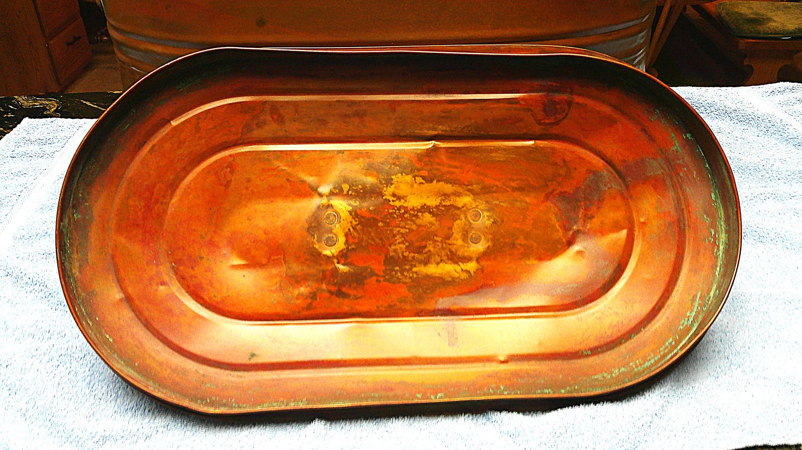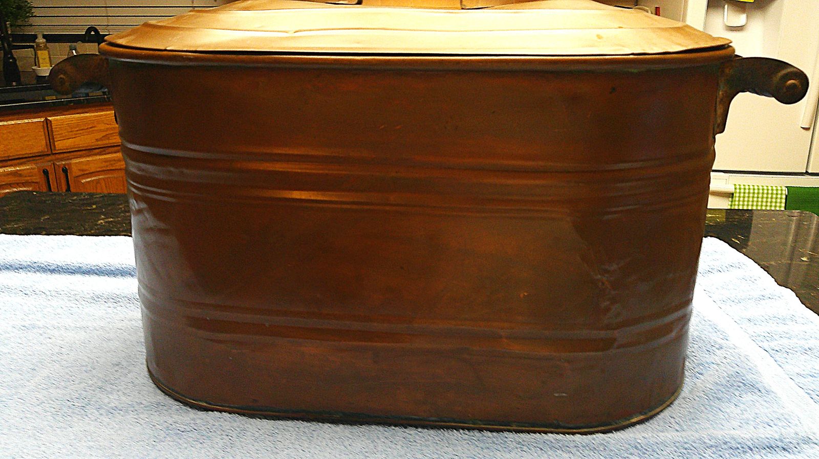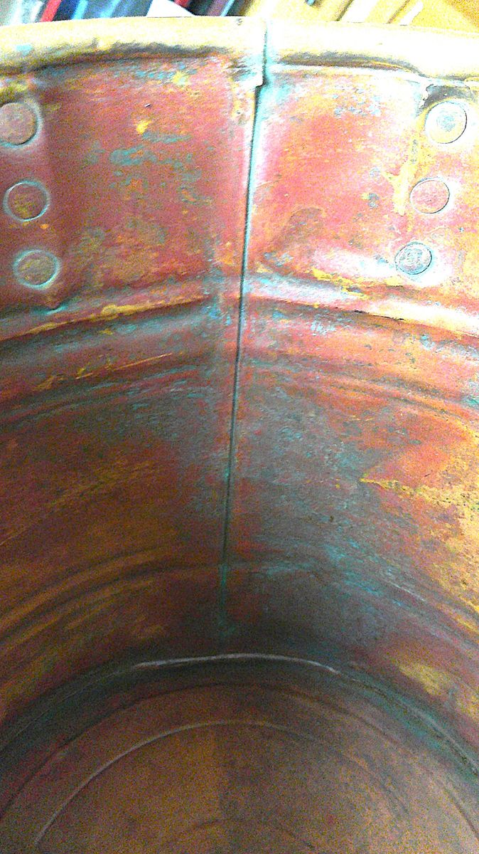 VERY GOOD CONDITION FOR ITS AGE COPPER BOILER / GOOD FITTING TOP / ALL WOOD HANDLES ARE INTACT / RIVETS ARE INTACT AS ARE THEN SEAMS. IT COULD BE USED TO BOIL HOT WATER TODAY AS IT WAS IN THE PAST / MEASURES 24" IN LENGTH, 15" TALL, AND 13" WIDE.