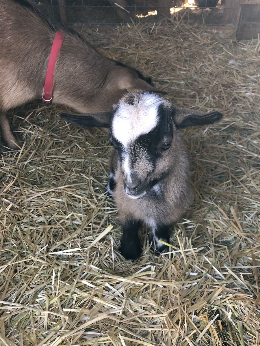 10 month old Nigerian Dwarf Buck, Little Joe, has produced some beautiful Kidds this week. DM for information about buying him.