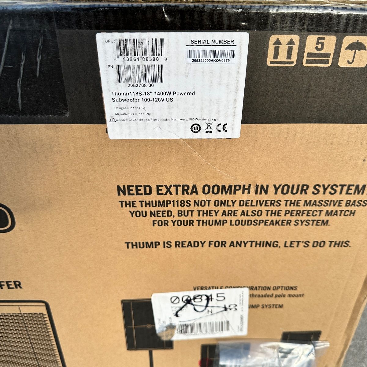 Elevate your sound system with the Mackie Thump118S 1,400-watt 18-inch Powered Subwoofer. Engineered for powerful, punchy bass, the Thump118S is ideal for DJs, live performers, and venues seeking deep, rich low-end enhancement. Its robust 1,400-watt Class D amplifier delivers tight, responsive bass ideal for professional PA and DJ setups. The 18-inch high-performance woofer ensures clarity and depth, while built-in stereo XLR inputs and outputs offer versatile connections for seamless integration with any sound system. Featuring three selectable crossover presets, the Thump118S adapts easily to different setups and room sizes. A rugged front grille and sturdy enclosure protect the subwoofer during transport and touring. The compact yet highly durable design simplifies setup and mobility, making it perfect for events on the go. Experience deep bass, reliable performance, and true flexibility—choose the Mackie Thump118S for the best in live audio. Buy now to transform your event’s sound with industry-leading low-frequency power!