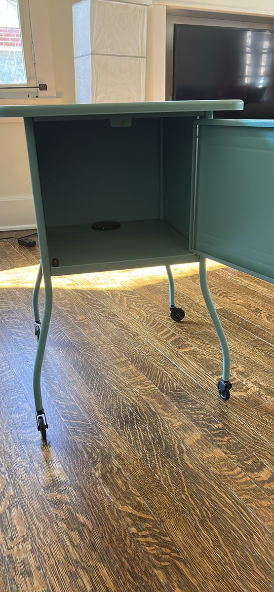 VenmoGreen Ikea bedside table. You can change which way the door opens.