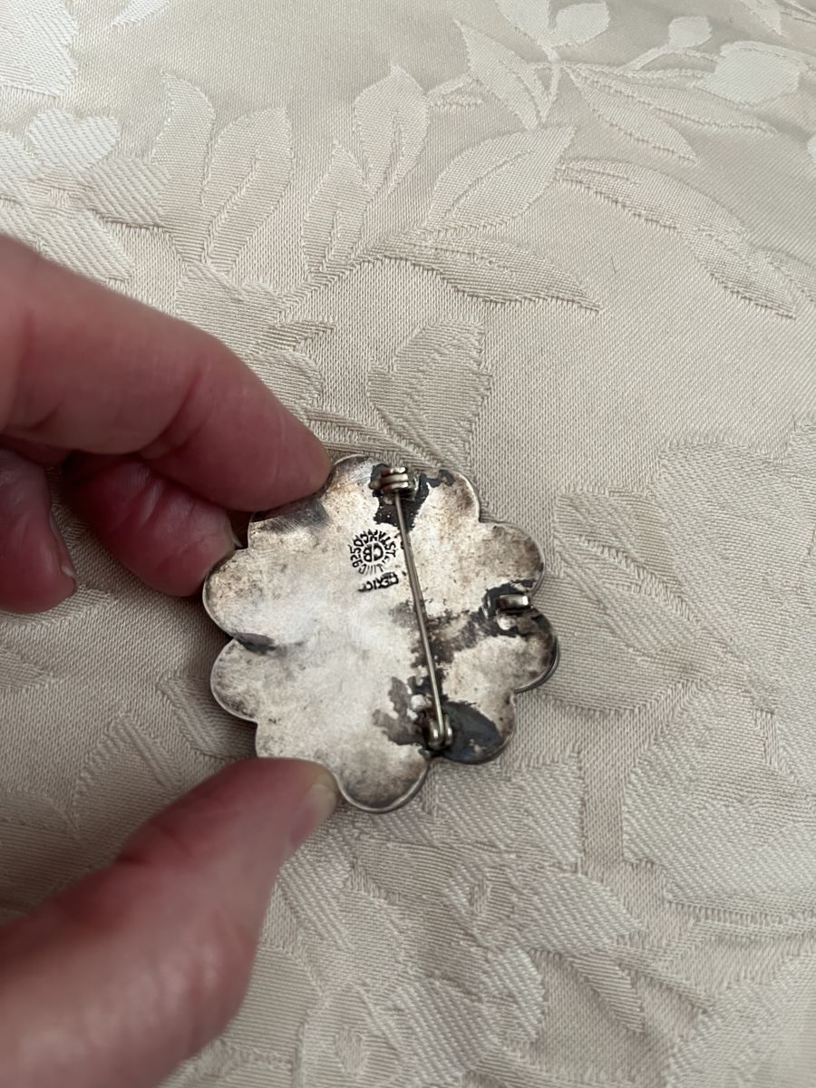 VenmoThis is just beautiful and it is in excellent condition. It is stamped on the back, it i says 'Mexico 925' Then it looks like a artist's mark on it. It is a lovely and unique piece. It measures 1 3/4 inches across. Must see! Price is firm.
