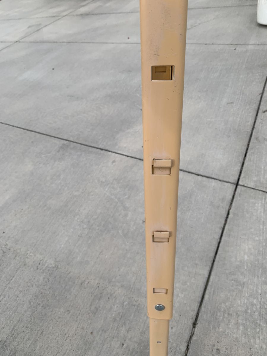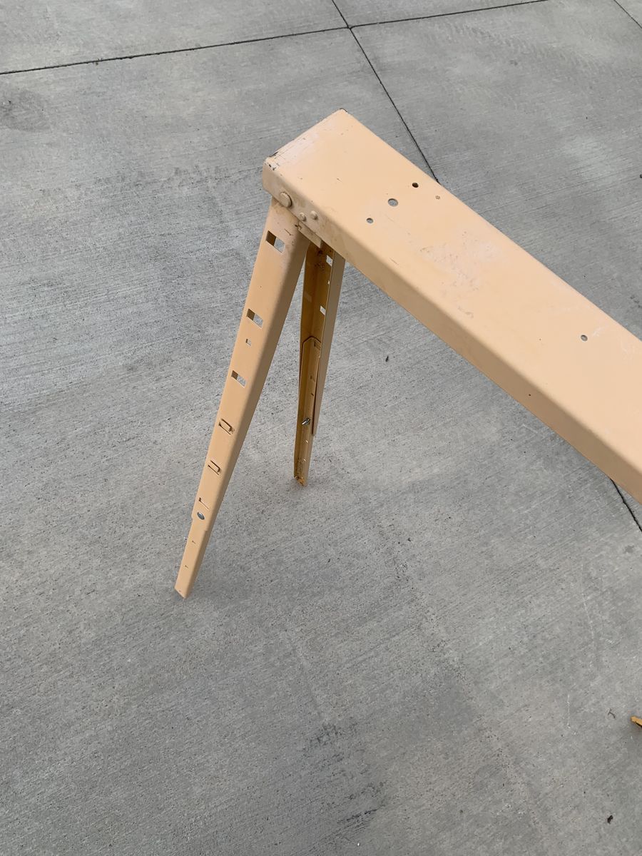 This adjustable metal sawhorse is designed for versatility and durability. The height is adjustable between 25 inches and 40 inches, with a weight capacity of up to 1200 pounds. It folds flat for convenient storage, making it suitable for various projects and applications requiring additional support.