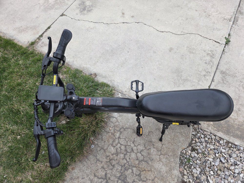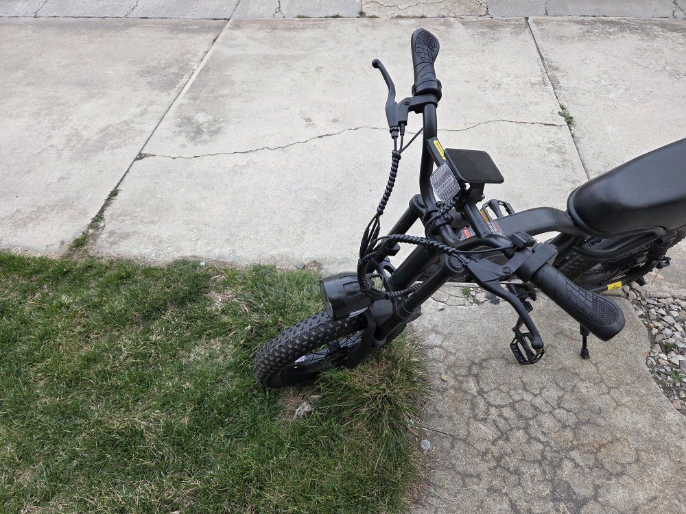 Awesome Vaster 16' fat tire e-bike. Has thick tires for smooth rides. Comes with a comfy seat, headlight, taillight. Display mount on handlebars. For Teens/Adults, 500W Motor with Removable Battery, charger. 20MPH, UP to 35 Miles Mountain Bike, Teenagers ebike for Riding&Commuting It's only be used once. Im asking 500 OBF no scammers or codes
