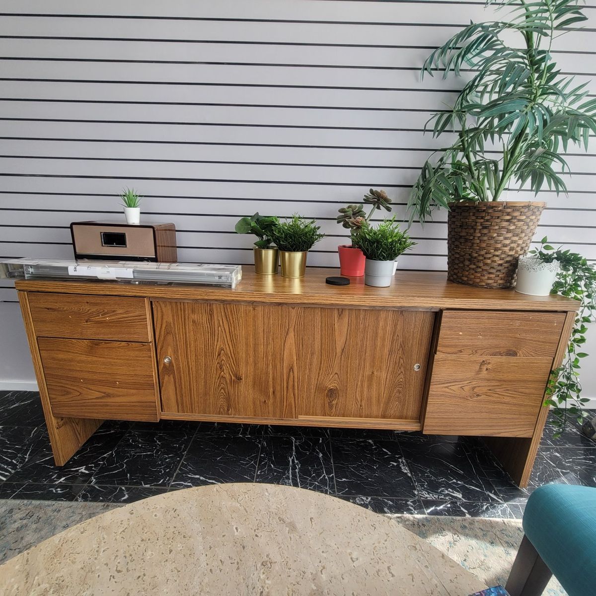 VenmoVintage mid century modern style desk with matching credenza. Clean lines with lots of storage and a large work surface.