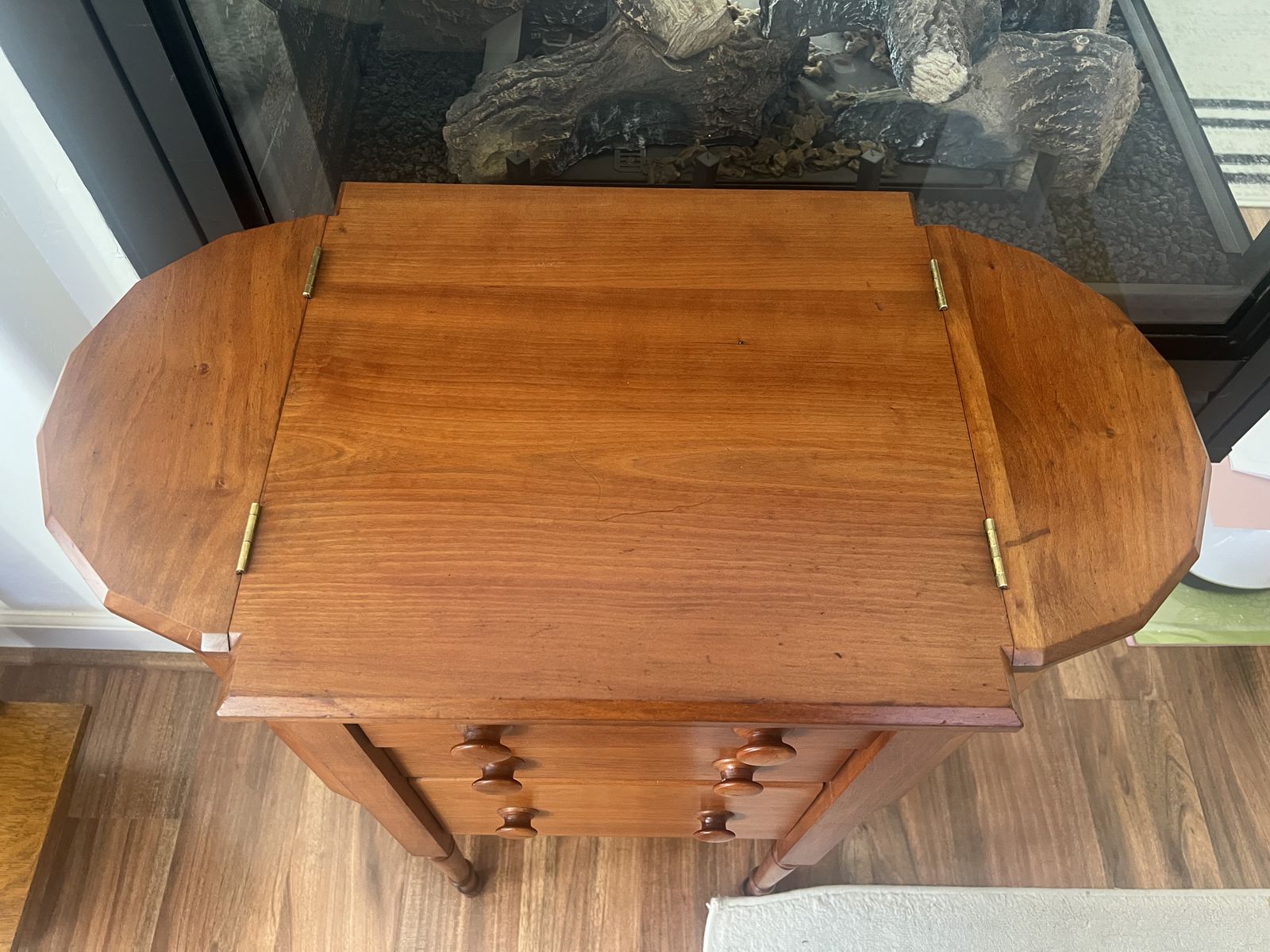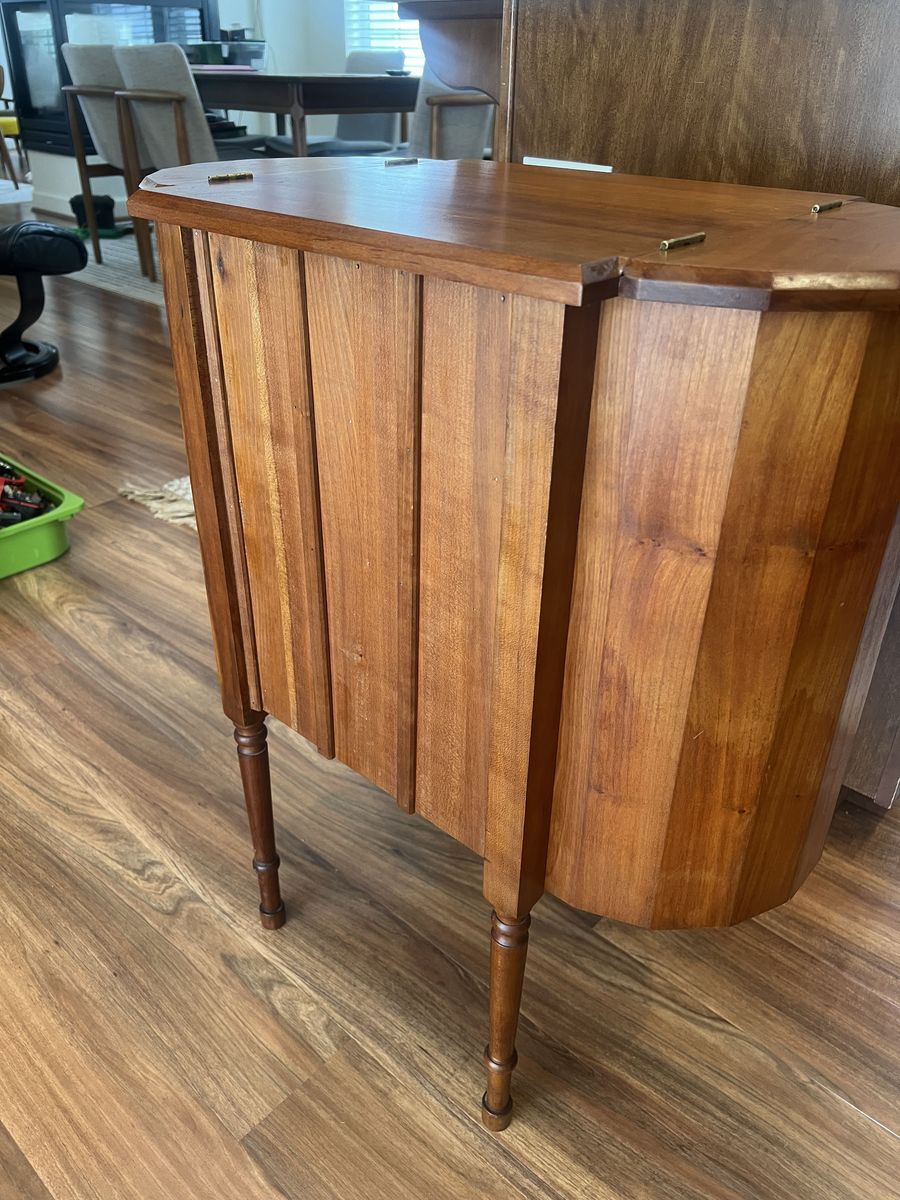 VenmoSolid Walnut Sewing Cabinet Table Martha Washington 28” height 25” width 14” depth . Smoke and pet free home. Cash or Venmo.