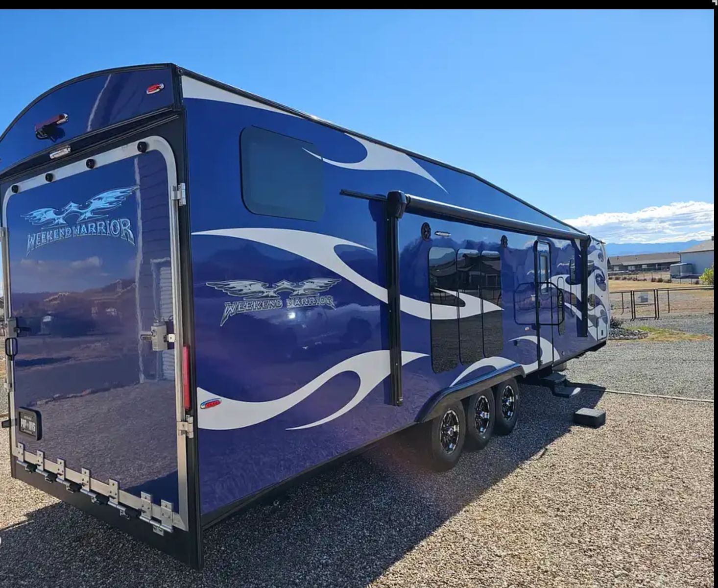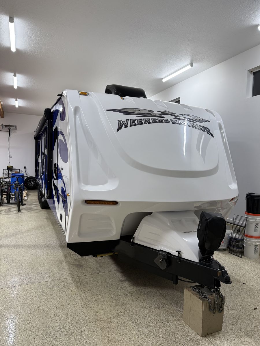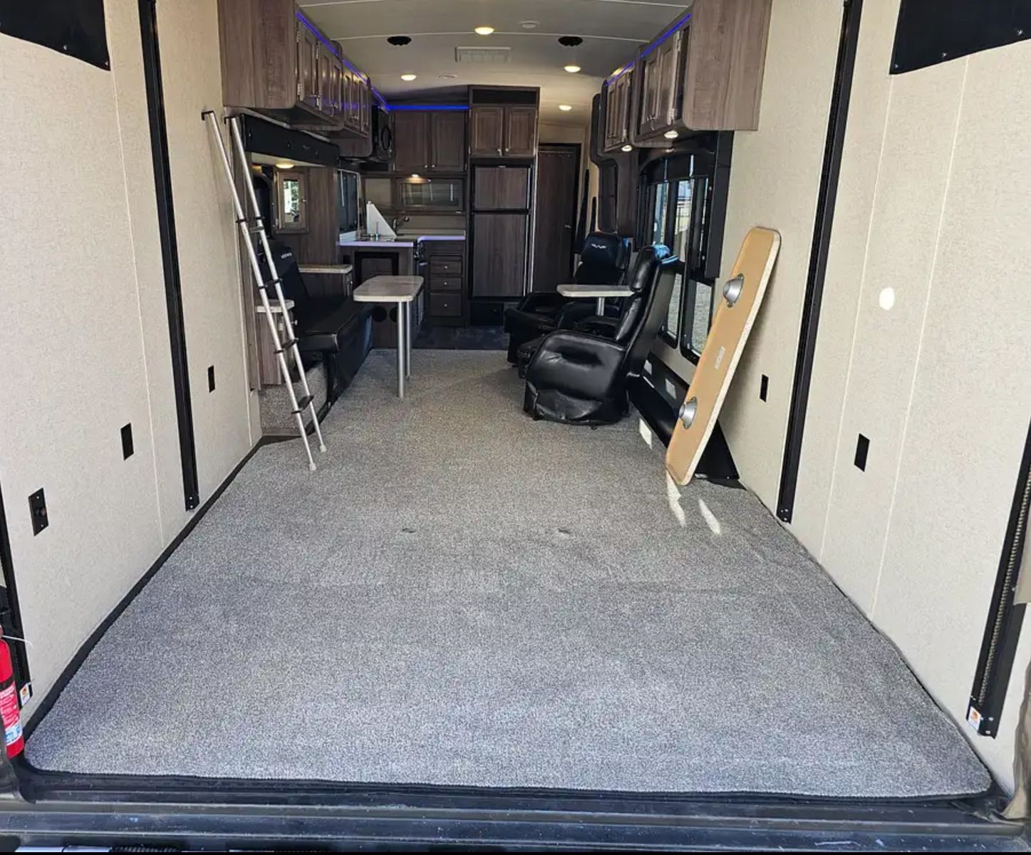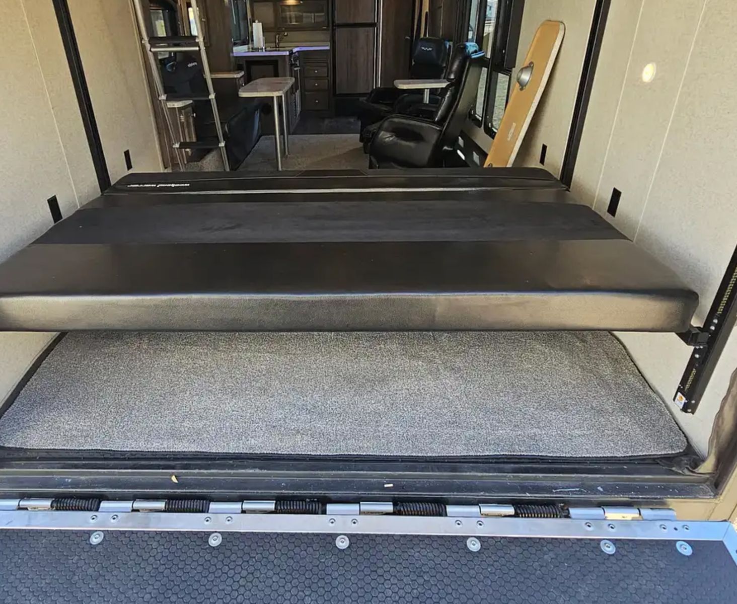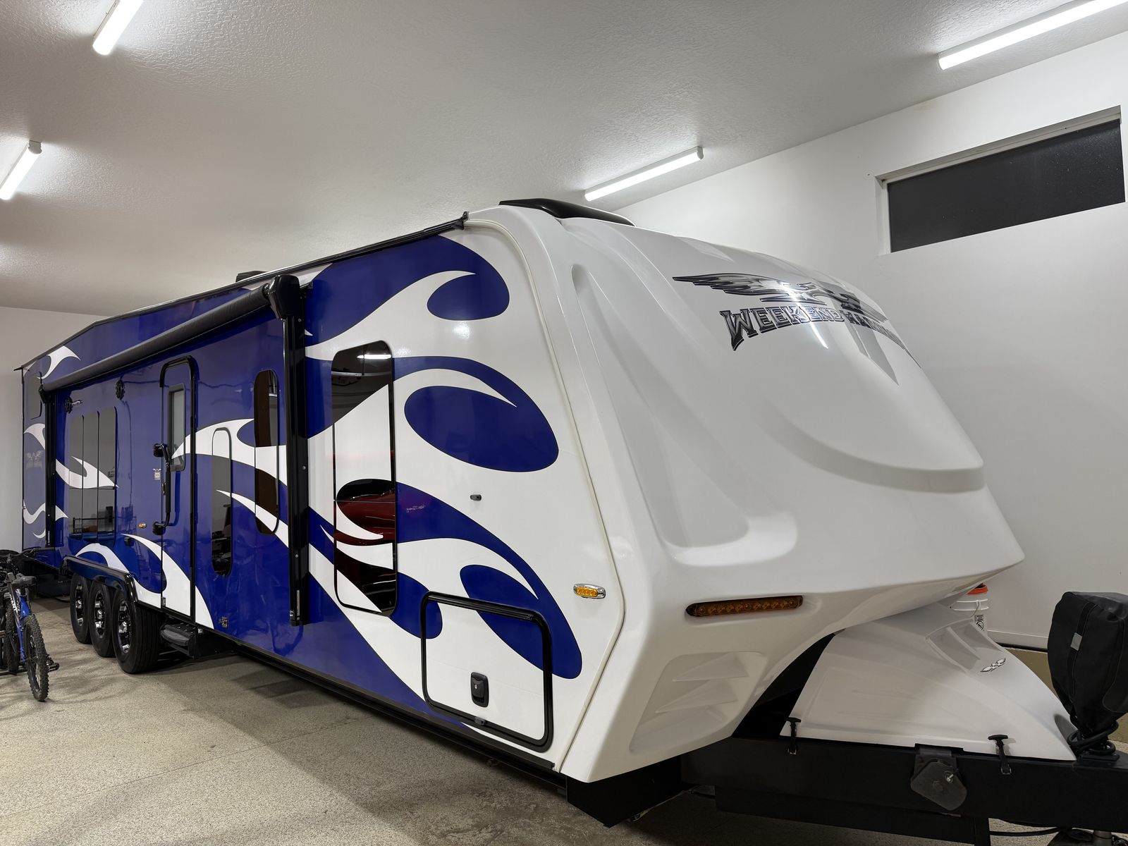 This trailer is in immaculate condition. I purchased this from the original owner in January of 2025. It has been garaged it's whole life. It is a bumper pull with a toy hauler garage application. The youtube link that I included is from the original sellers ad when he was advertising the trailer before I bought it (do NOT call the number or reachout with the info on the youtube link). It came from a non smoker and is still a non smoker setup. The last two pictures show the trailer in the garage it has been in since I have owned it. In the summer of 2025, I had 6 new tires plus the spare installed. I have also installed 2 brand new smart tv's. I have taken it out on a total of 3 trips since my family has had it. We have not used as often as we had hoped. I am able to fit my 2023 Can Am X3 (4 door) on 35' in the garage area.