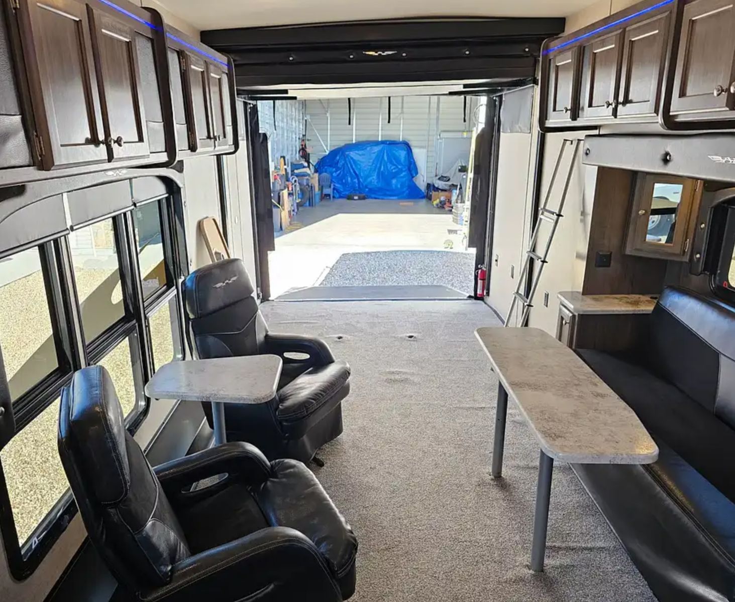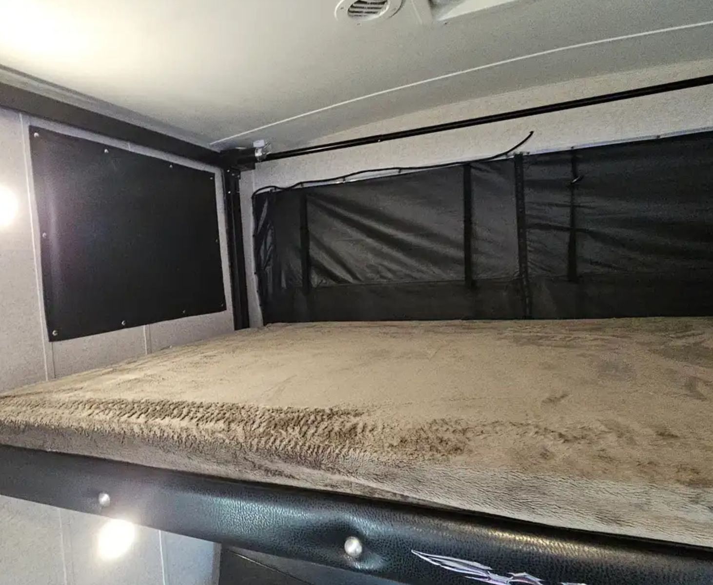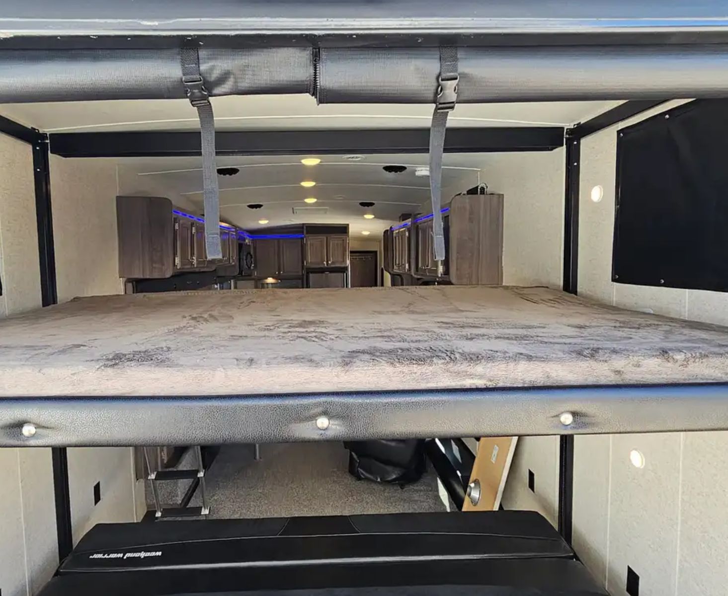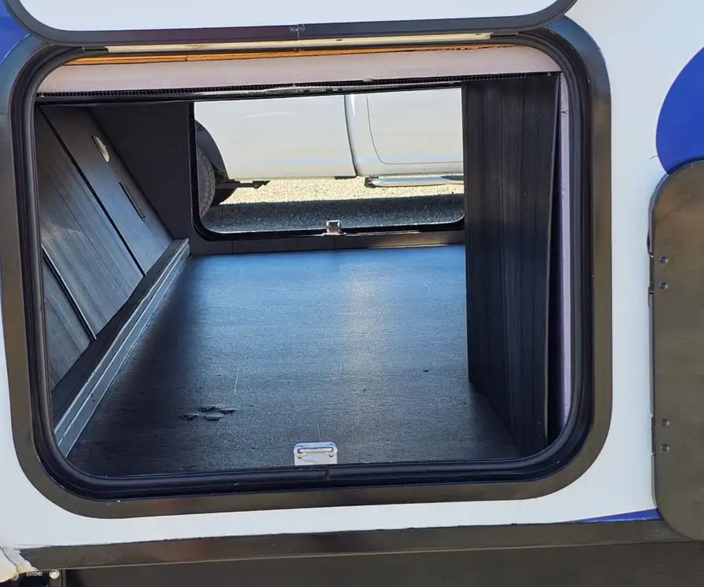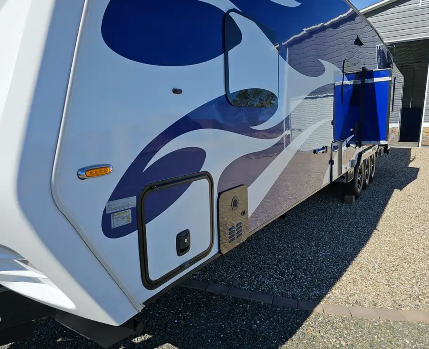 This trailer is in immaculate condition. I purchased this from the original owner in January of 2025. It has been garaged it's whole life. It is a bumper pull with a toy hauler garage application. The youtube link that I included is from the original sellers ad when he was advertising the trailer before I bought it (do NOT call the number or reachout with the info on the youtube link). It came from a non smoker and is still a non smoker setup. The last two pictures show the trailer in the garage it has been in since I have owned it. In the summer of 2025, I had 6 new tires plus the spare installed. I have also installed 2 brand new smart tv's. I have taken it out on a total of 3 trips since my family has had it. We have not used as often as we had hoped. I am able to fit my 2023 Can Am X3 (4 door) on 35' in the garage area.