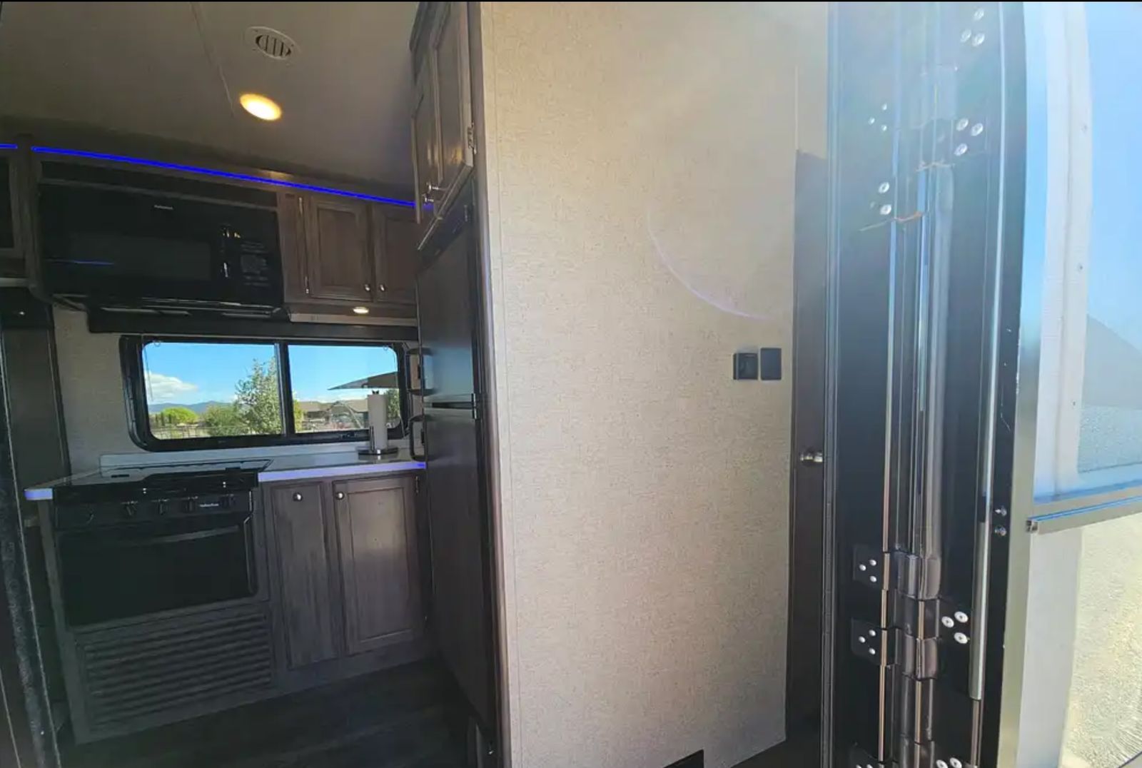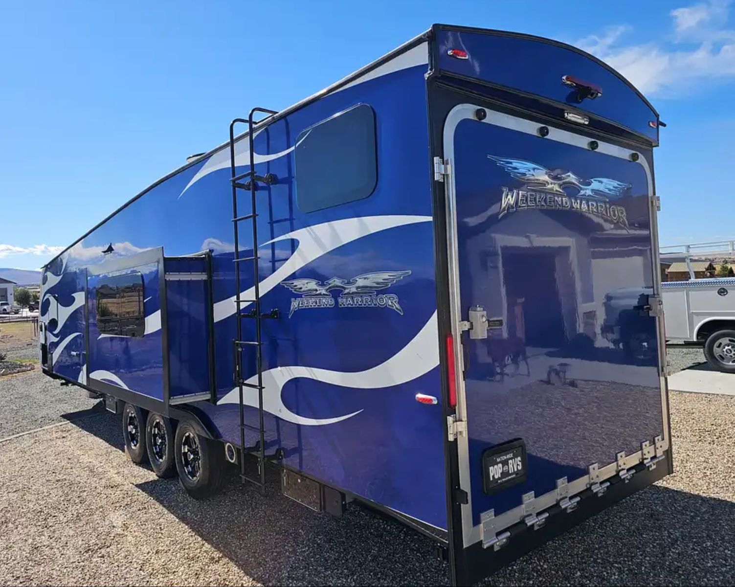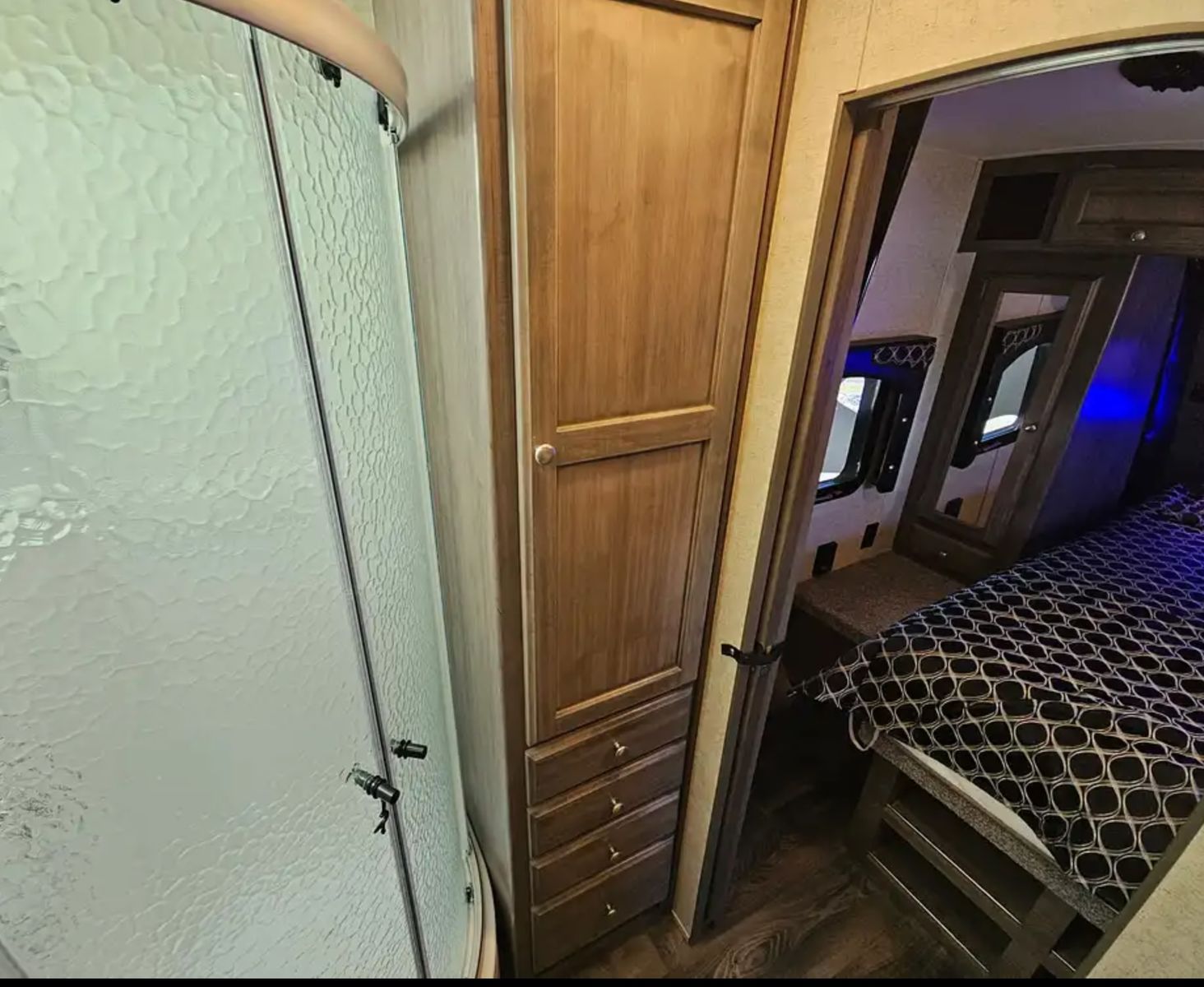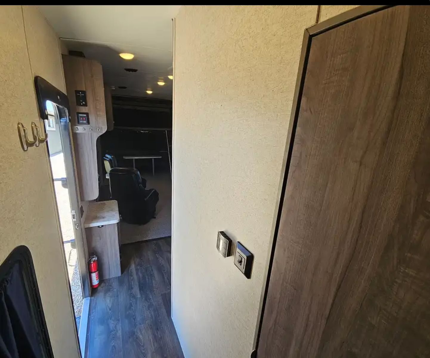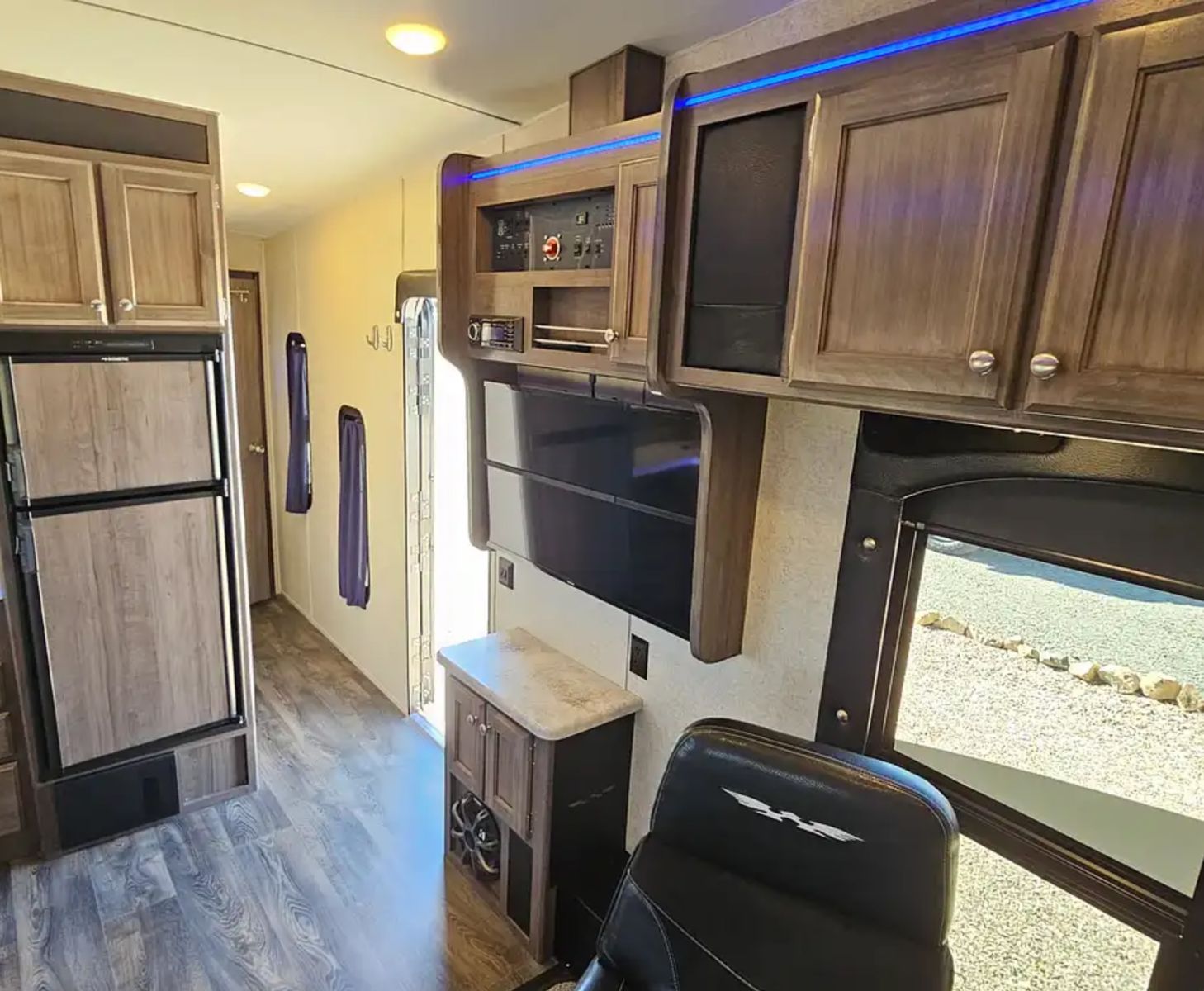 This trailer is in immaculate condition. I purchased this from the original owner in January of 2025. It has been garaged it's whole life. It is a bumper pull with a toy hauler garage application. The youtube link that I included is from the original sellers ad when he was advertising the trailer before I bought it (do NOT call the number or reachout with the info on the youtube link). It came from a non smoker and is still a non smoker setup. The last two pictures show the trailer in the garage it has been in since I have owned it. In the summer of 2025, I had 6 new tires plus the spare installed. I have also installed 2 brand new smart tv's. I have taken it out on a total of 3 trips since my family has had it. We have not used as often as we had hoped. I am able to fit my 2023 Can Am X3 (4 door) on 35' in the garage area.