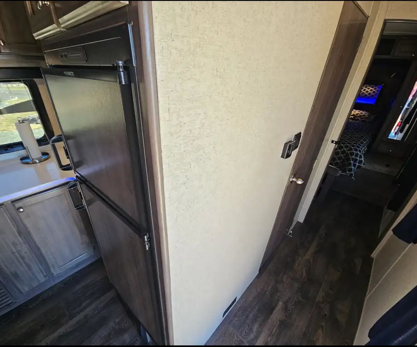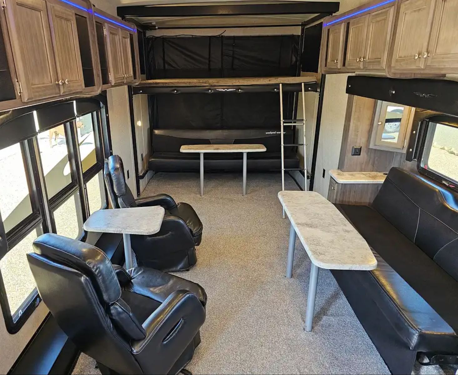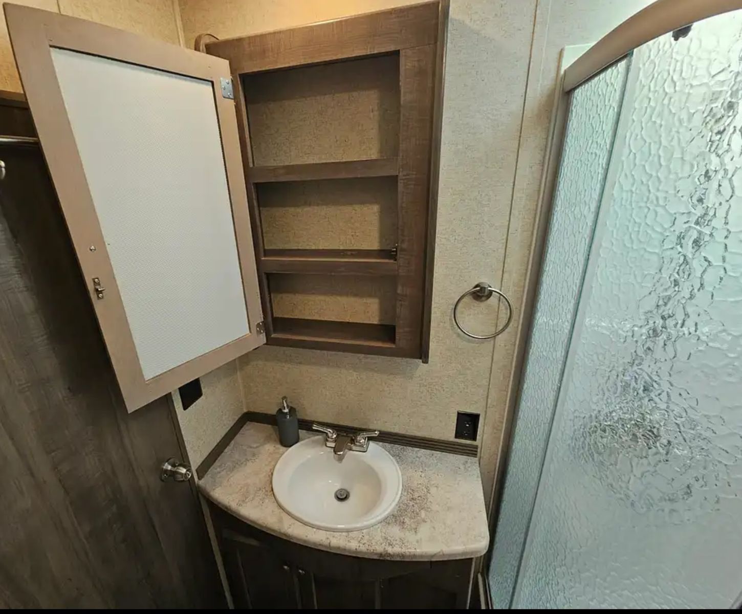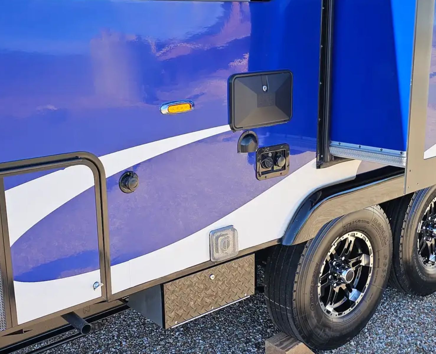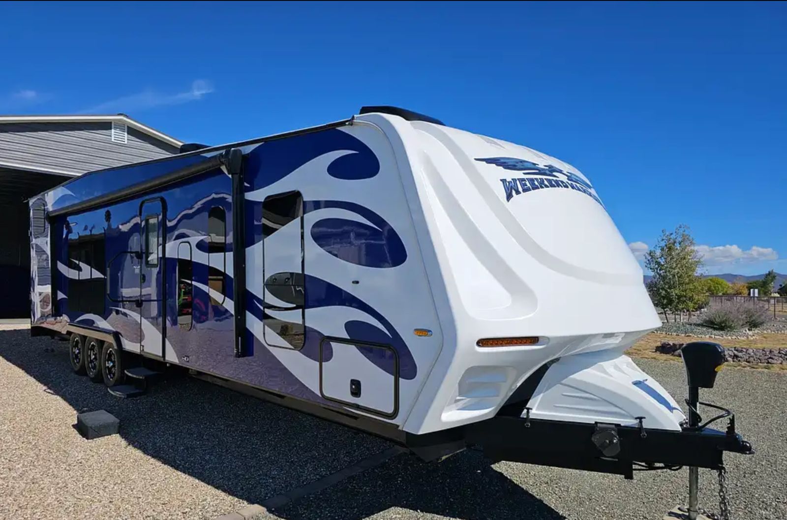 This trailer is in immaculate condition. I purchased this from the original owner in January of 2025. It has been garaged it's whole life. It is a bumper pull with a toy hauler garage application. The youtube link that I included is from the original sellers ad when he was advertising the trailer before I bought it (do NOT call the number or reachout with the info on the youtube link). It came from a non smoker and is still a non smoker setup. The last two pictures show the trailer in the garage it has been in since I have owned it. In the summer of 2025, I had 6 new tires plus the spare installed. I have also installed 2 brand new smart tv's. I have taken it out on a total of 3 trips since my family has had it. We have not used as often as we had hoped. I am able to fit my 2023 Can Am X3 (4 door) on 35' in the garage area.