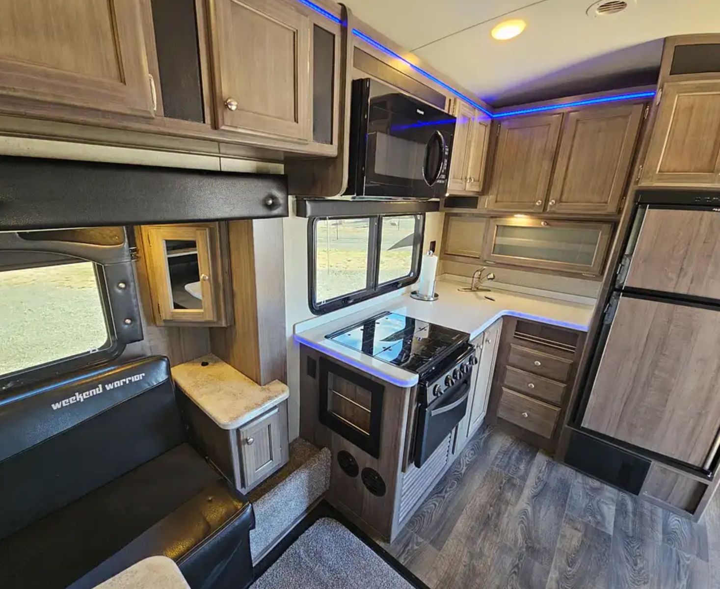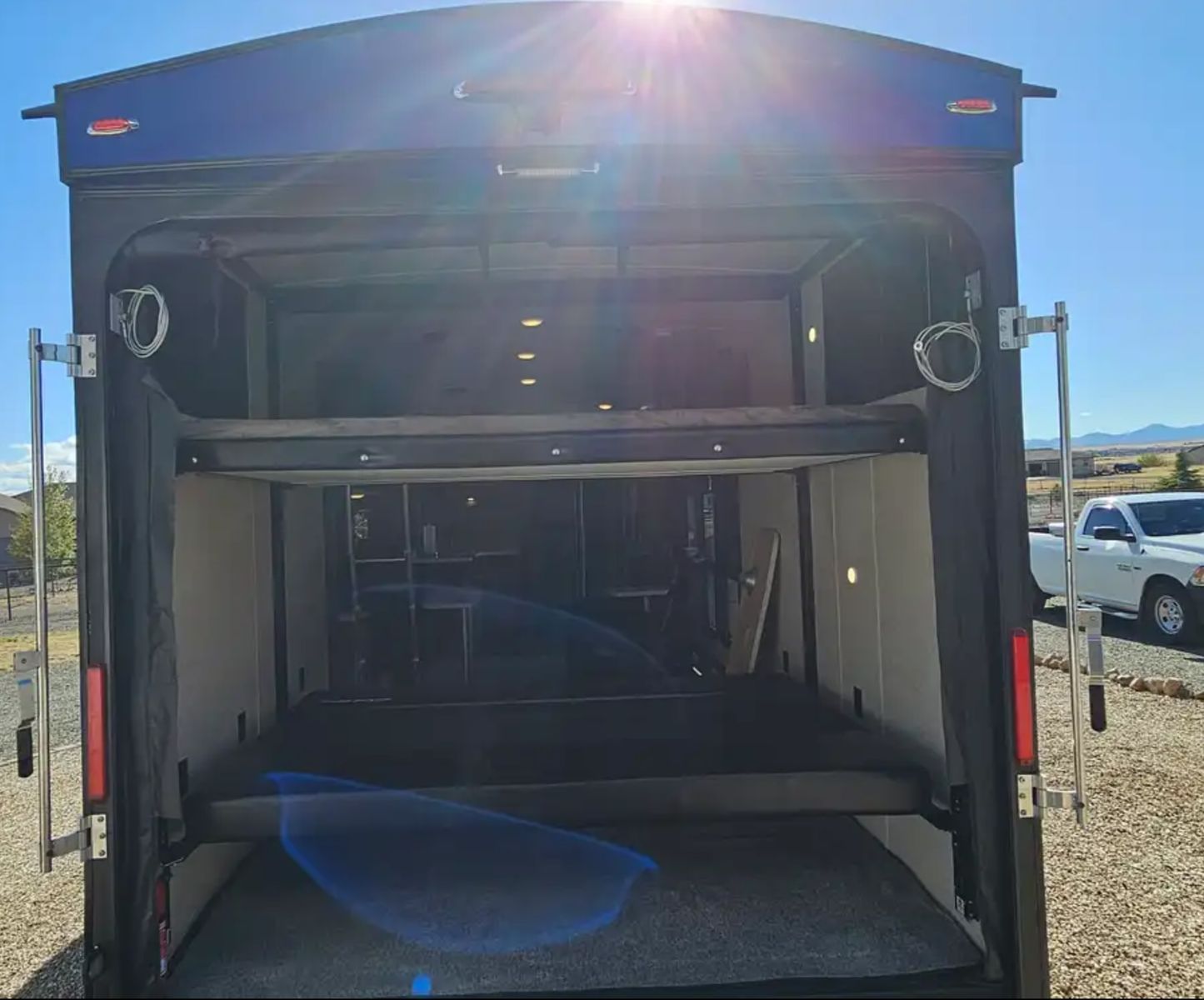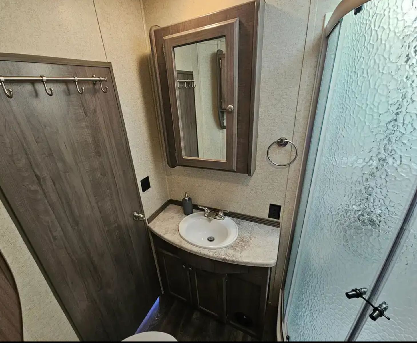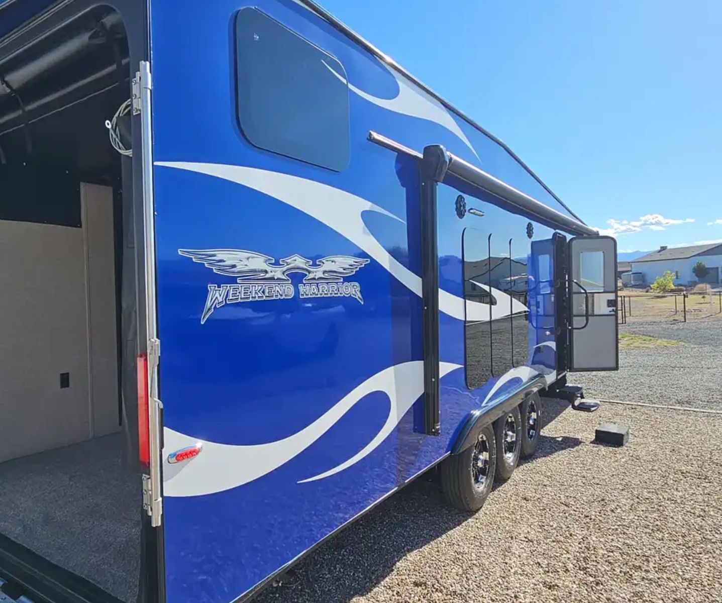 This trailer is in immaculate condition. I purchased this from the original owner in January of 2025. It has been garaged it's whole life. It is a bumper pull with a toy hauler garage application. The youtube link that I included is from the original sellers ad when he was advertising the trailer before I bought it (do NOT call the number or reachout with the info on the youtube link). It came from a non smoker and is still a non smoker setup. The last two pictures show the trailer in the garage it has been in since I have owned it. In the summer of 2025, I had 6 new tires plus the spare installed. I have also installed 2 brand new smart tv's. I have taken it out on a total of 3 trips since my family has had it. We have not used as often as we had hoped. I am able to fit my 2023 Can Am X3 (4 door) on 35' in the garage area.