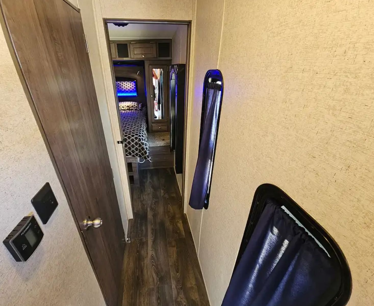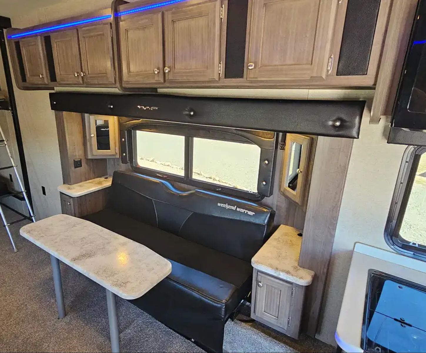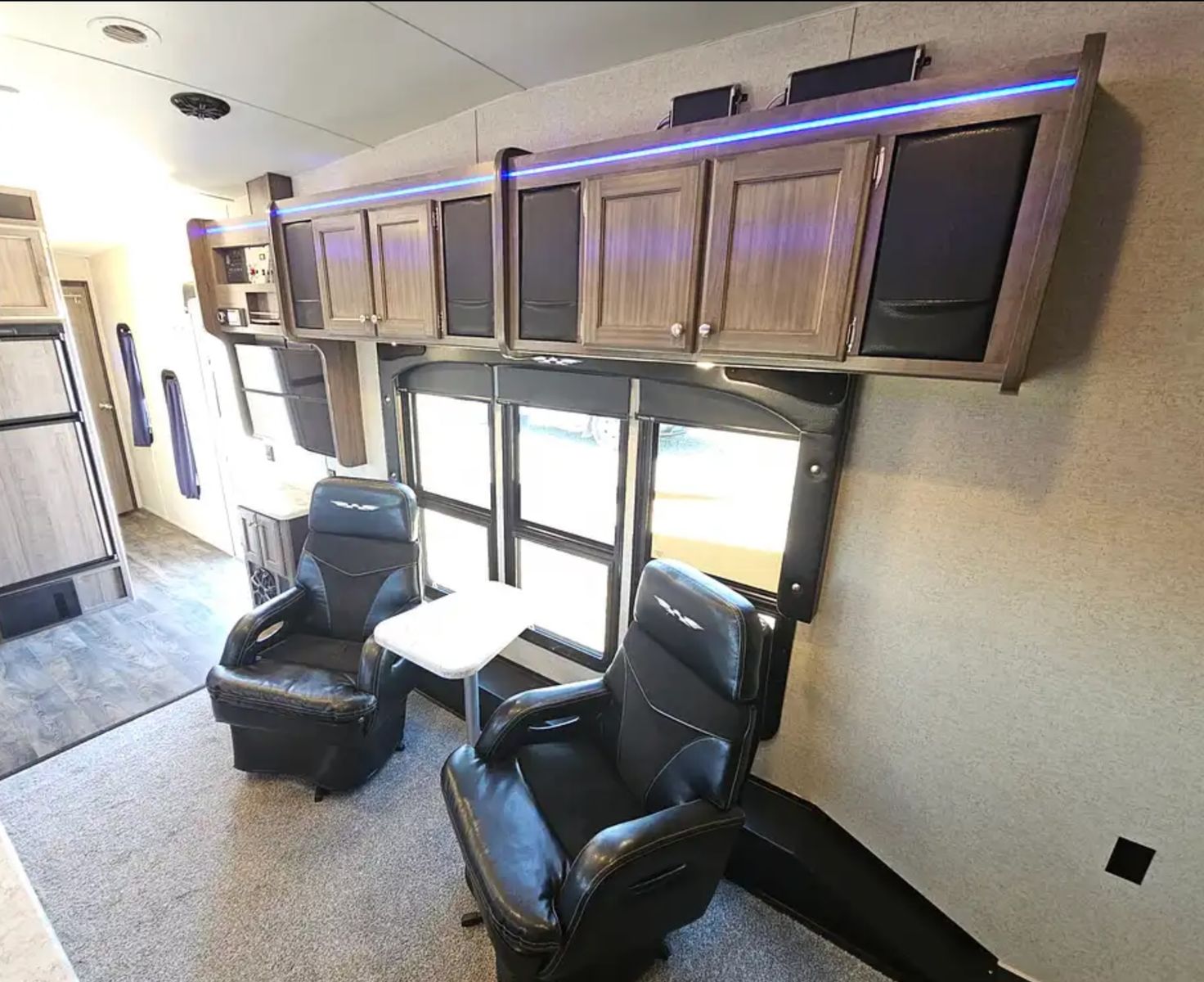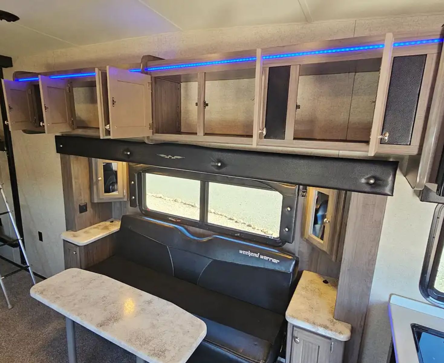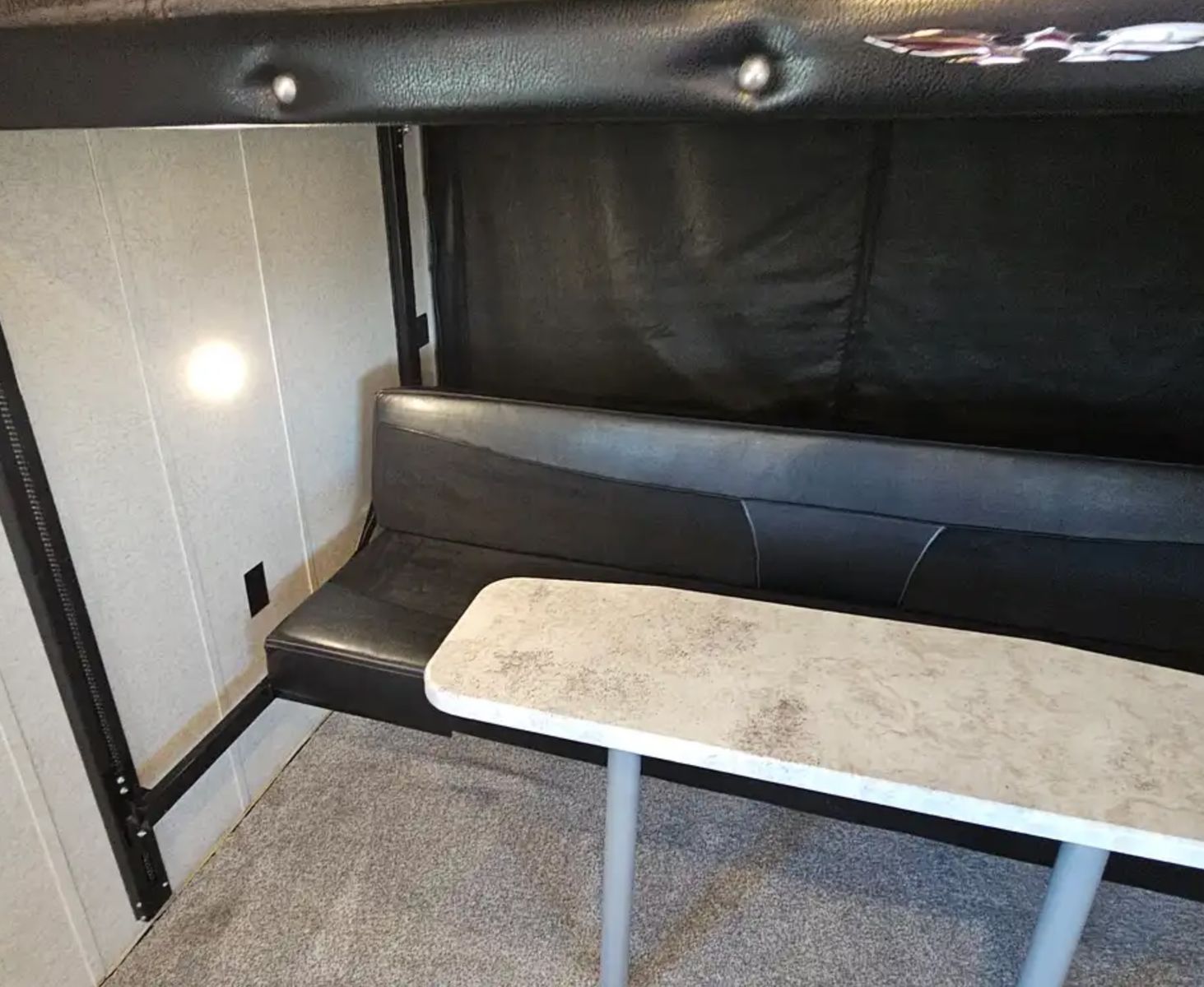 This trailer is in immaculate condition. I purchased this from the original owner in January of 2025. It has been garaged it's whole life. It is a bumper pull with a toy hauler garage application. The youtube link that I included is from the original sellers ad when he was advertising the trailer before I bought it (do NOT call the number or reachout with the info on the youtube link). It came from a non smoker and is still a non smoker setup. The last two pictures show the trailer in the garage it has been in since I have owned it. In the summer of 2025, I had 6 new tires plus the spare installed. I have also installed 2 brand new smart tv's. I have taken it out on a total of 3 trips since my family has had it. We have not used as often as we had hoped. I am able to fit my 2023 Can Am X3 (4 door) on 35' in the garage area.