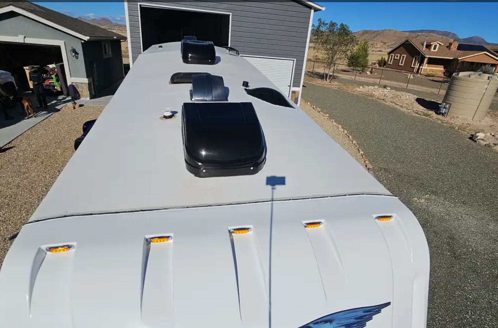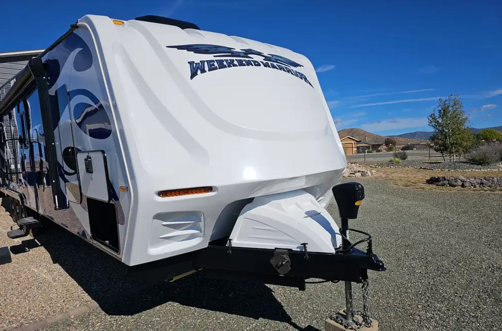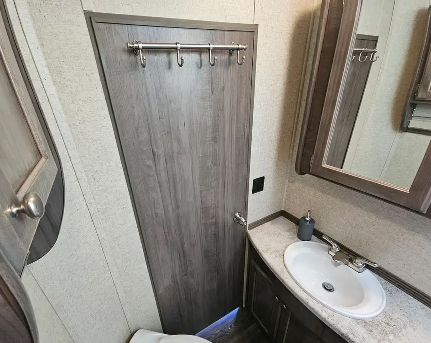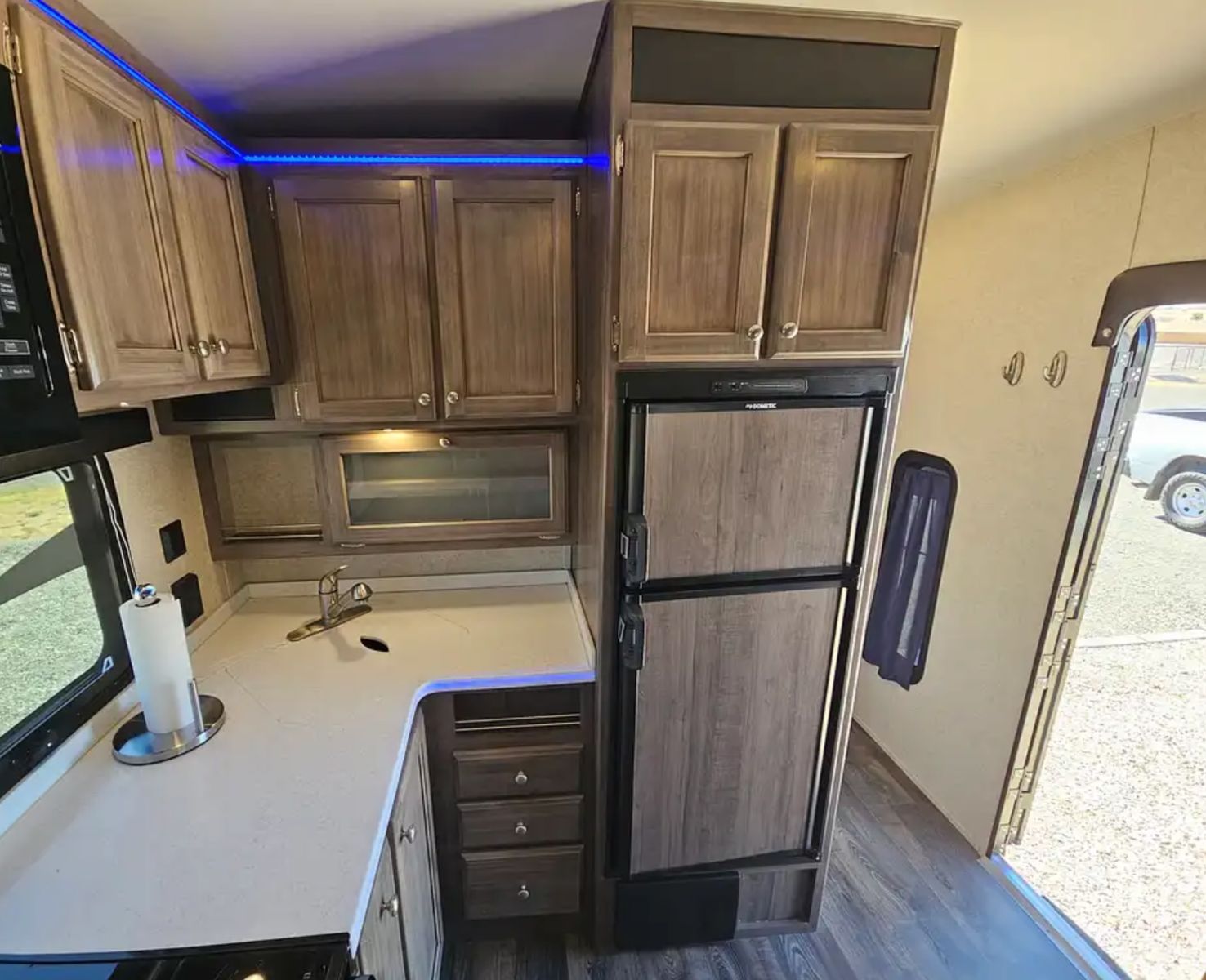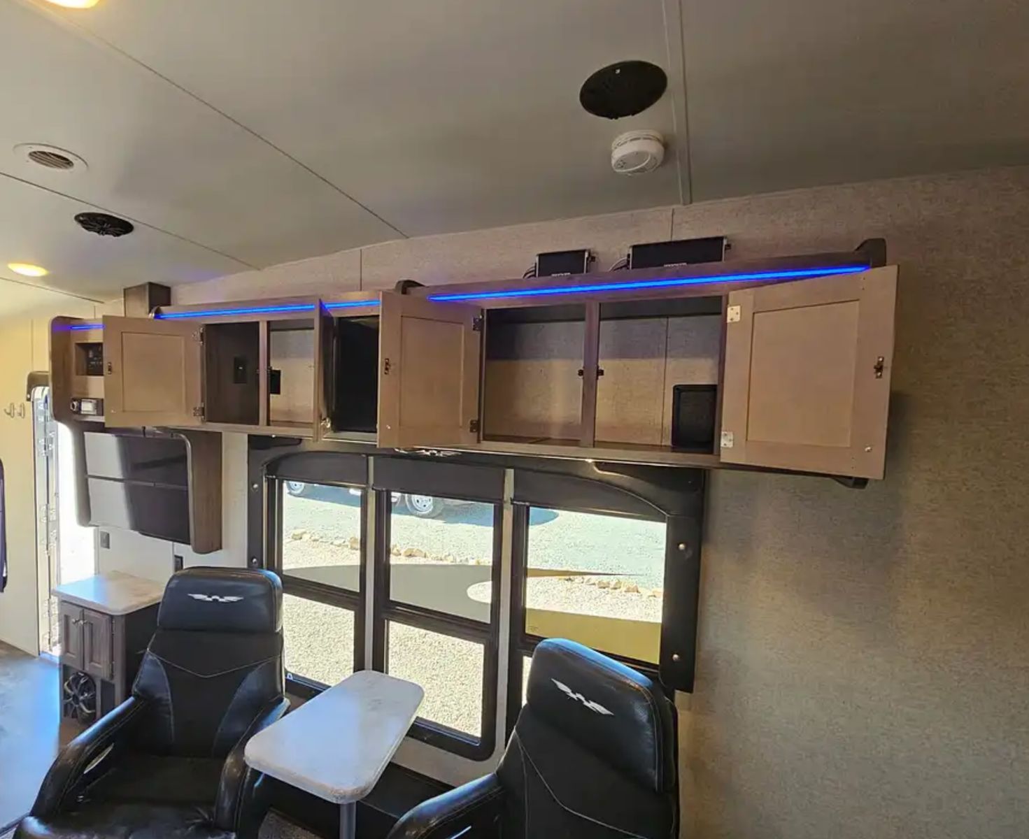 This trailer is in immaculate condition. I purchased this from the original owner in January of 2025. It has been garaged it's whole life. It is a bumper pull with a toy hauler garage application. The youtube link that I included is from the original sellers ad when he was advertising the trailer before I bought it (do NOT call the number or reachout with the info on the youtube link). It came from a non smoker and is still a non smoker setup. The last two pictures show the trailer in the garage it has been in since I have owned it. In the summer of 2025, I had 6 new tires plus the spare installed. I have also installed 2 brand new smart tv's. I have taken it out on a total of 3 trips since my family has had it. We have not used as often as we had hoped. I am able to fit my 2023 Can Am X3 (4 door) on 35' in the garage area.