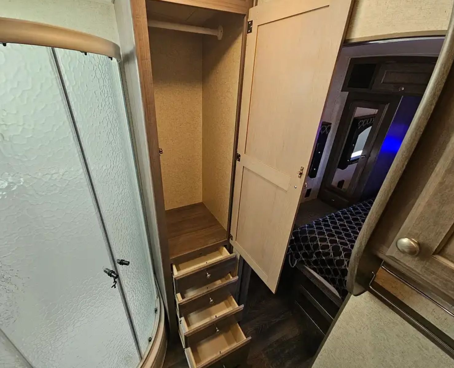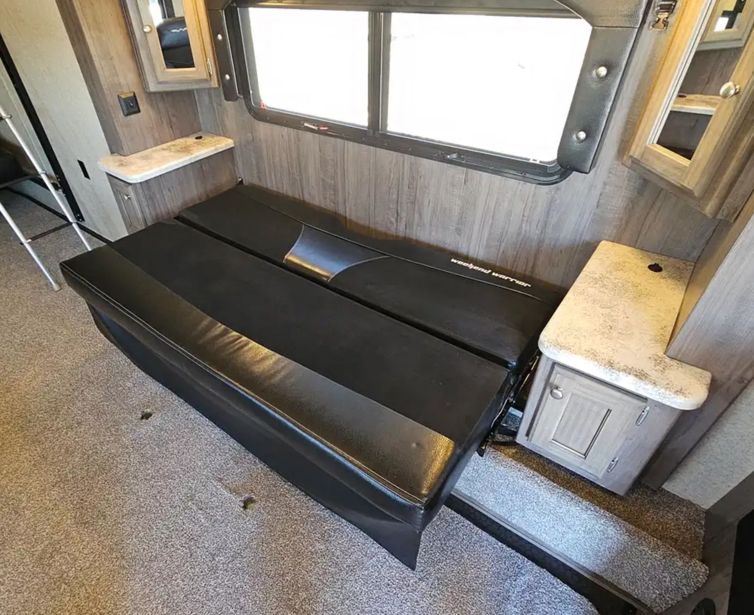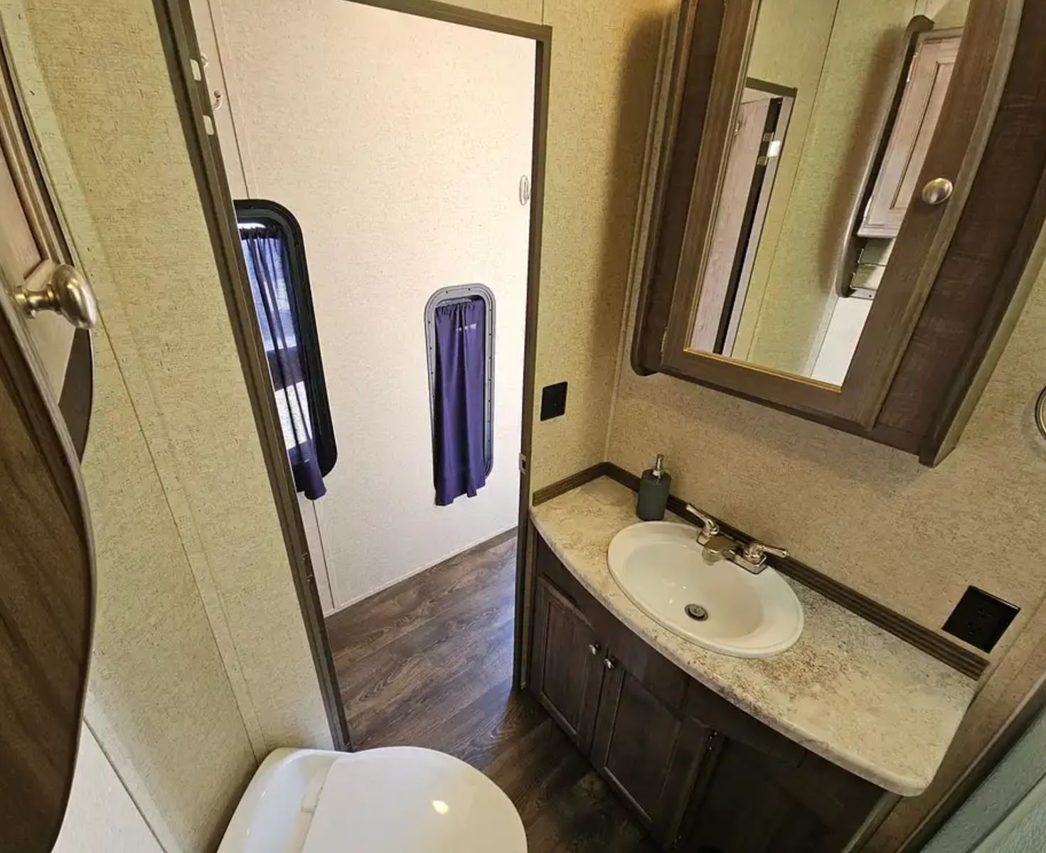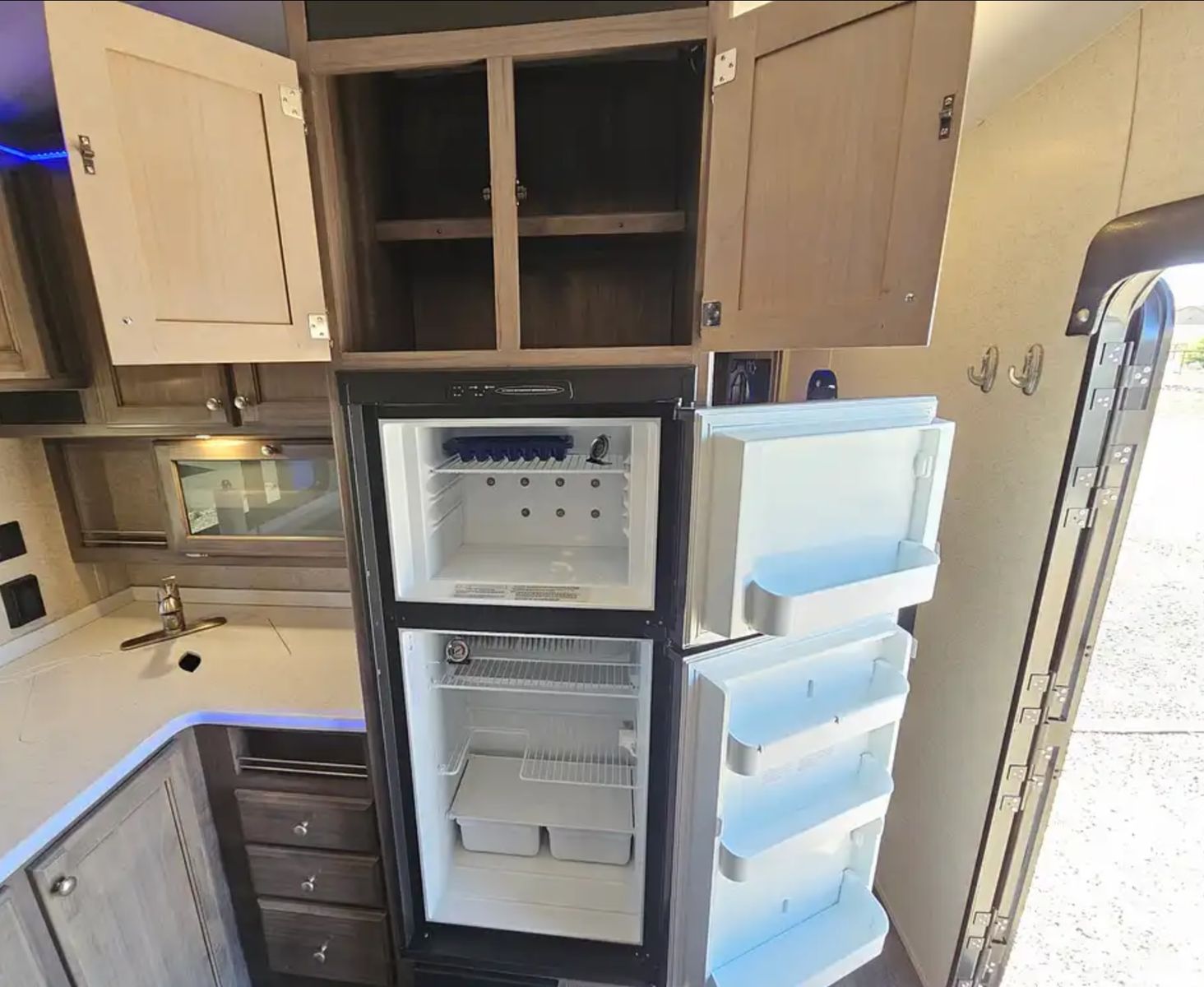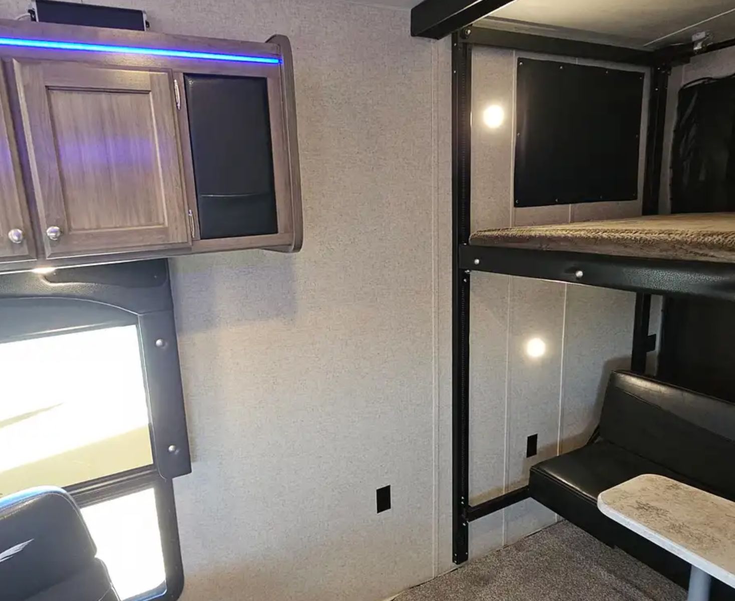 This trailer is in immaculate condition. I purchased this from the original owner in January of 2025. It has been garaged it's whole life. It is a bumper pull with a toy hauler garage application. The youtube link that I included is from the original sellers ad when he was advertising the trailer before I bought it (do NOT call the number or reachout with the info on the youtube link). It came from a non smoker and is still a non smoker setup. The last two pictures show the trailer in the garage it has been in since I have owned it. In the summer of 2025, I had 6 new tires plus the spare installed. I have also installed 2 brand new smart tv's. I have taken it out on a total of 3 trips since my family has had it. We have not used as often as we had hoped. I am able to fit my 2023 Can Am X3 (4 door) on 35' in the garage area.