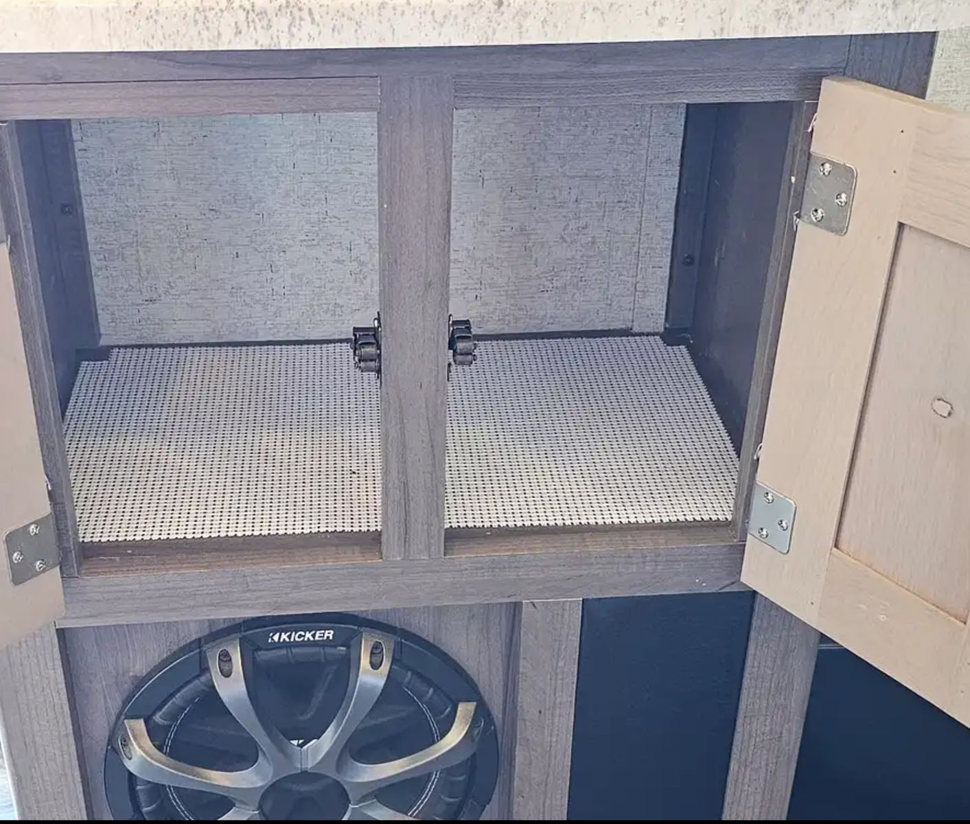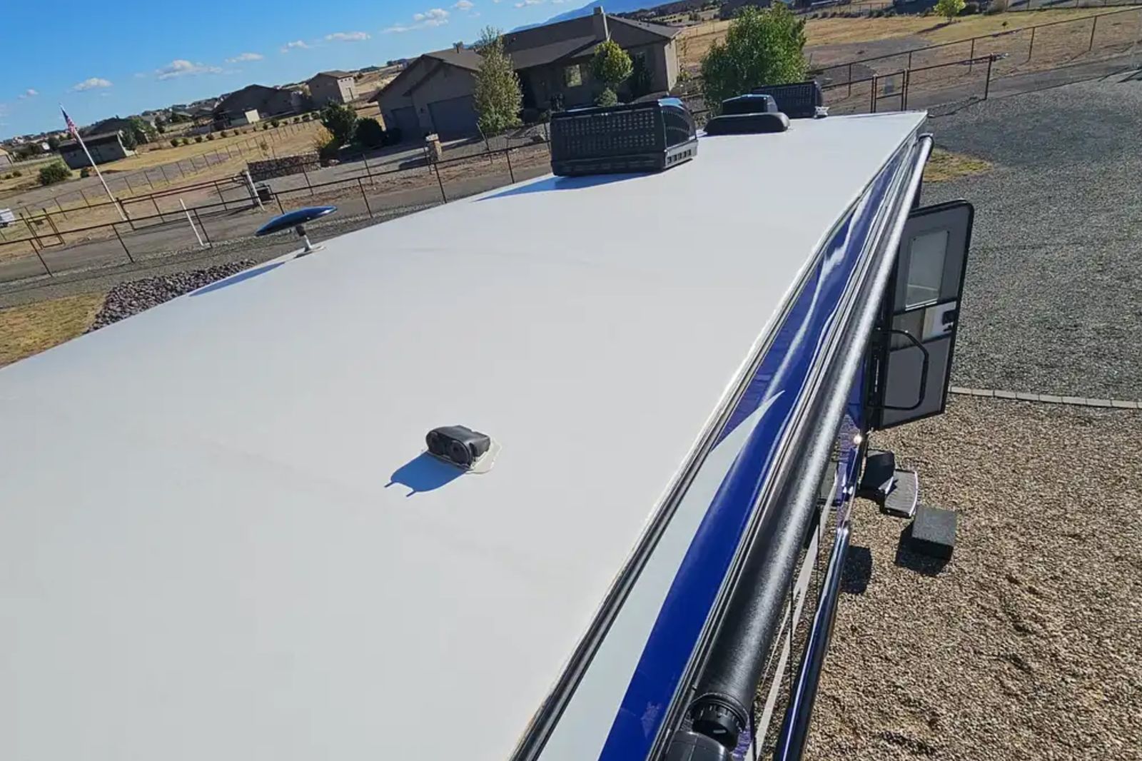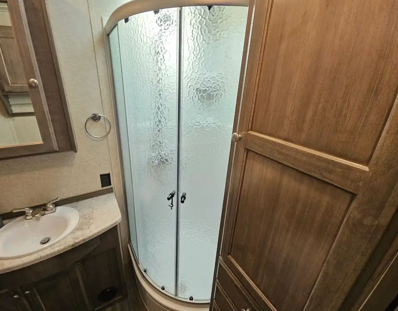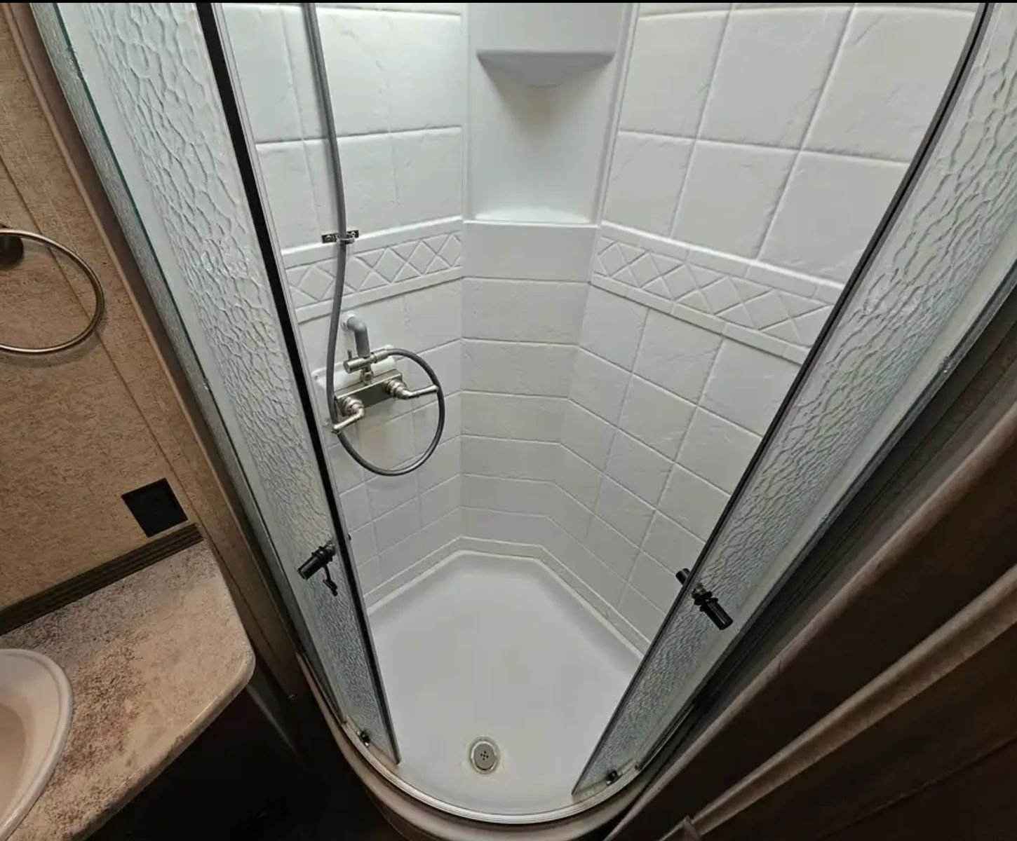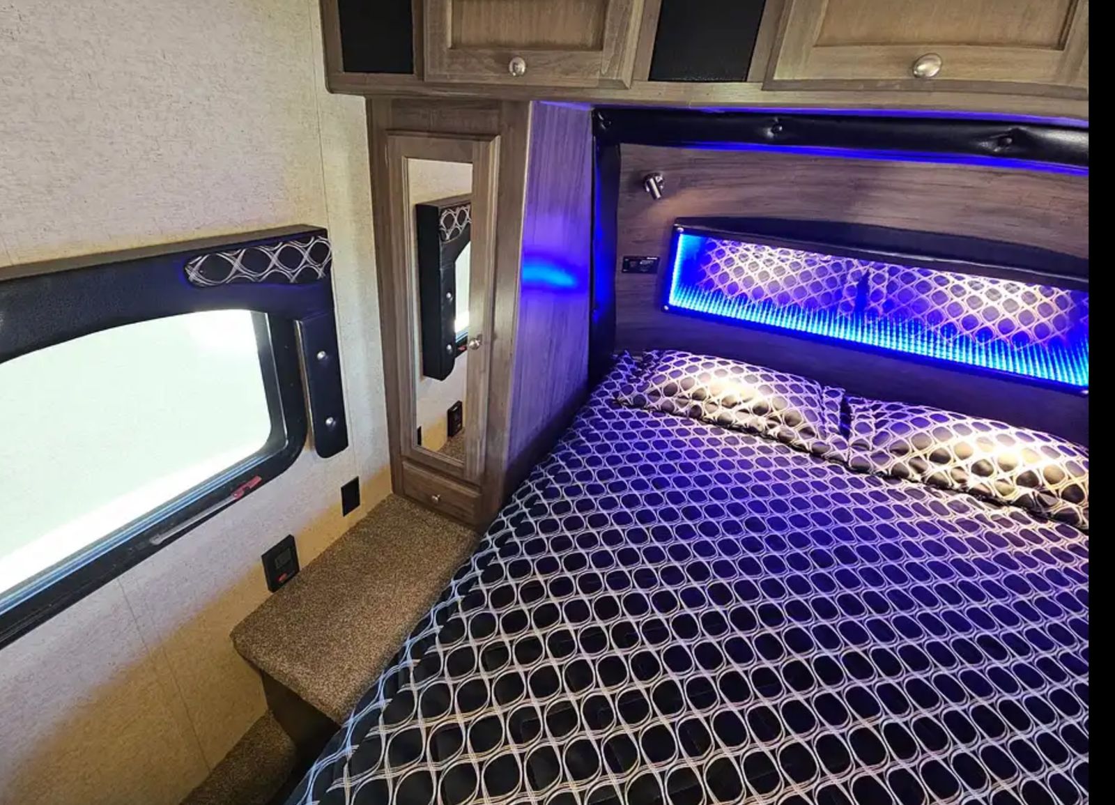 It is solar prepped, electric stabilizer jacks, 21' awning, Kicker sound system installed with amps and a subwoofer, backup camera, and electric jack.