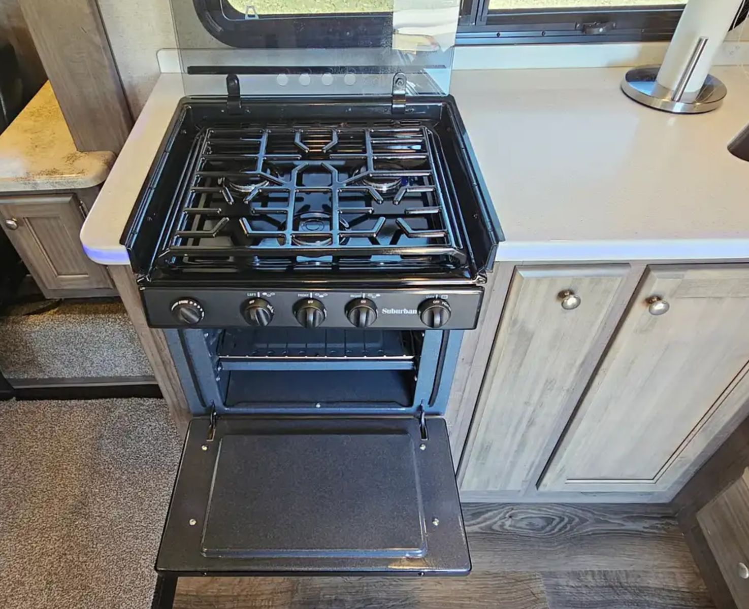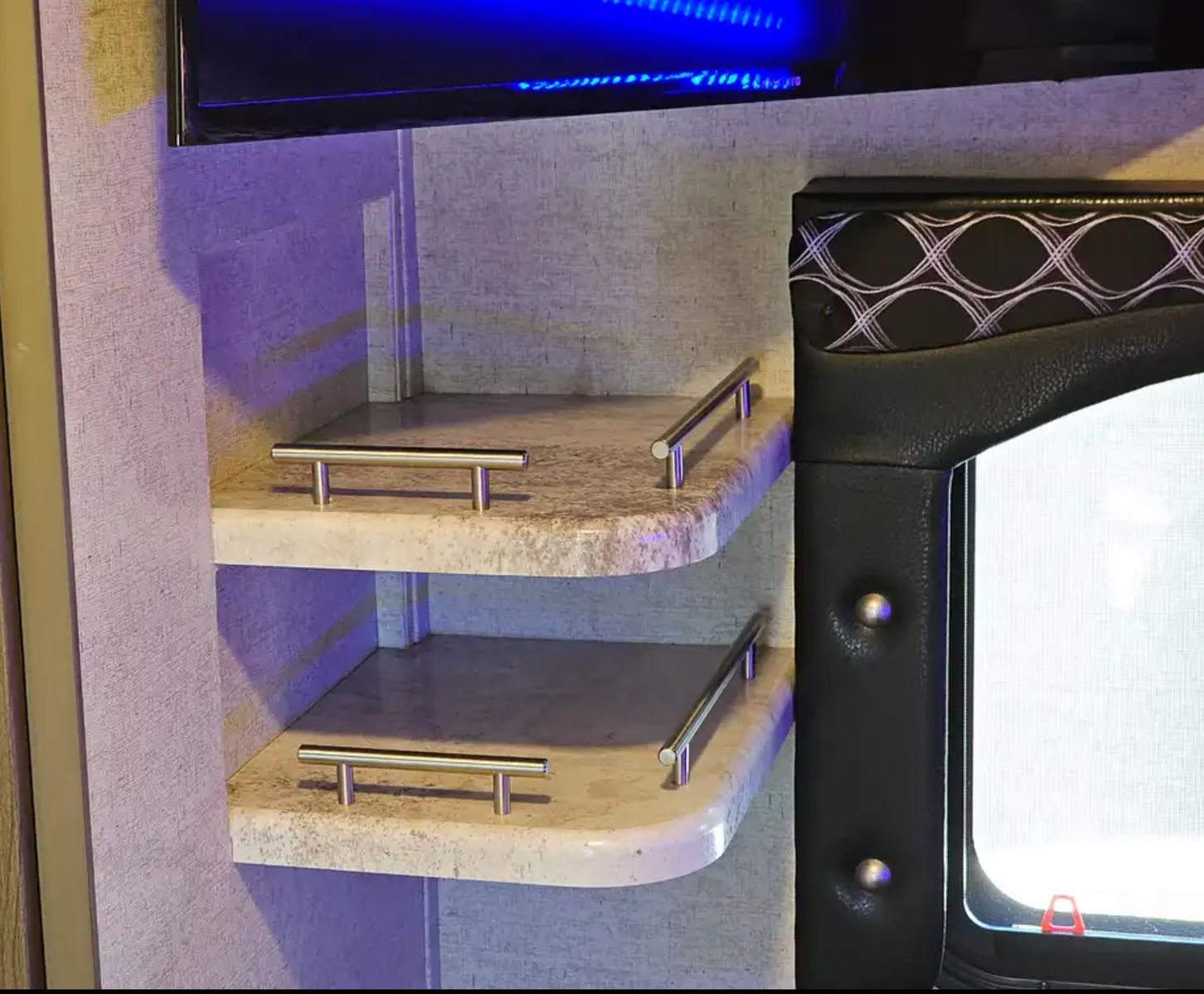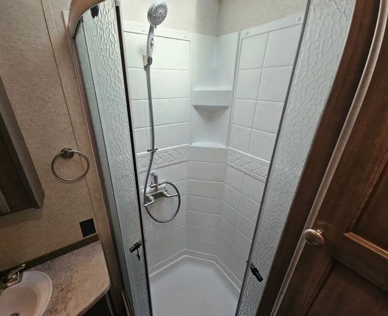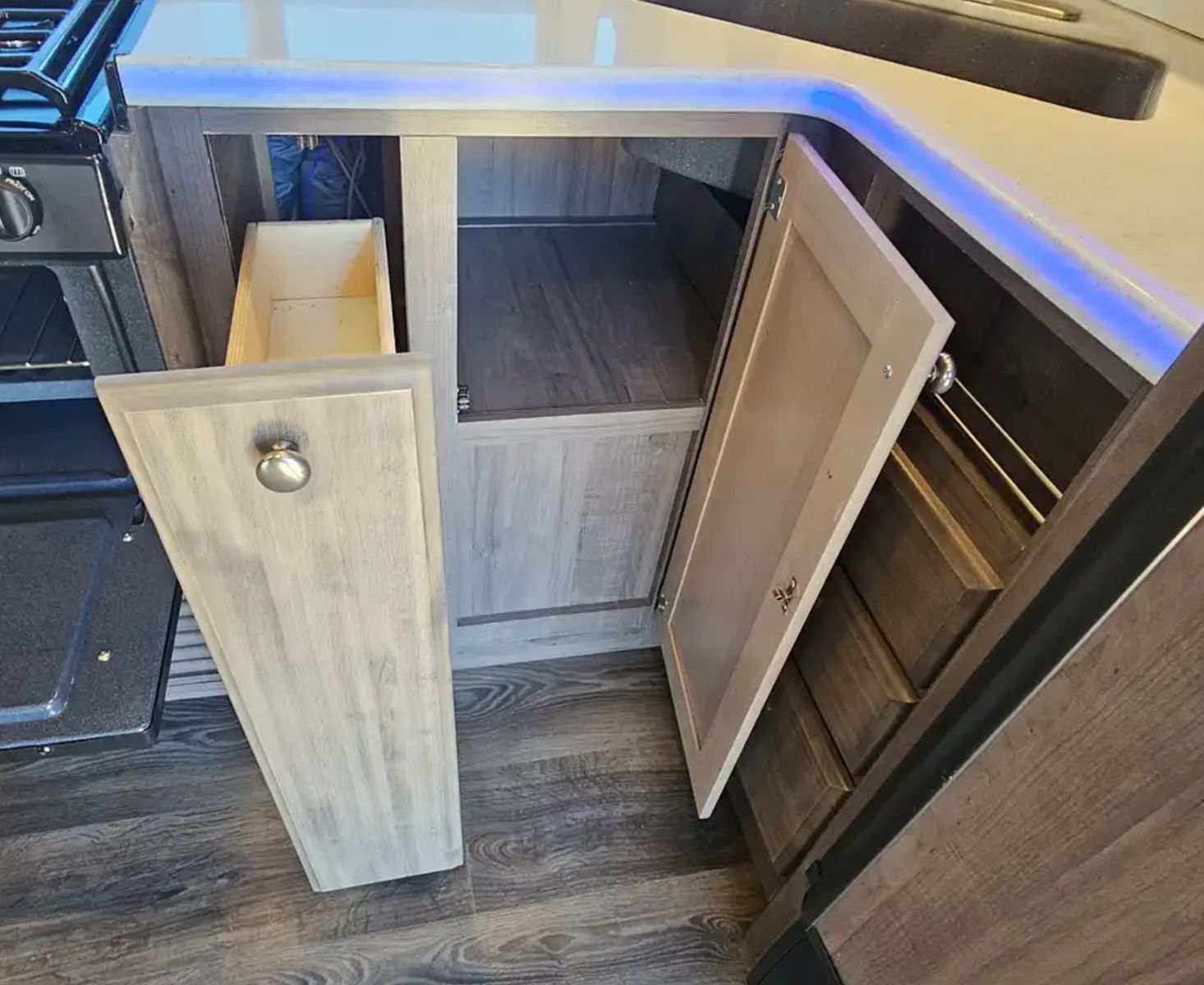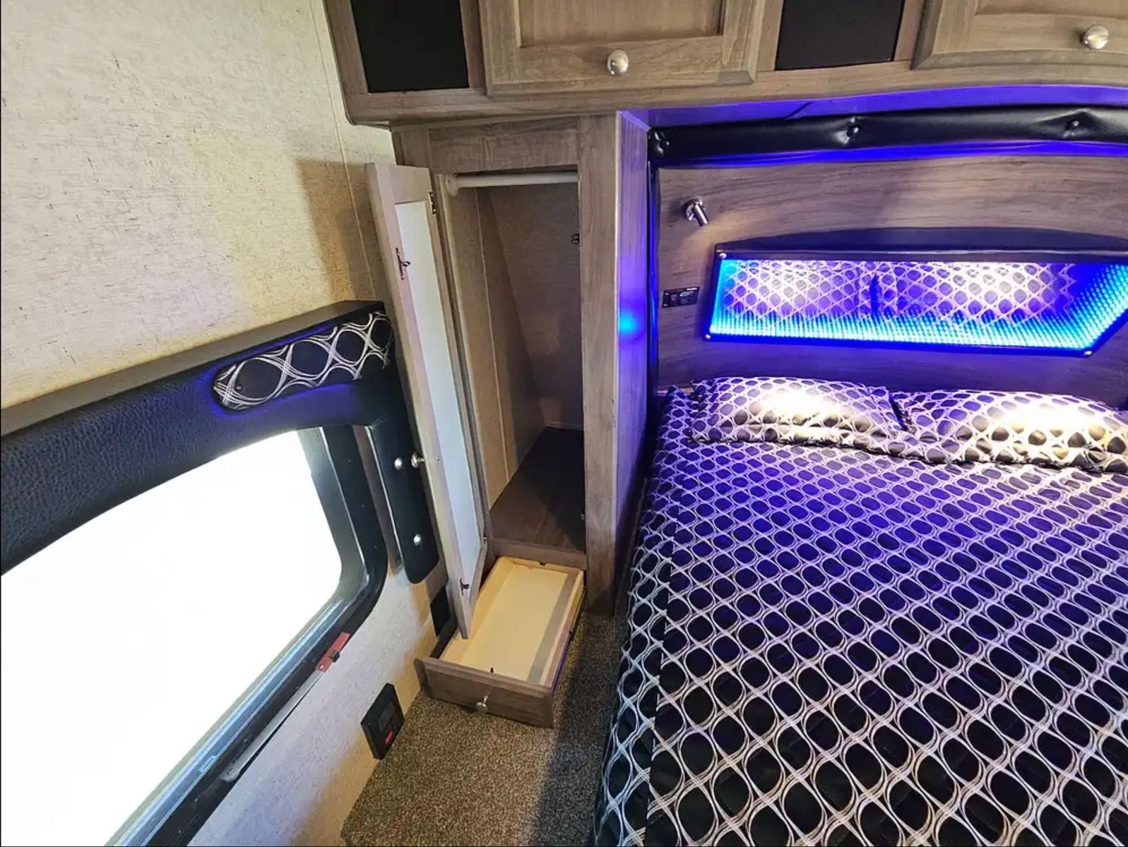 It is solar prepped, electric stabilizer jacks, 21' awning, Kicker sound system installed with amps and a subwoofer, backup camera, and electric jack.