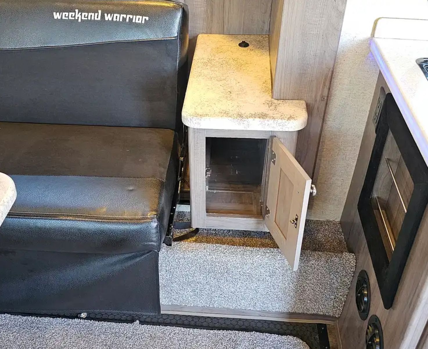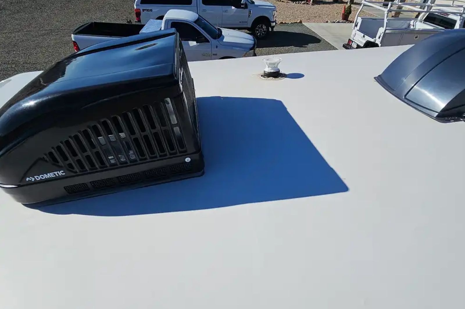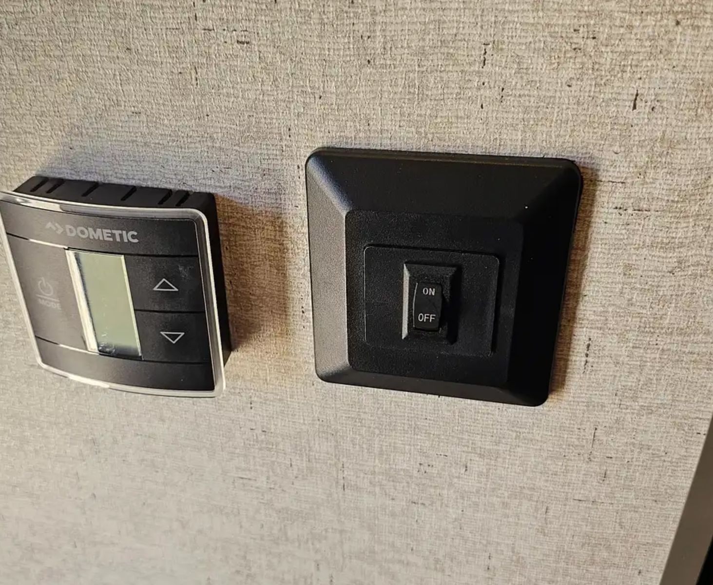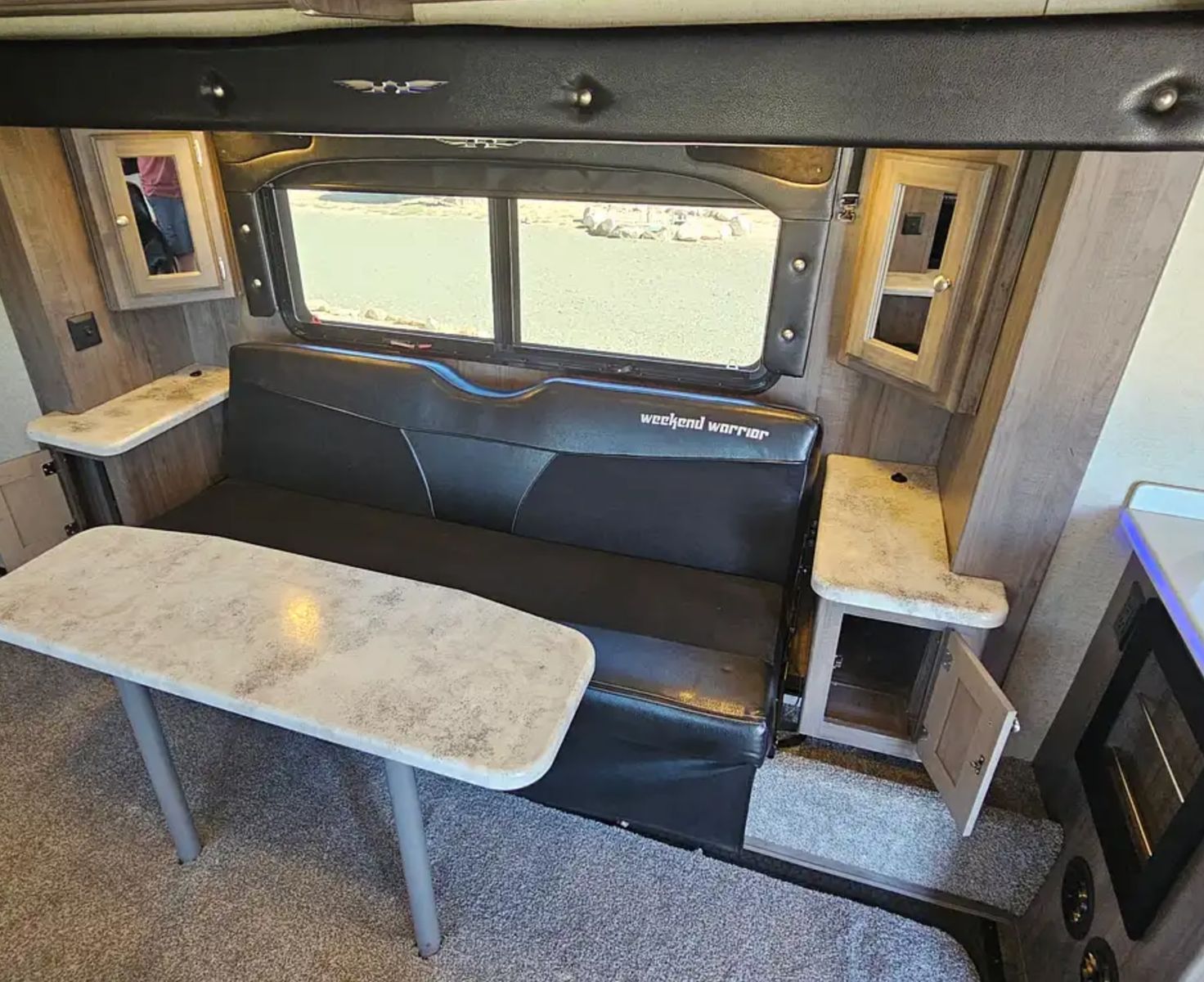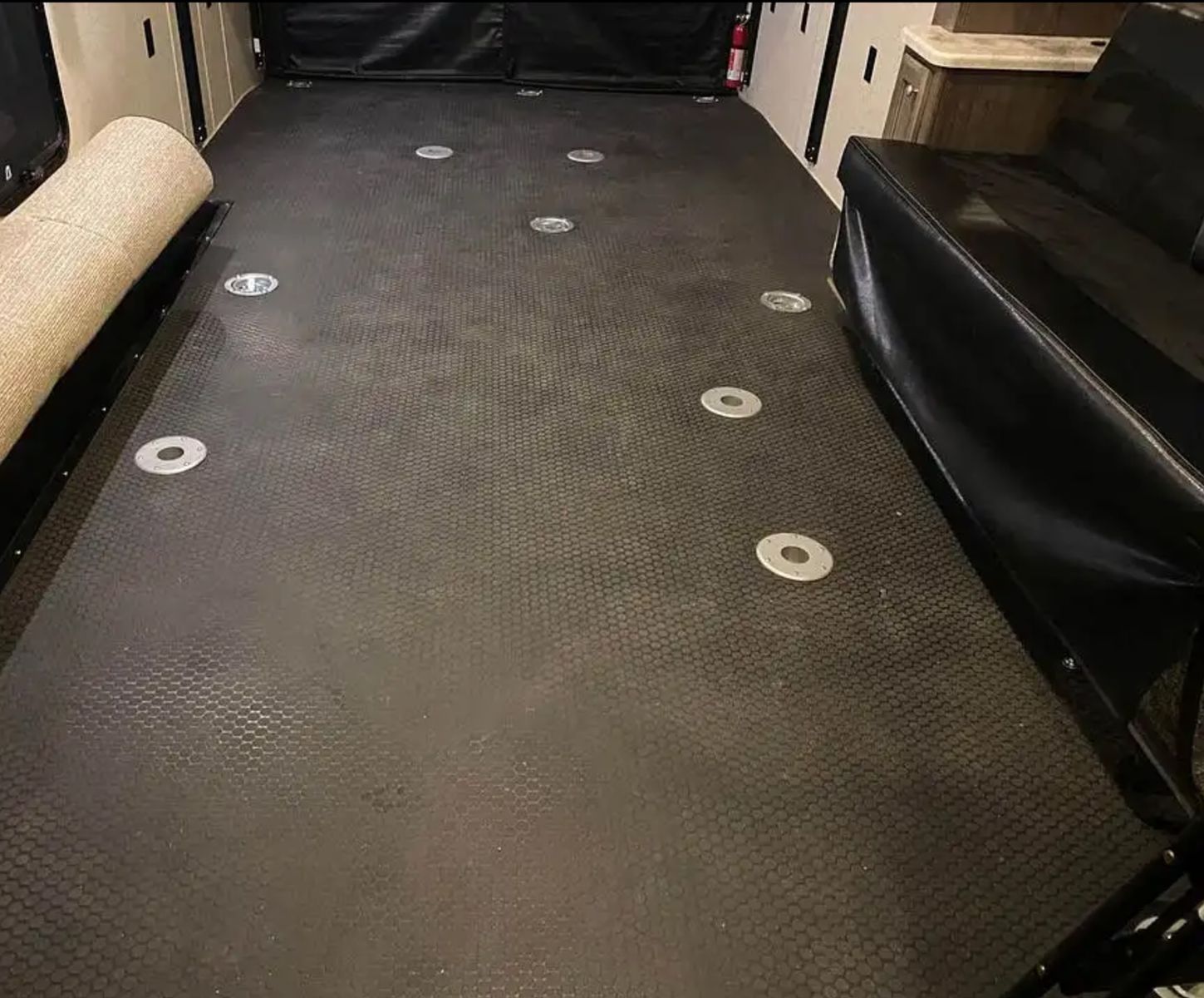With two drop down queen bunks in the rear, up to 8 people can sleep comfortably in this spacious unit, which has 17' to carry whatever toys you have. It has two AC units, central heat, and the extra insulation ensure the ideal comfort all year long.