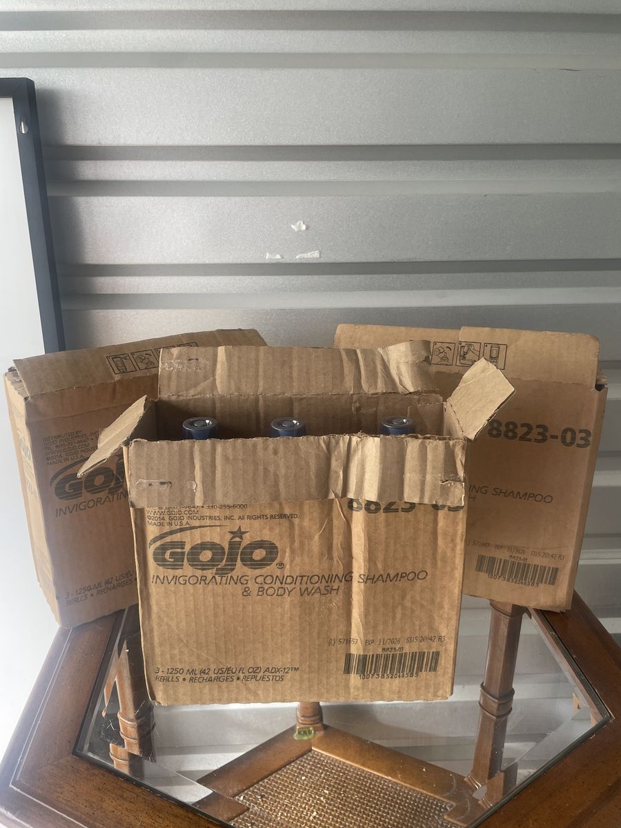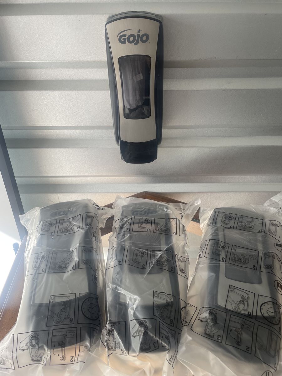 PayPal4 gojo soap dispensers, 3 cartons (9 bottles) Hand soap / body wash. Dispensers mount easily with sticky tape on back and / or screws. Hundreds of uses, additional / future refills available on Amazon. $100 takes all