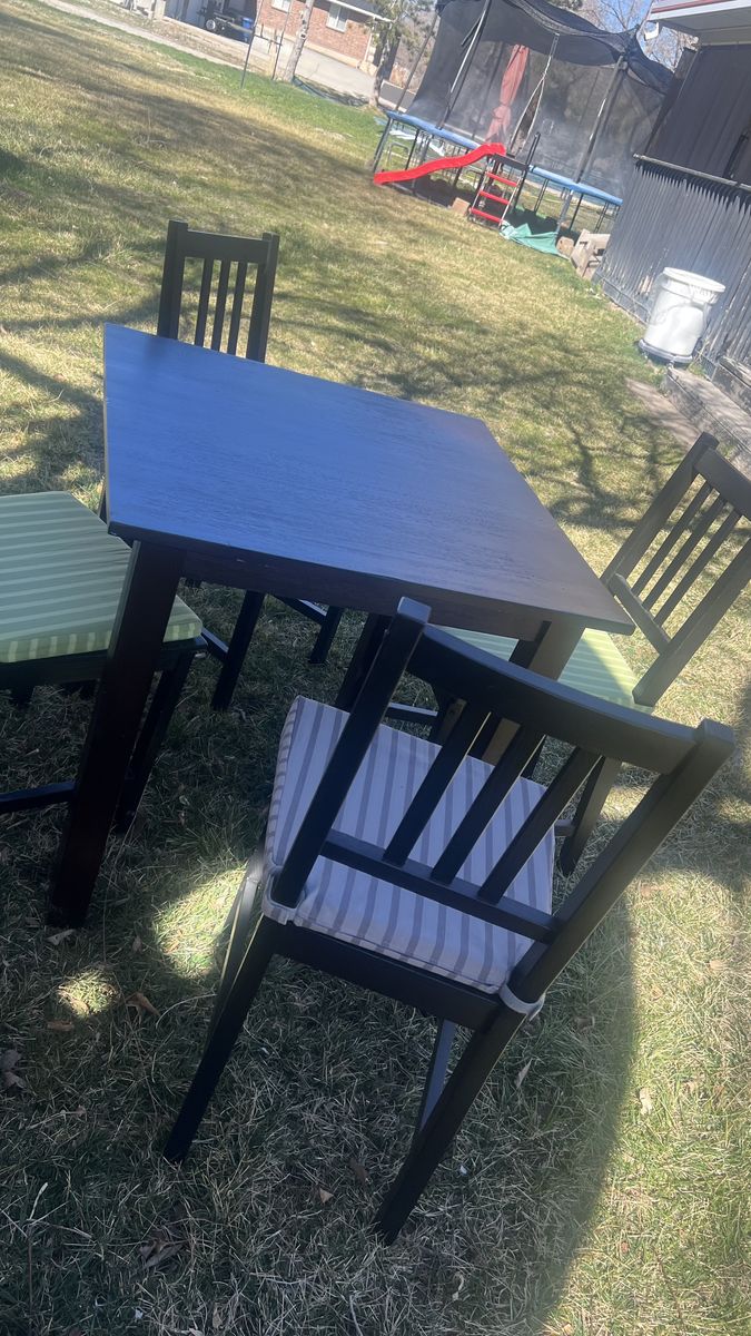Different color table and chairs