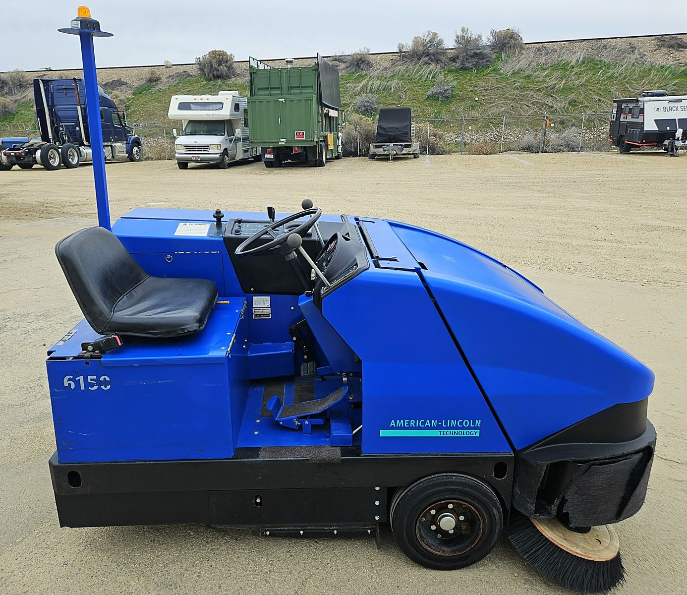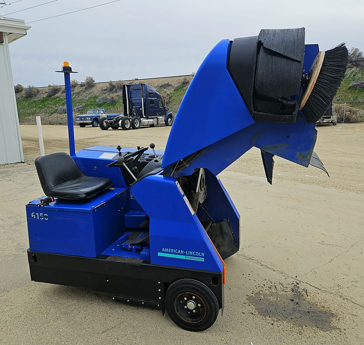 2002 American Lincoln/Alto 6150 riding lot sweeper. 50" sweep path, 16 cubic ft. high dump hopper, dust filtration shaker system, Kubota gas engine, hydrostatic drive, 705 hrs. Excellent mechanical condition and work ready. Located in Boise, Idaho. Call 208-860-8801