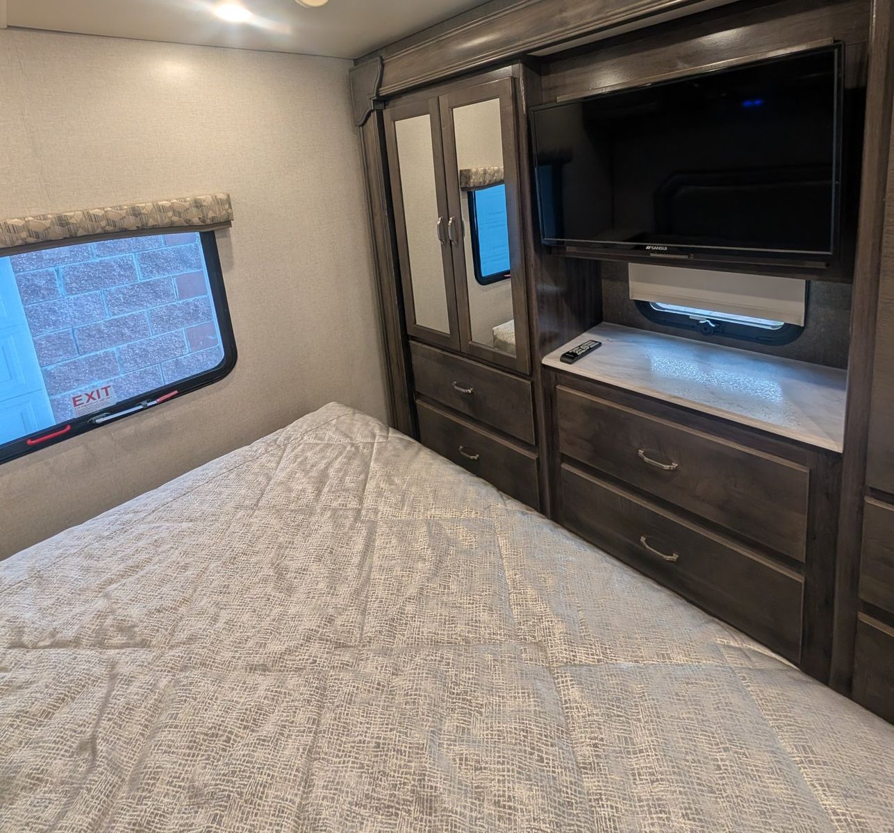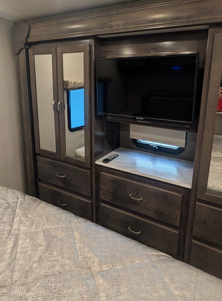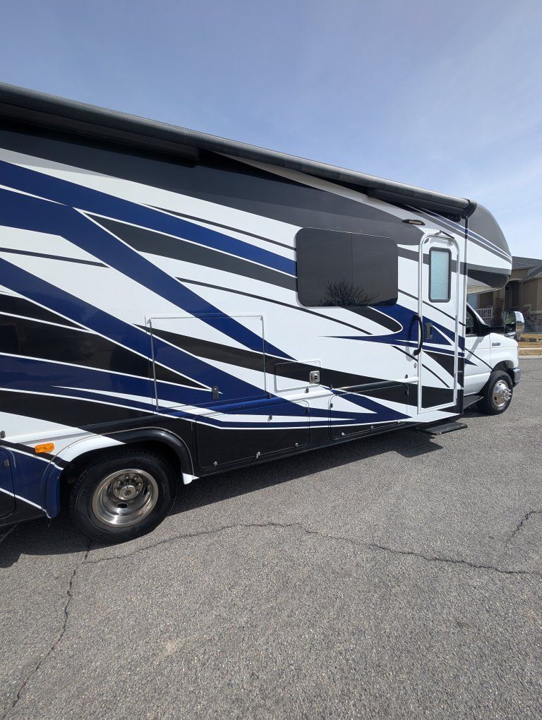 For Sale is a beautiful motorhome with just over 8,000 miles. This model has full body paint, the days and years of faded decals is over. 4000 watt solar panel system with inverter and large battery power plant. This unit has an LCI electronic leveling for one button automatic leveling. There is an outdoor TV entertainment system, main cabin TV and master bedroom tv. One of the best details is the large walk around mater bed and large shower. This motorhome has a full length slide out that dramatically transforms the interior and it also has a remote controlled shade awning. Everything is in good condition we just didn't get to use it the way we wanted due to health related concerns. This unit is ready for a new owner to enjoy.