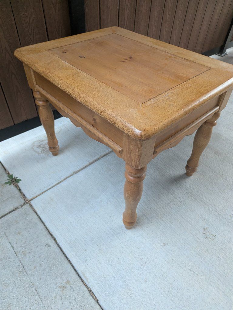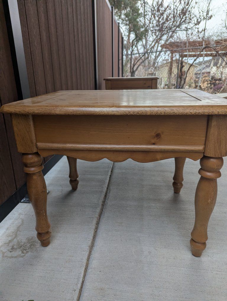 I have these two wooden end table for sale. Purchased in 1995, great condition. Solid, heavy, beautiful design.