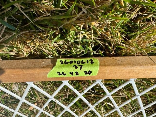 This 24-inch high wooden safety gate expands from 26 to 42 inches wide to fit various doorways or hallways. It features a classic diamond mesh design and a secure locking bar for easy installation. This lightweight gate is perfect for containing pets or toddlers and is in good used condition.