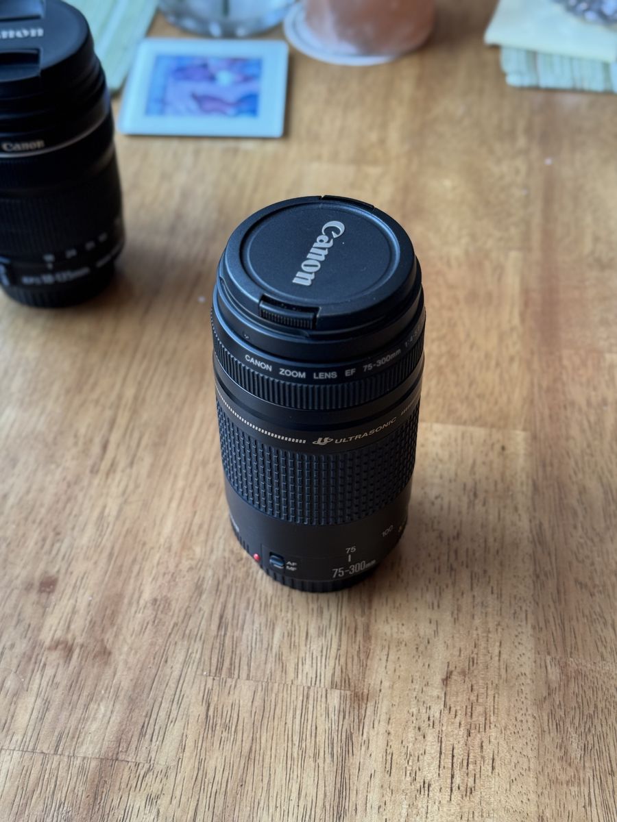 The lenses are: Canon 18-55mm Canon 18-135mm Canon 75-300mm (the only lens the 2x teleconverter works with)
