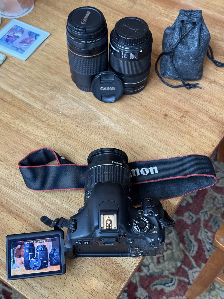 ApplePayUp for sale is my used Canon Rebel T3i with 3 lenses, a battery, charger, 2x teleconverter, fisheye adapter, and lens cleaning kit.
