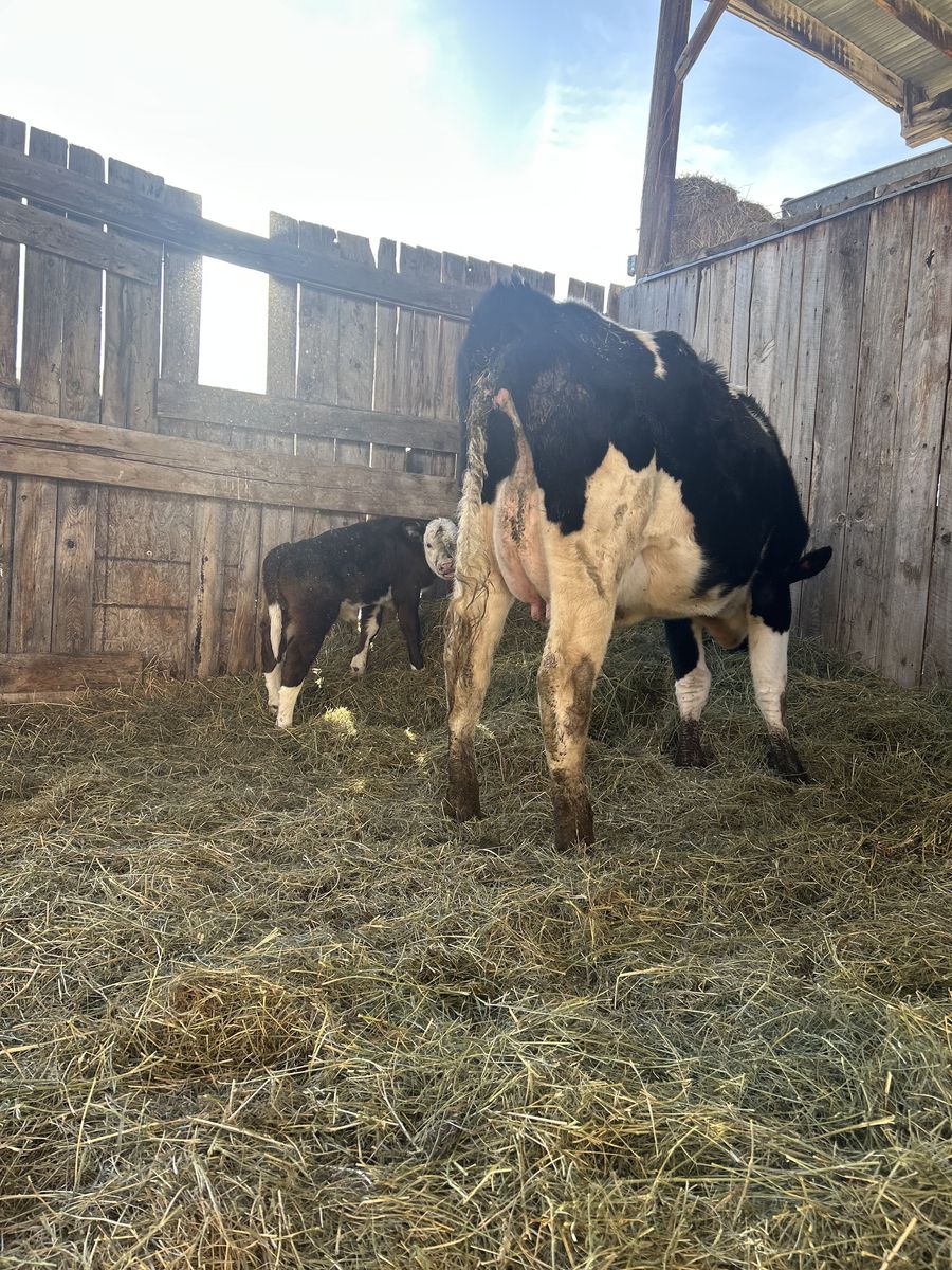 VenmoFirst calf Holstein cow with heifer calf. Calf is half Holstein half Hereford. 10 days old would make a great replacement heifer milks great and would raise big calves. Call or text cash or venmo $4000 obo