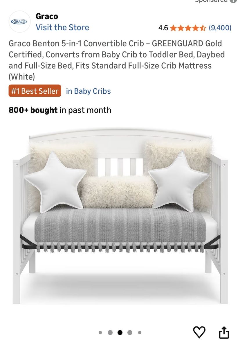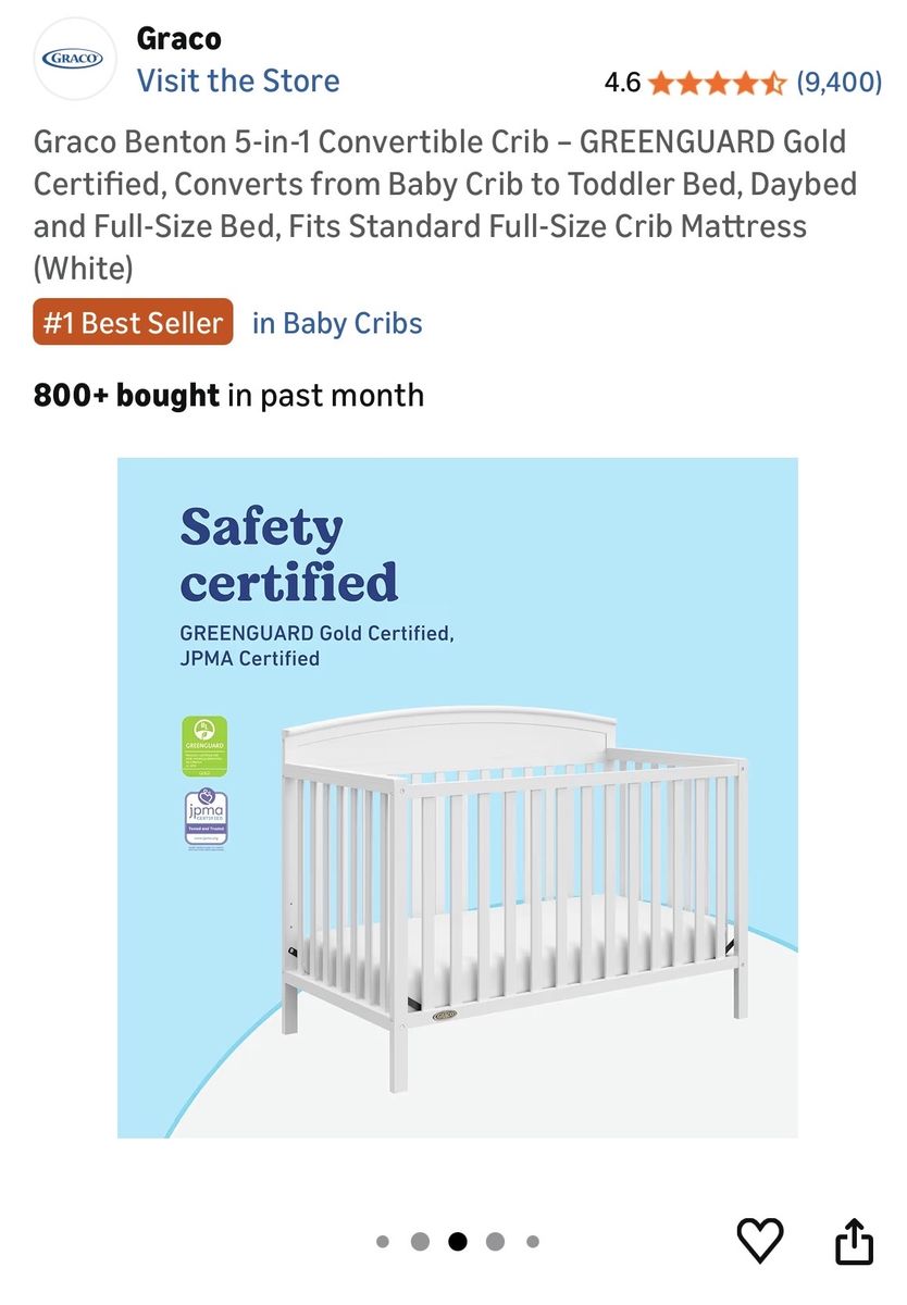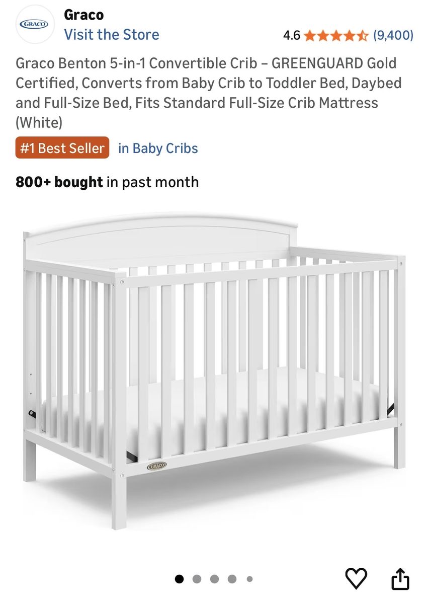 ApplePayGraco Benton Convertible Crib – GREENGUARD Gold Certified, Converts from Baby Crib to Toddler Bed, Daybed and Full-Size Bed, Fits Standard Full-Size Crib Mattress (White)
