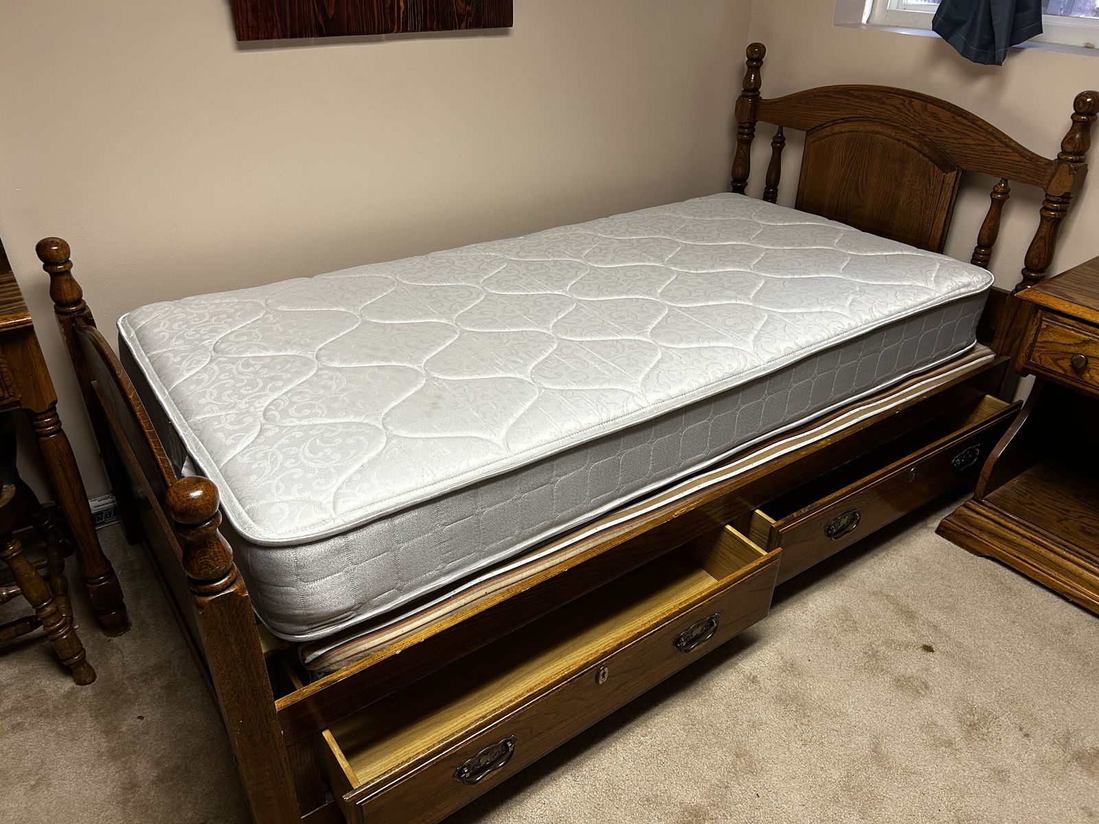 VenmoTwin bed frame with 2 drawers, nightstand, desk, hutch, chair. Also has a new mattress. Probably slept on 3 times. No stains. FREE !! take as is and haul away, no delivery.