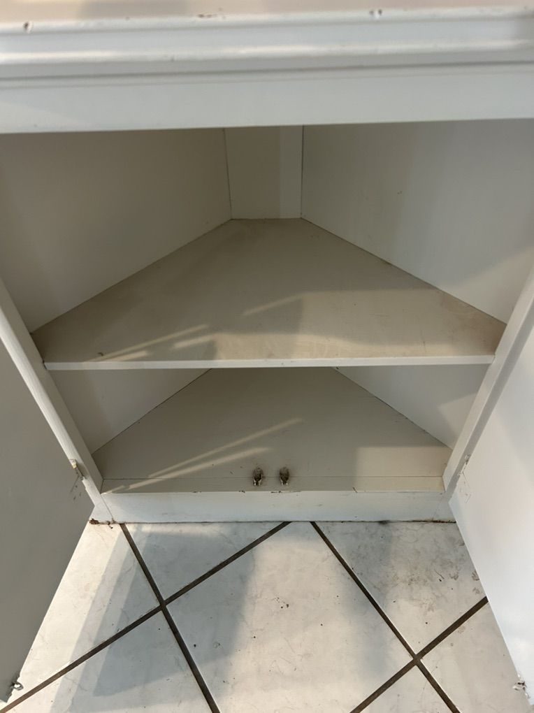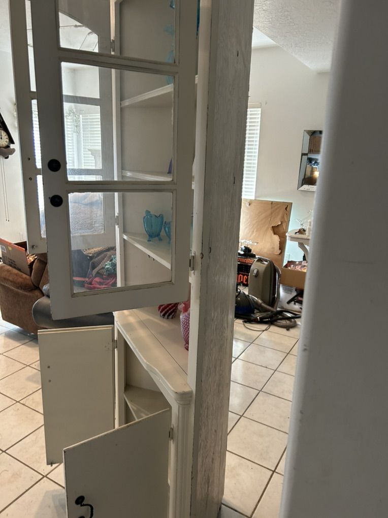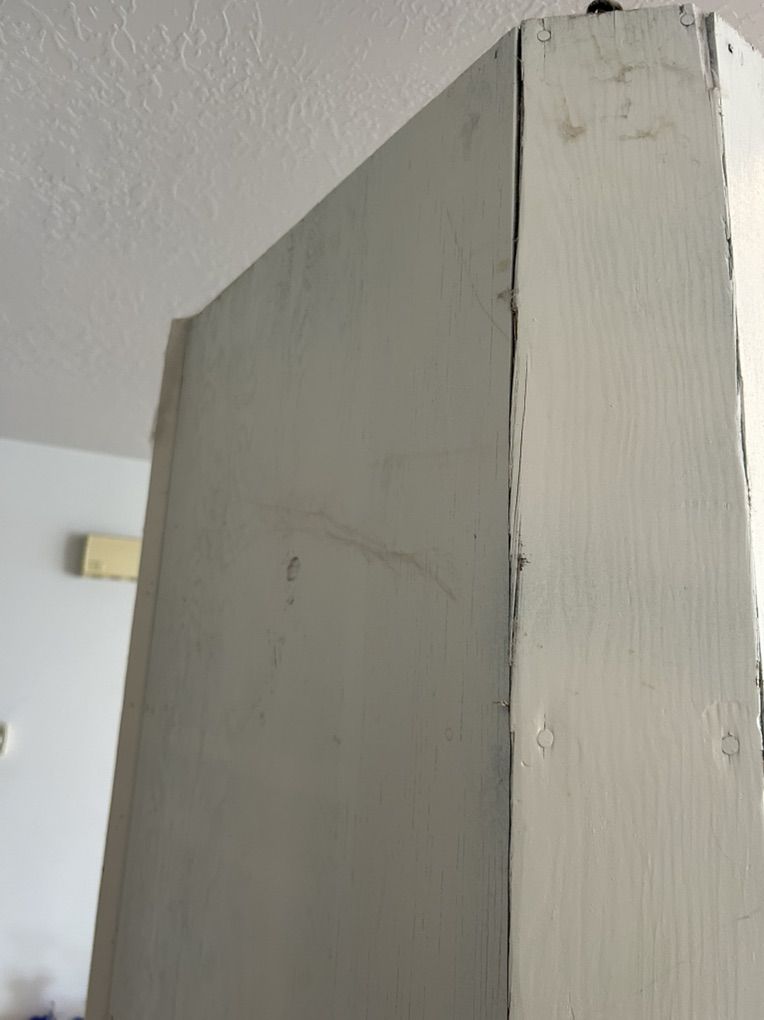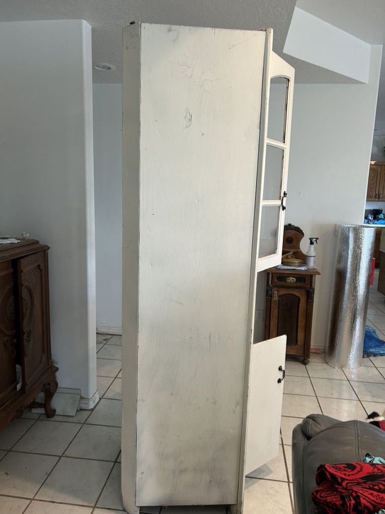 Well constructed and lots of uses I would put some really cute handles on it. Missing small glass piece on top window. Lots of usesz