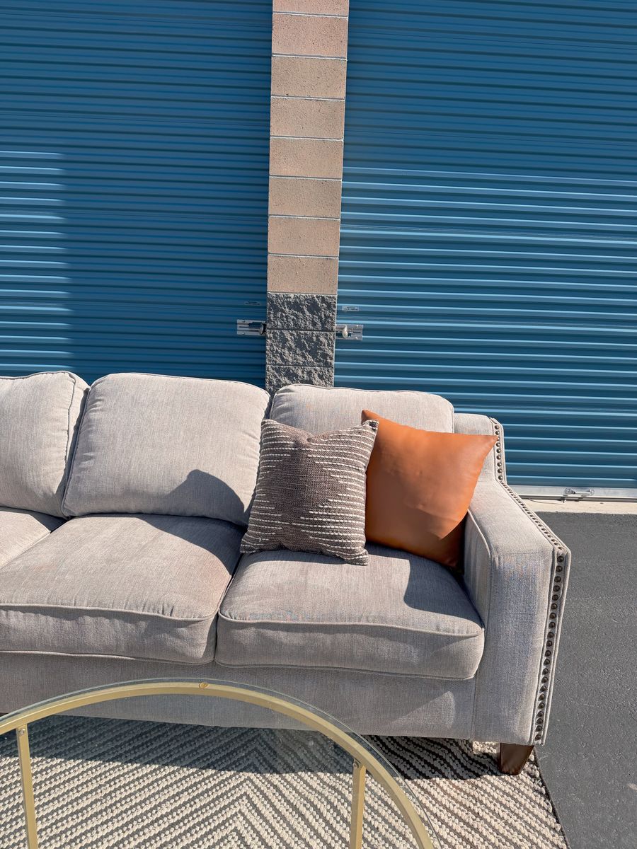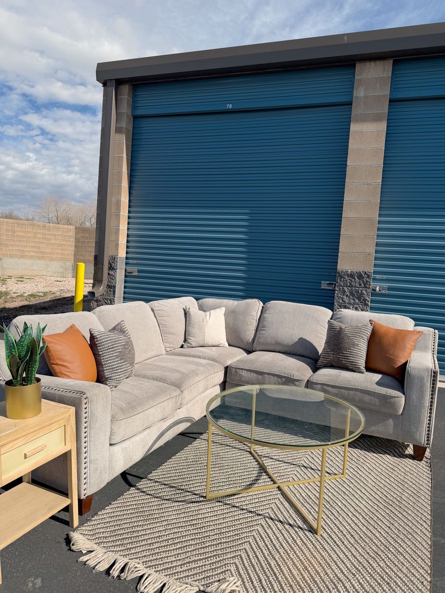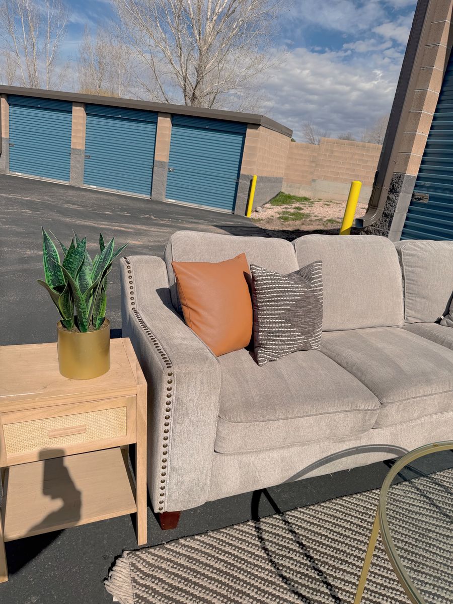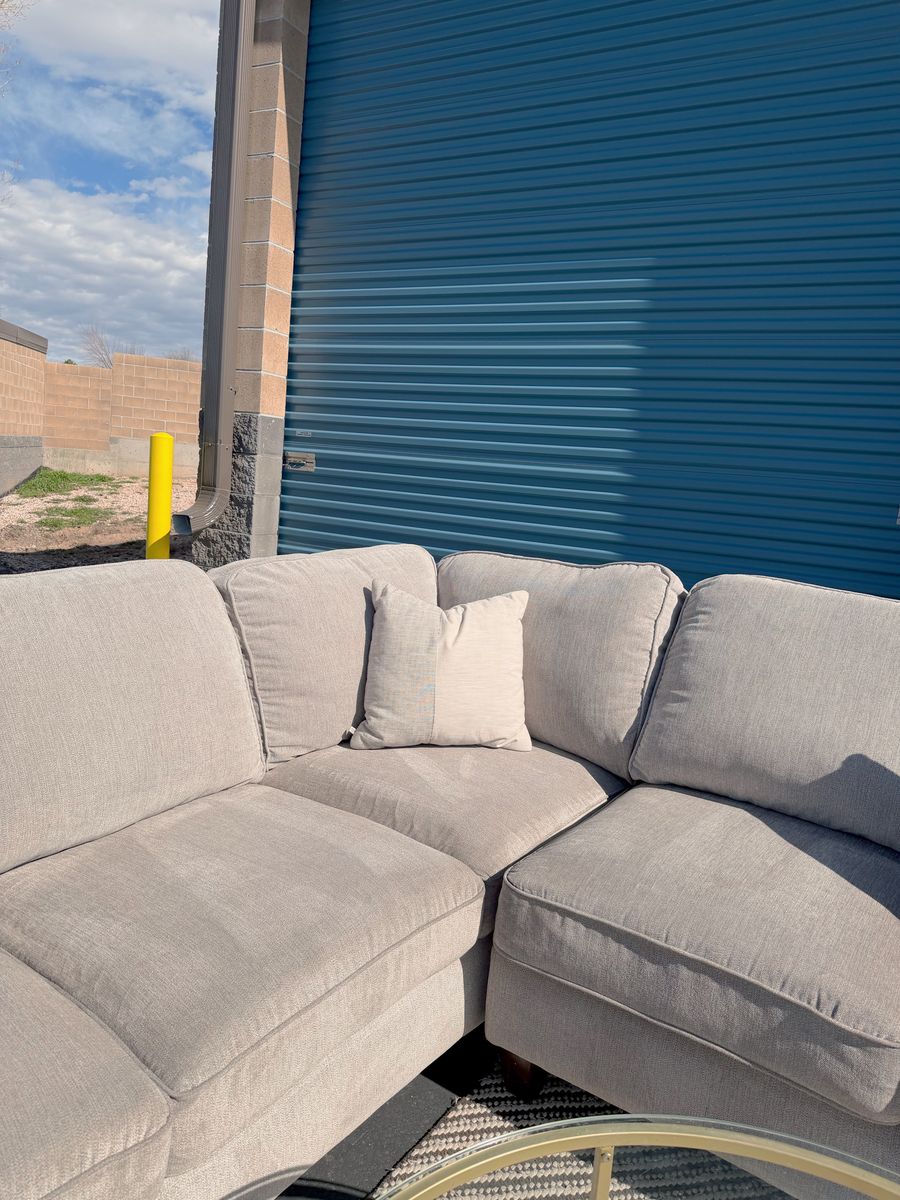 VenmoBeautiful large sectional with a modern style! This sectional breaks apart in 2 pieces. It’s very comfortable and clean but does have some light water marks which are hard to see. Comes from a smoke free home!