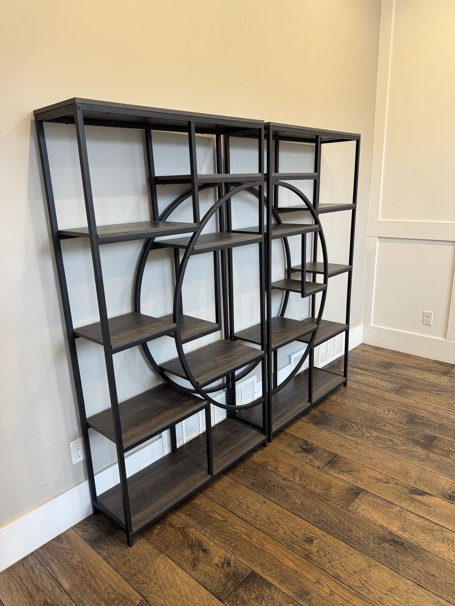 VenmoFor sale: Stunning contemporary double bookshelf/etagere featuring a bold geometric design with large interlocking circles (perfect statement piece or room divider!).