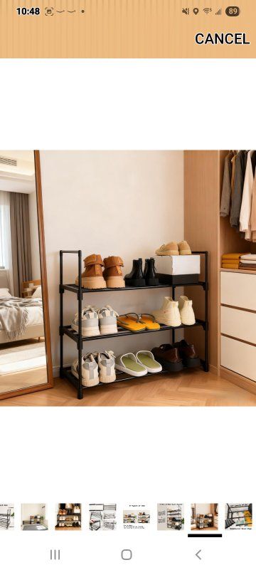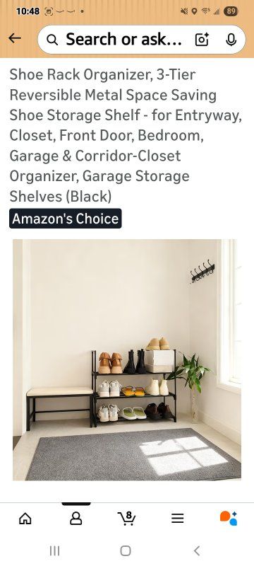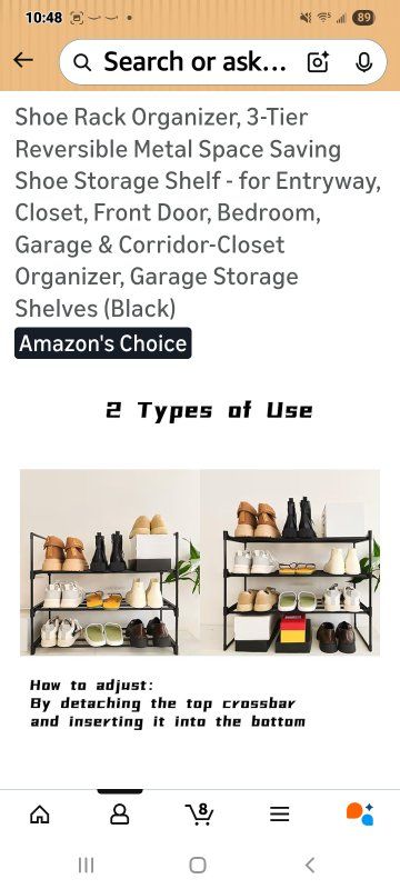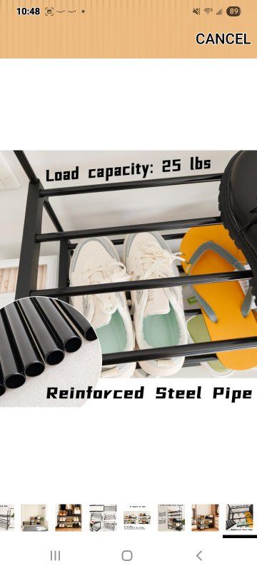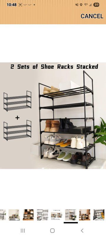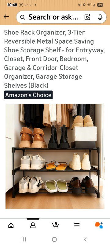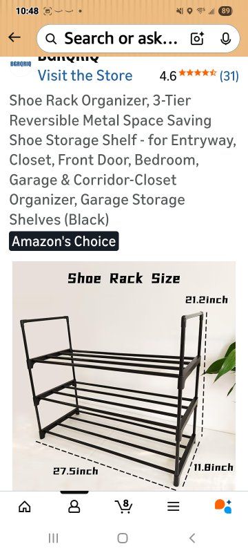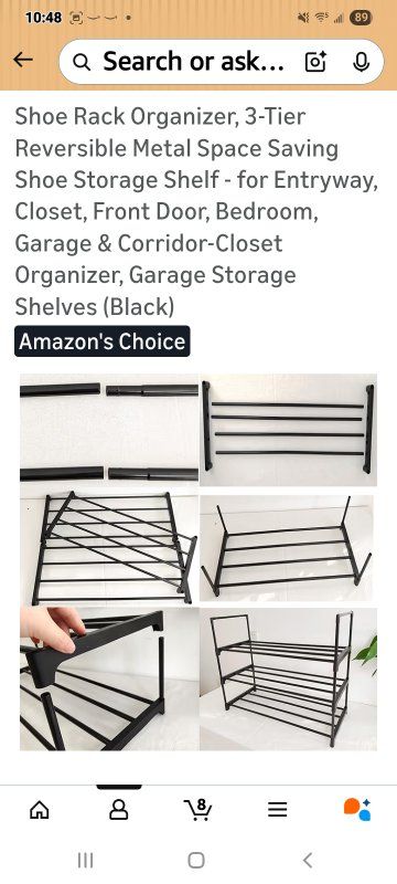 MaterialCarbon Steel Mounting TypeFloor Mount Room TypeBedroom, Cloakroom, Closet, Hallway Shelf TypeRack Shelf Number of Shelves3 Special FeatureAdjustable, Reversible, Space Saving SPACE-SAVING SHOE RACK FOR ENTRYWAY & CLOSET: This versatile shoe rack organizer holds 9-12 pairs of shoes (flats to sneakers) in only 27.5”L x 11.8”W x 21.2”H. Maximize tight spaces in entryways, bedrooms, apartments, or closets with this compact storage solution REVERSIBLE DESIGN FOR BOOTS & STACKABLE CUSTOMIZATION: Flip the top tier down to easily store tall boots on the floor level. Effortlessly combine multiple shoe racks to create a larger closet organizer system tailored to your storage needs 5-MINUTE TOOL-FREE ASSEMBLY: Snap labeled poles into connectors—no tools or screws required! Effortlessly assemble this shoe rack with intuitive step-by-step visuals. Ready for shoes in under 5 minutes! DURABLE METAL FRAME FOR GARAGE & HEAVY ITEMS: Constructed with rust-resistant steel tubes & reinforced joints, this sturdy shoe shelf supports 22 lbs per tier. Ideal for garage organization, storing heavy boots, bags, or seasonal gear with confidence SLEEK BLACK CLOSET ORGANIZER: The stylish black finish blends seamlessly into modern entryways, closets, hallways, or bedrooms. A functional and attractive organizer that keeps your space tidy and your shoes easily accessible
