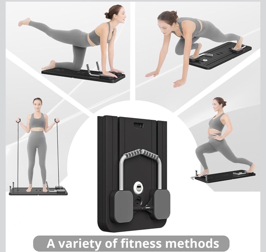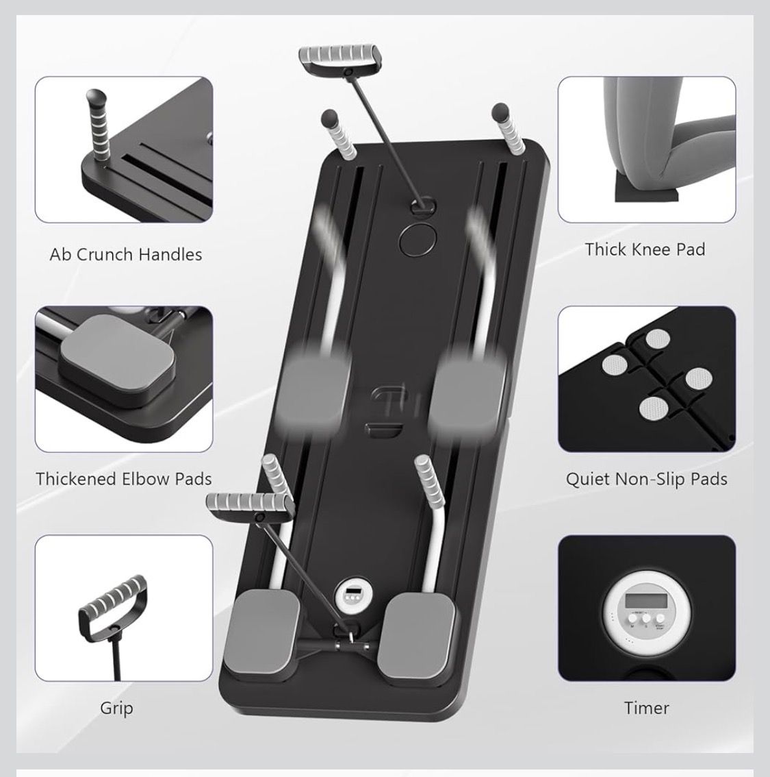 ApplePayNew in box. Versatile workout board. Great for full body strength training, core workouts, and sculpting abs. Has ab crunch handles, thickened elbow pads, thick knee pad, and quiet non-slip pads. Built-in timer. Use for planks, push-ups, and resistance band exercises. Black and gray. See Less
