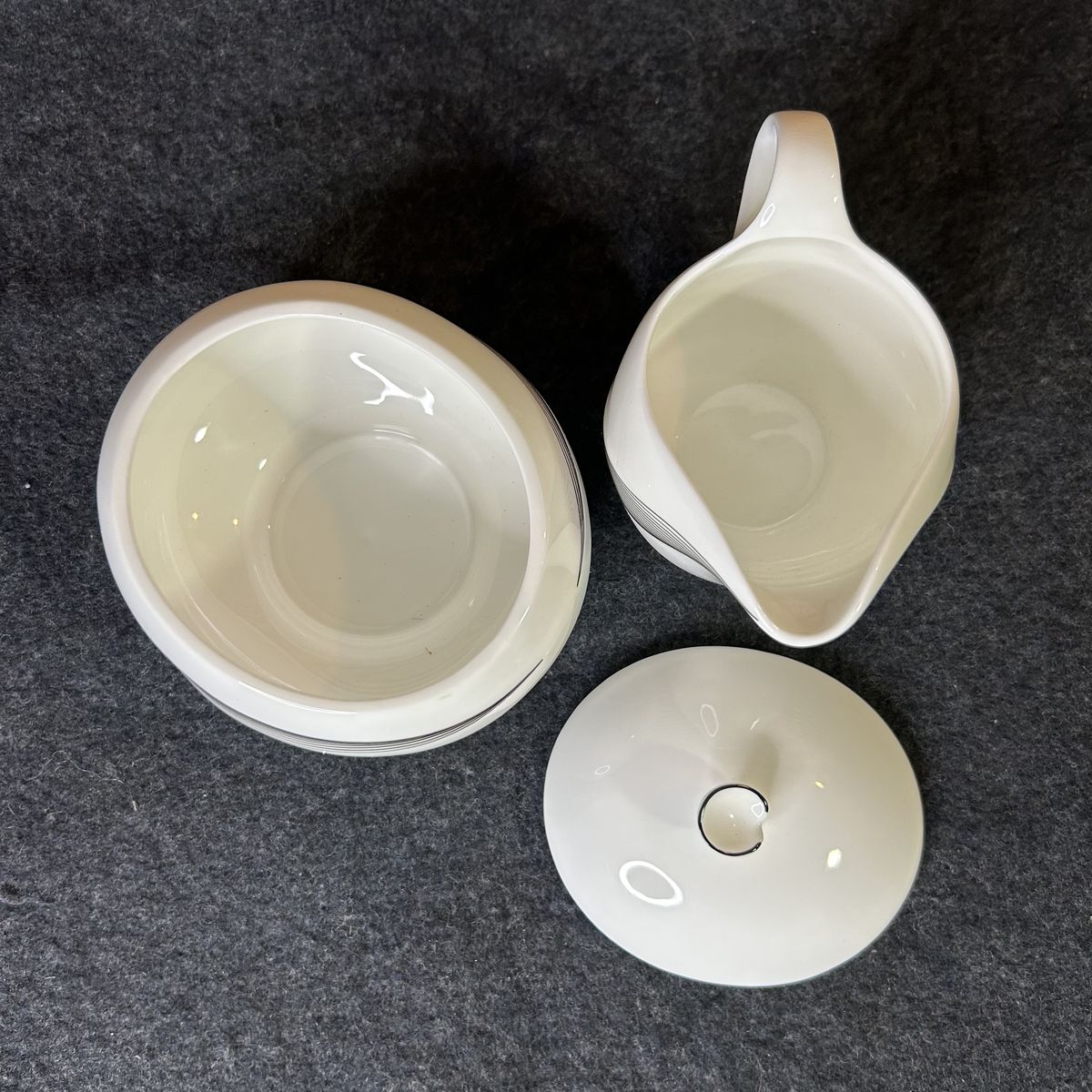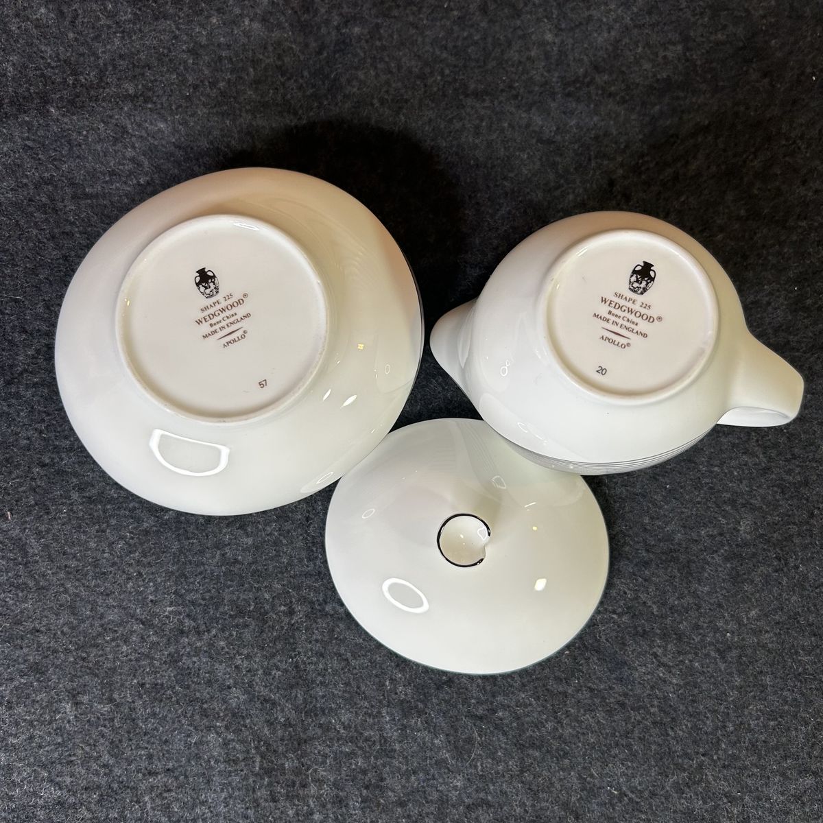 NEW, Never-used Mint Condition Wedgwood Apollo Creamer & Sugar bowl w/Lid Three-piece matched set in elegant Bone China made by the Distinguished Wedgwood company in the United Kingdom from 1985 to 1992.