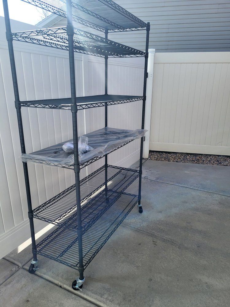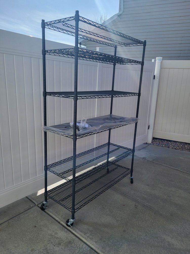 6 Tier Metal Rolling Shelving Rack Gray* Locking Caster Wheels 72"H 48"W 18"D Brand New & Assembled