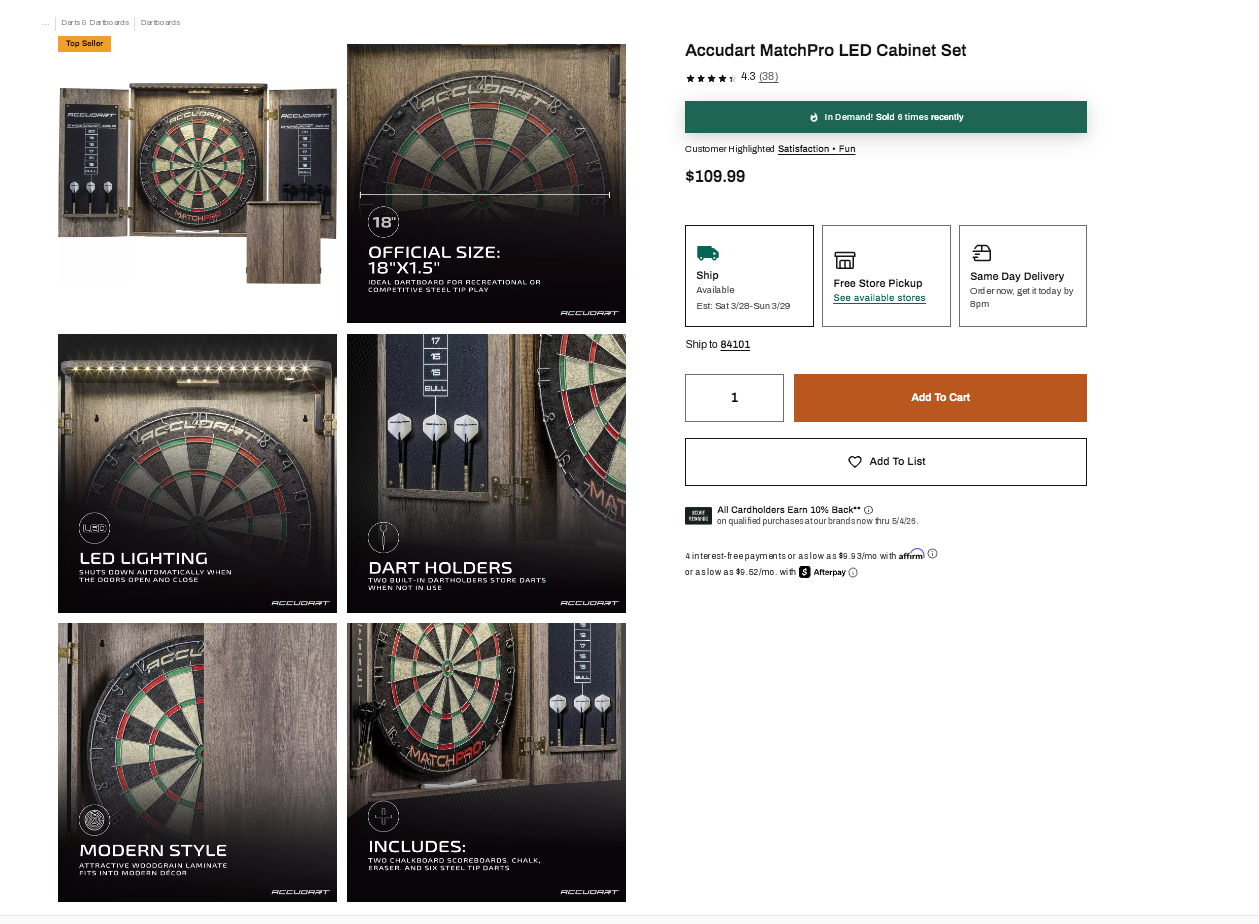 Brand new Dart Board! Never been used. Perfect condition. Perfect for game room or garage. Selling at Dicks Sporting Goods for $109.99.