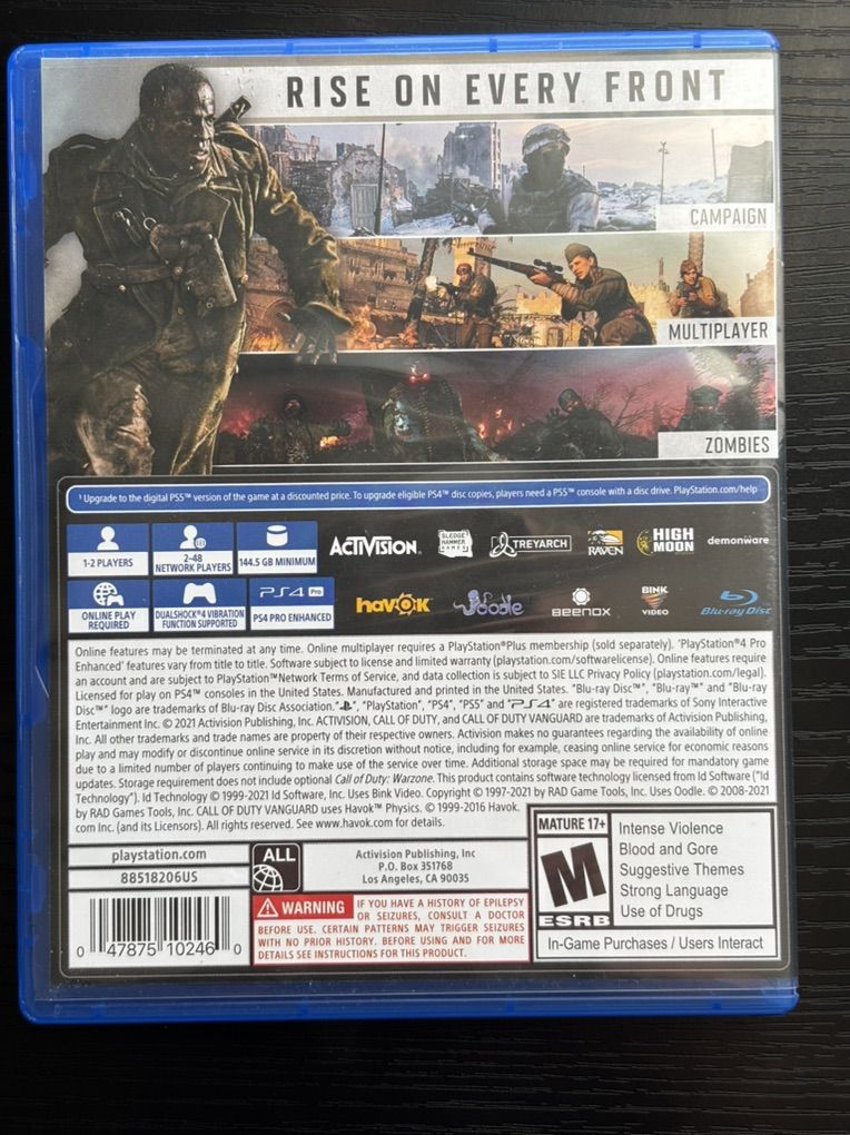 VenmoCall Of Duty Vanguard disk. Works for both ps4 and ps5 consoles. Works perfectly, no visible scratches on disc.