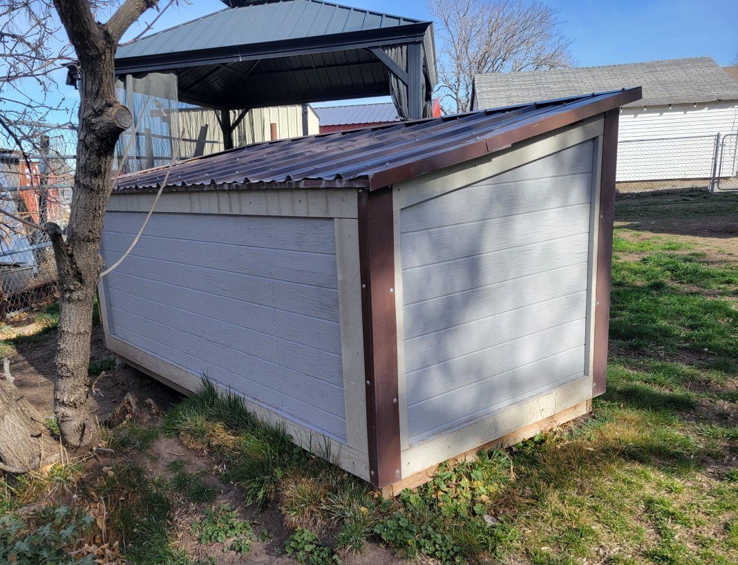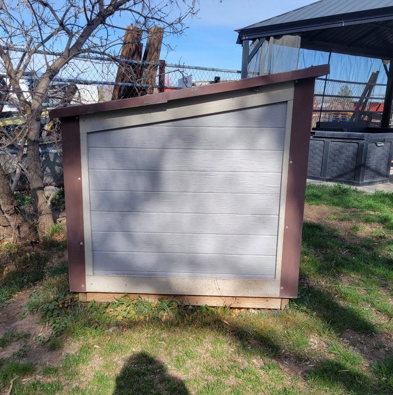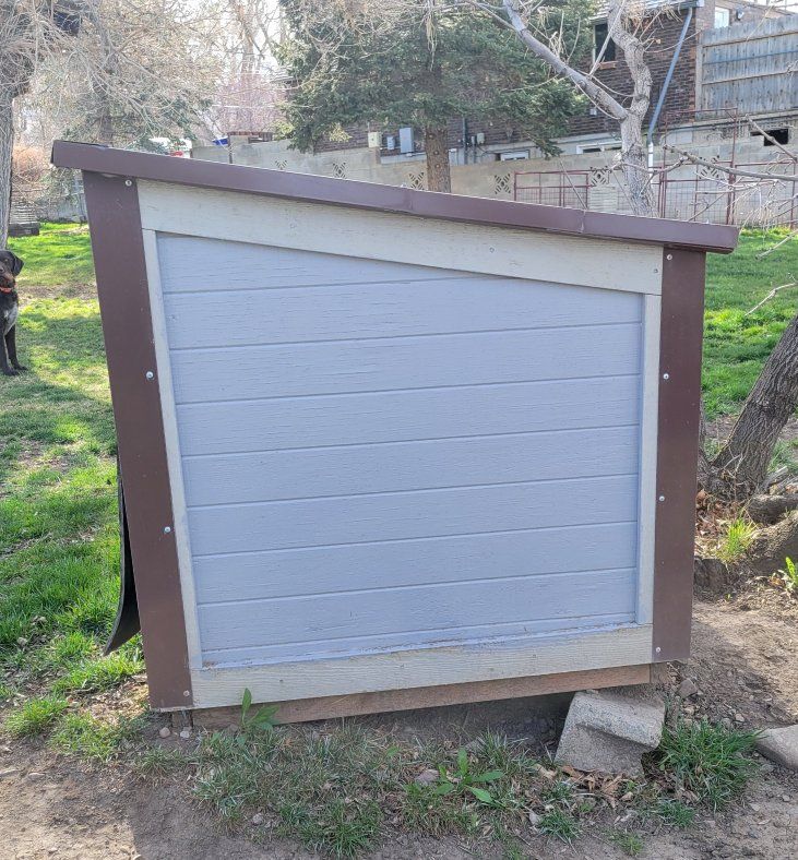 4 foot x 8 foot insulated doghouse with metal roof. double doors. Wide open on inside. make an offer