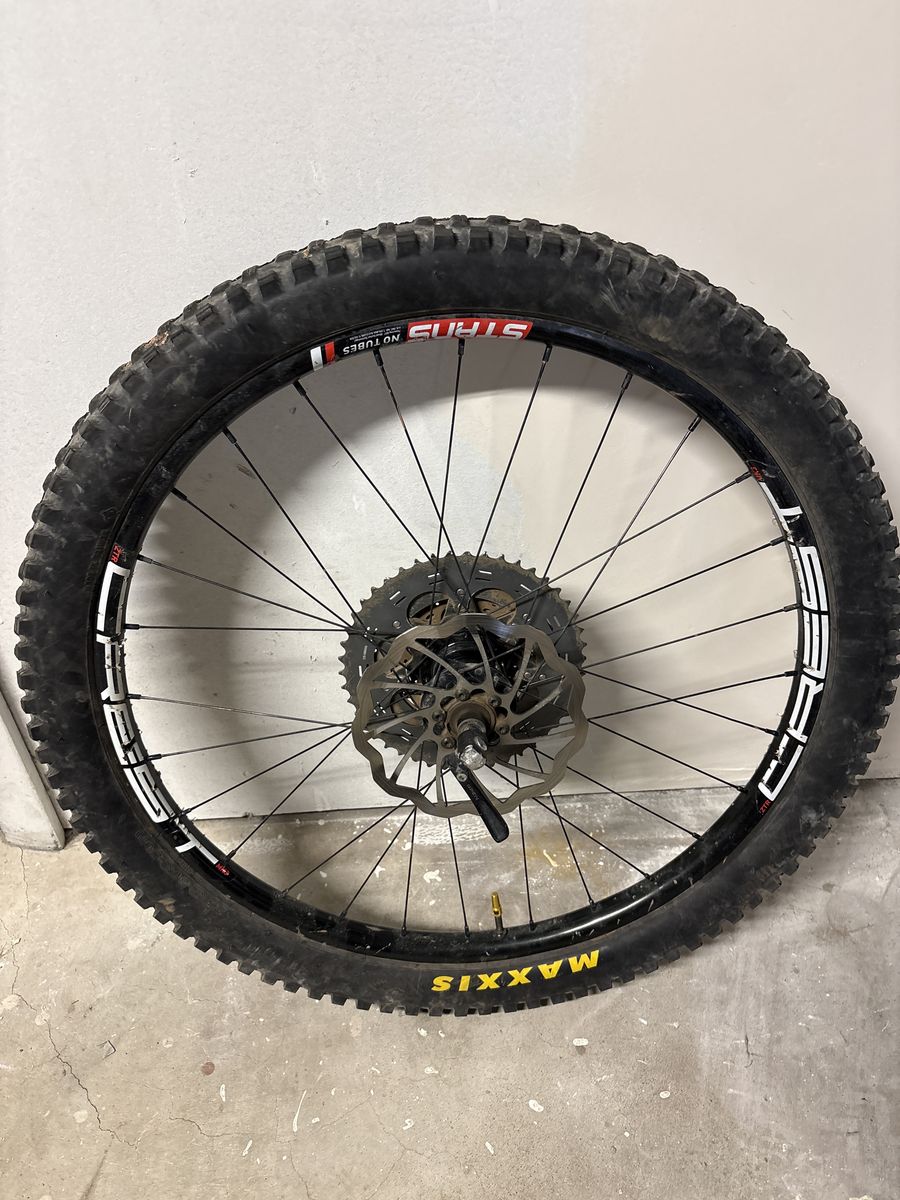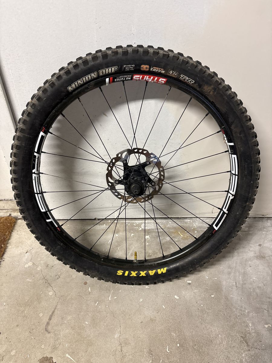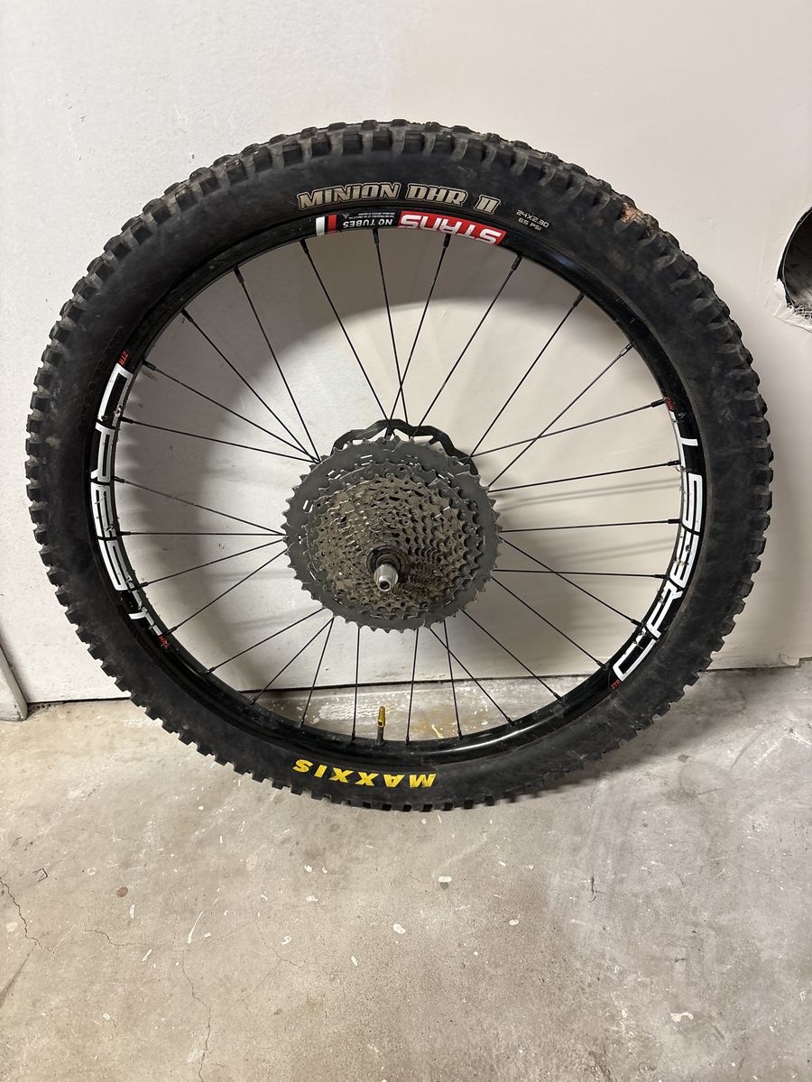 VenmoWheelset off our son’s transition ripcord. Includes Maxxis Minion DHF and DHR II mounted tubeless. These are 28 hole on Origin8 hubs. Includes sram 11 speed cassette and brake rotors.