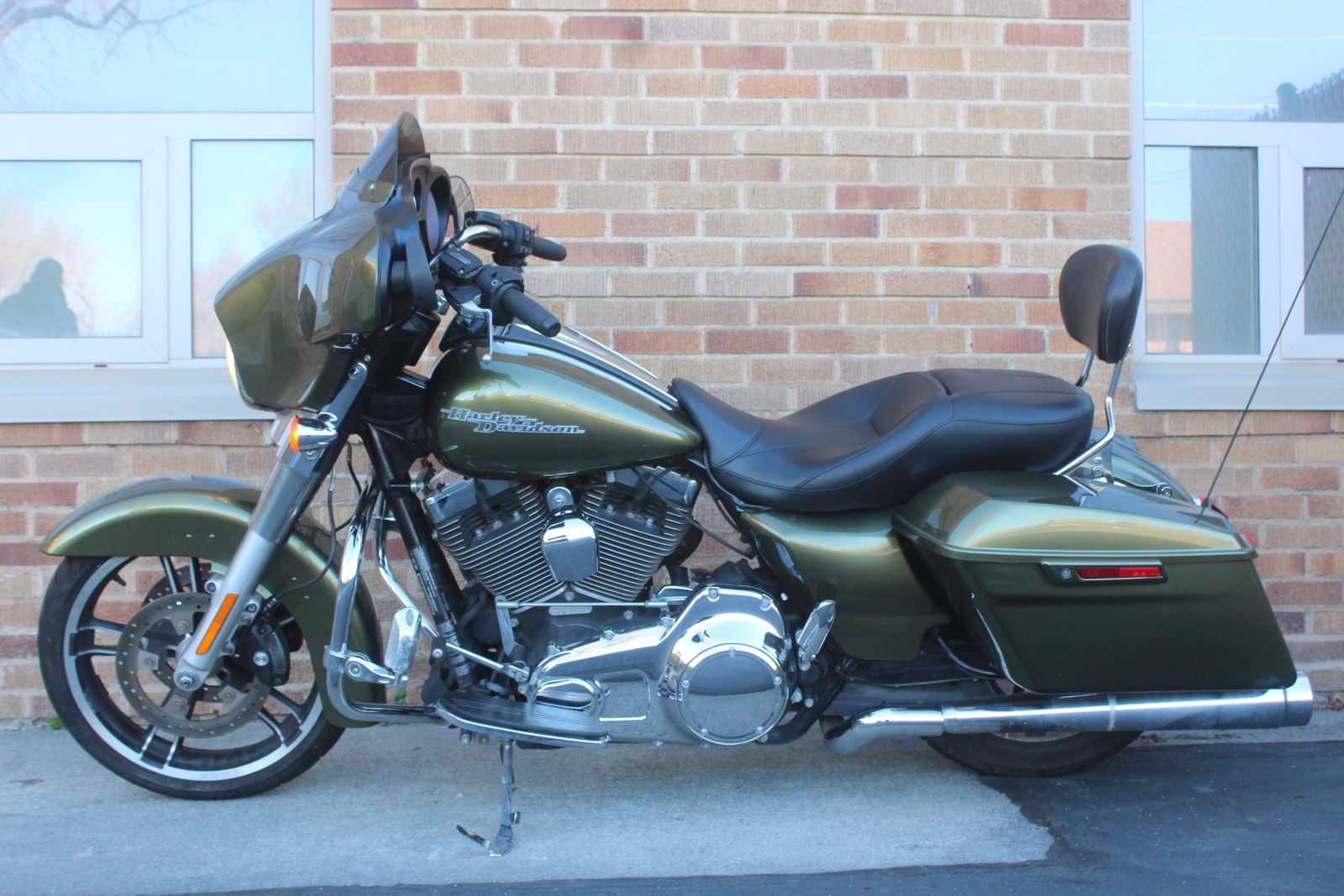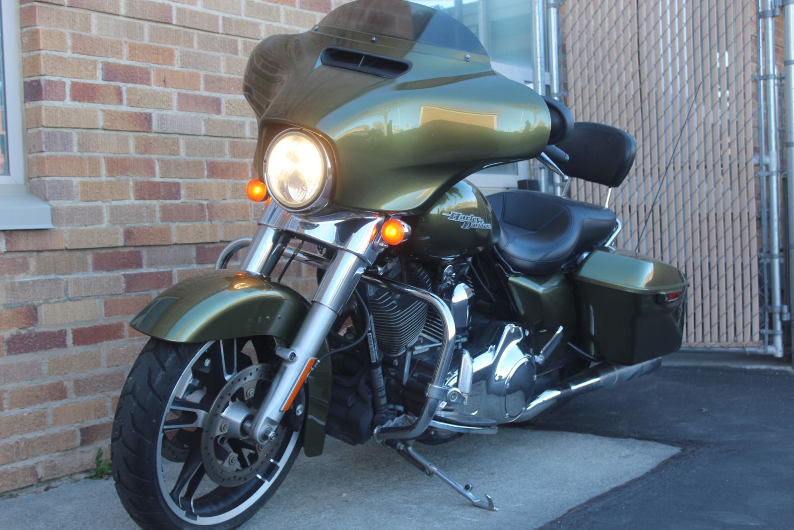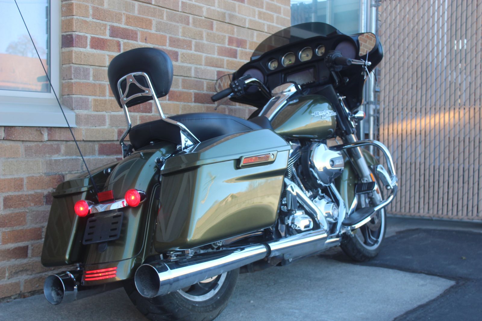 THIS STREET GLIDE QUALIFIES FOR A FREE ONE YEAR WARRANTY! 2016 Harley Davidson FLHX Street Glide in beautiful Olive Gold and has aftermarket CFR exhaust with a nice sound. Starts right up and runs great. It also has the added passenger back rest. It has an aftermarket Sony head unit that is sun faded.