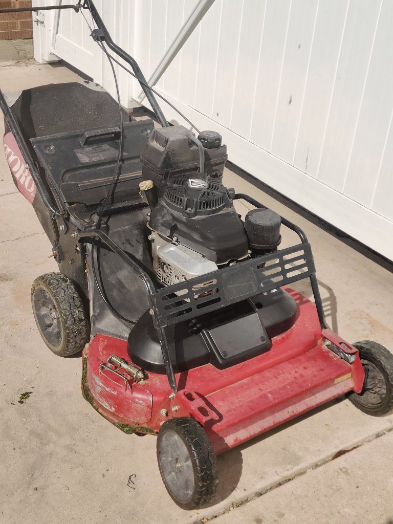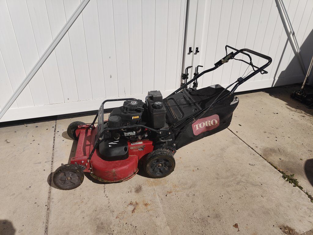 Works great, good shape overall, freshly serviced. Bag has some wear on the corners but still works. I've used this for my house and a couple neighbors so it's pretty lightly used in terms of a commercial mower.