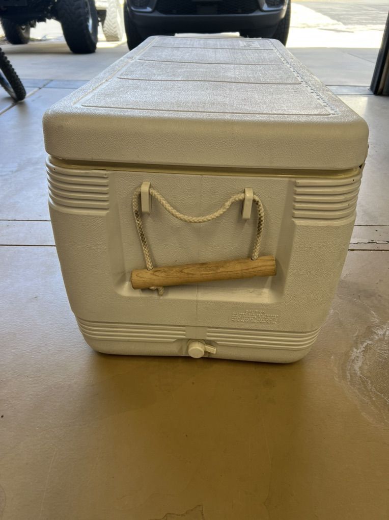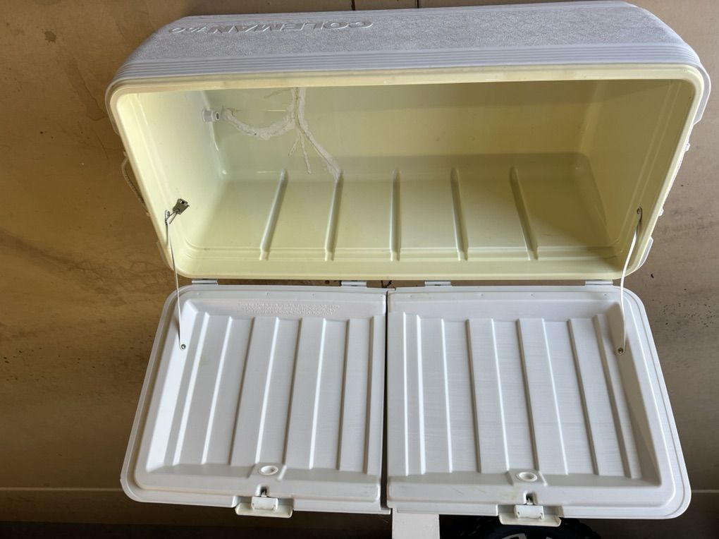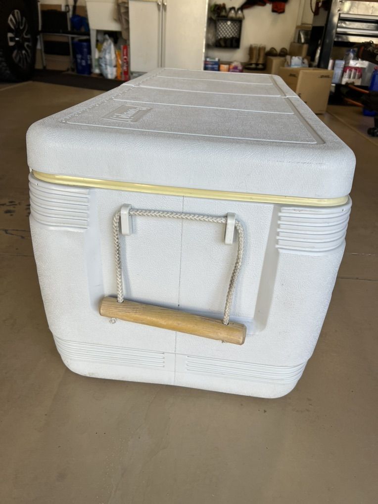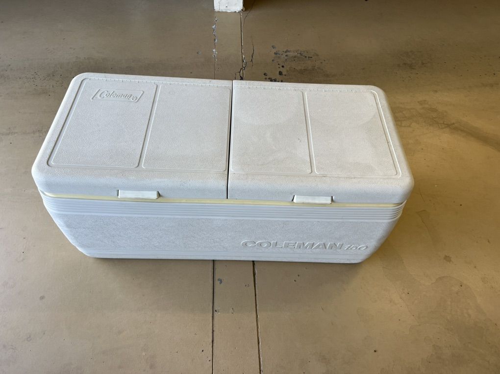 White used Coleman 150 cooler.